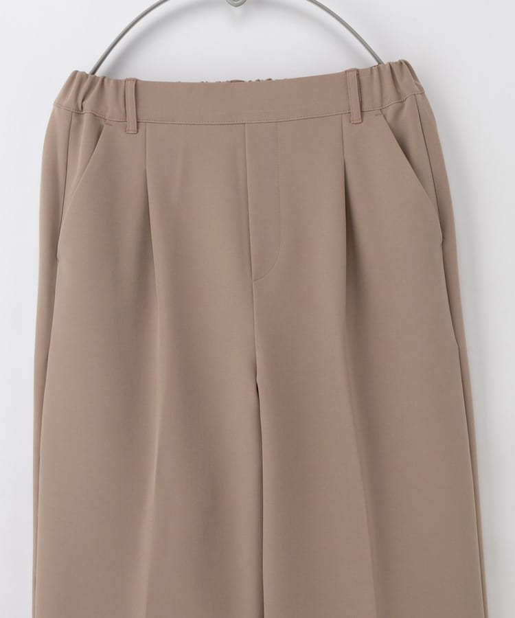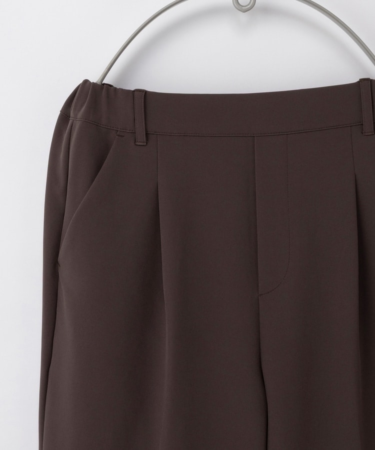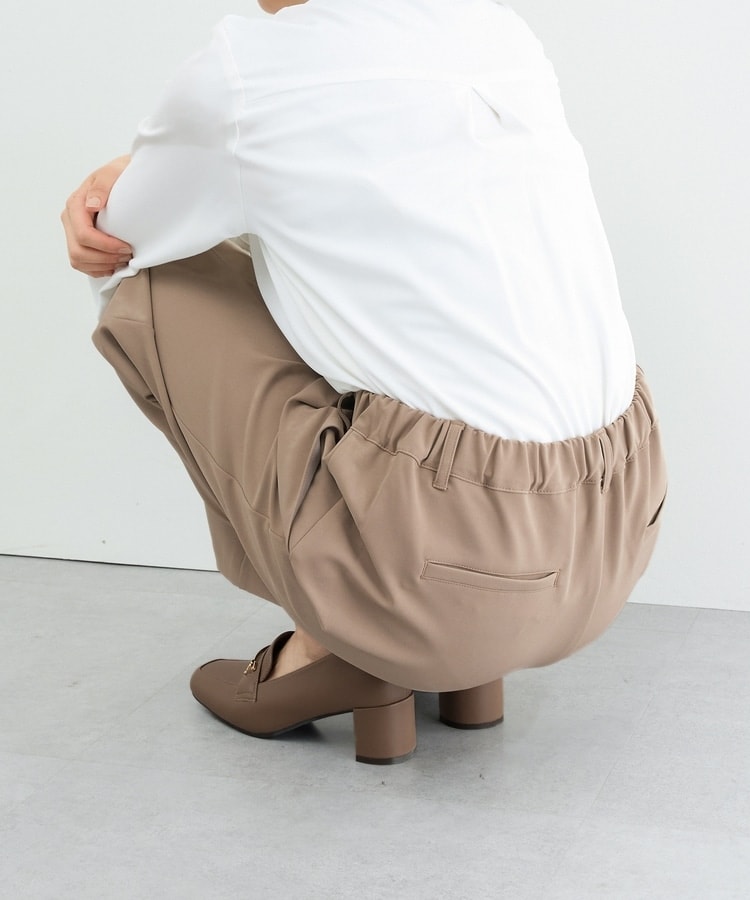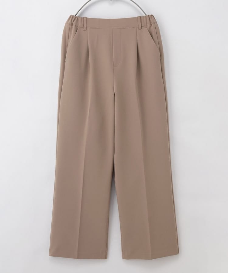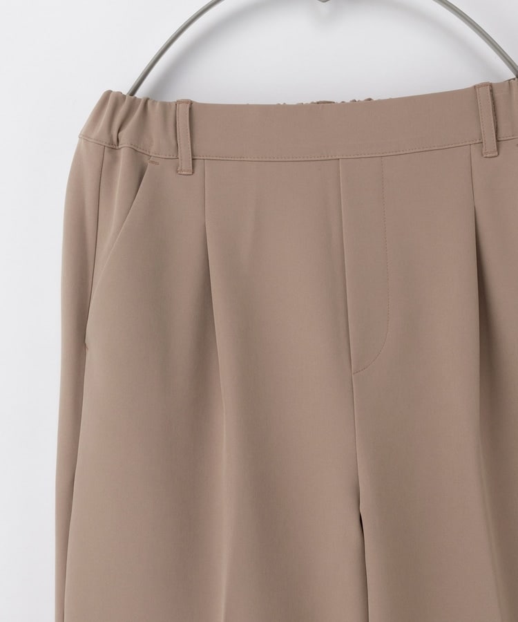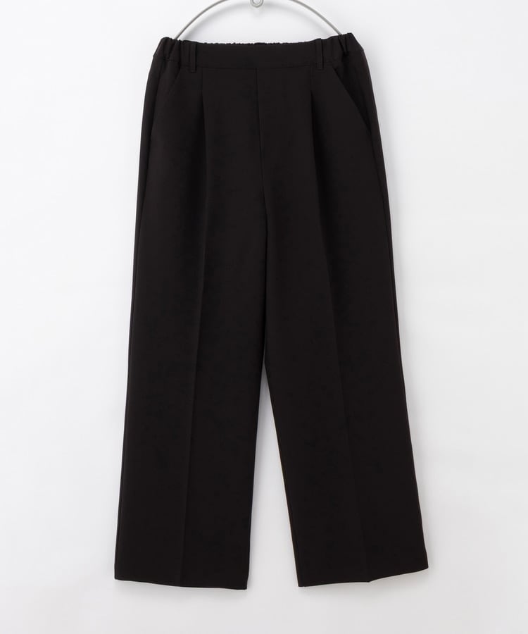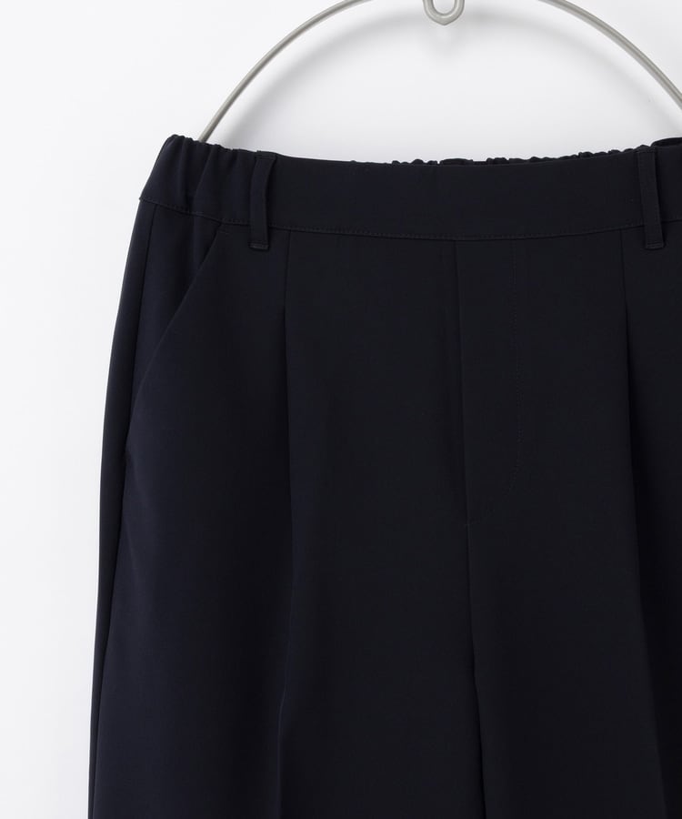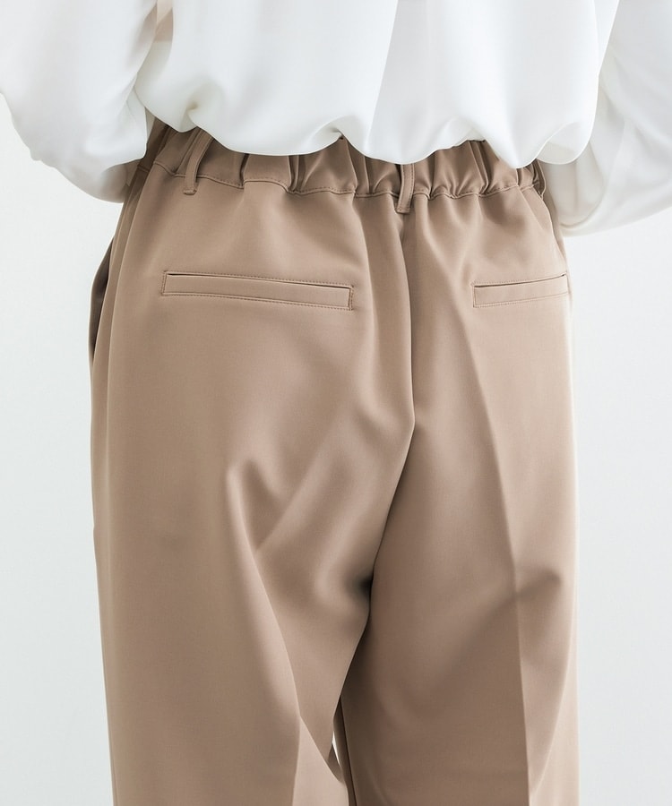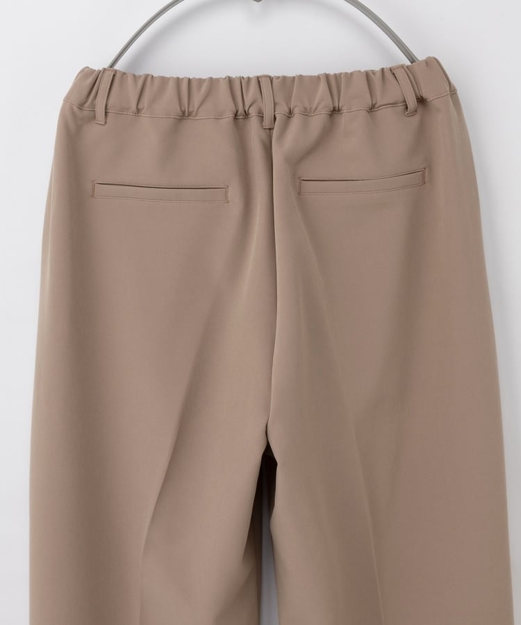 環境に優しい再生ポリエステルを使用した、『ストレッチ』の利いた落ち感素材とウエストゴムでストレスフリーなはき心地。