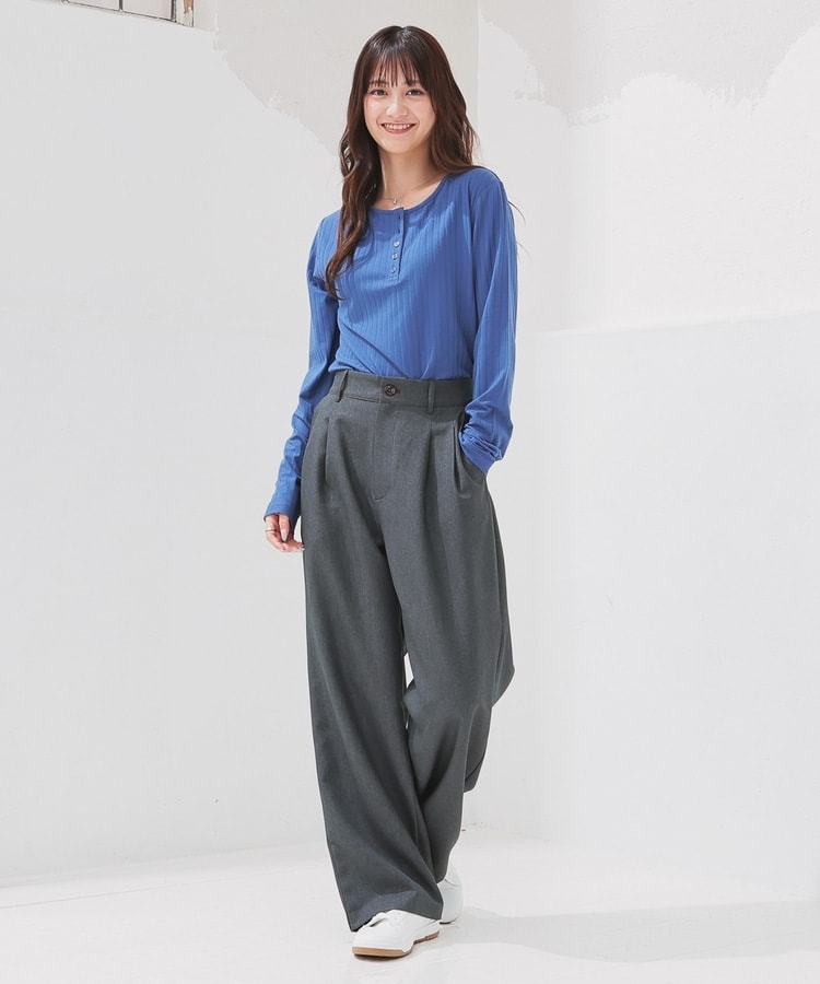 ハイウエスト&すっきりストレートなシルエットで、脚長効果抜群。