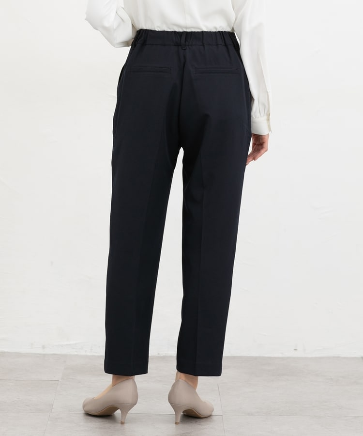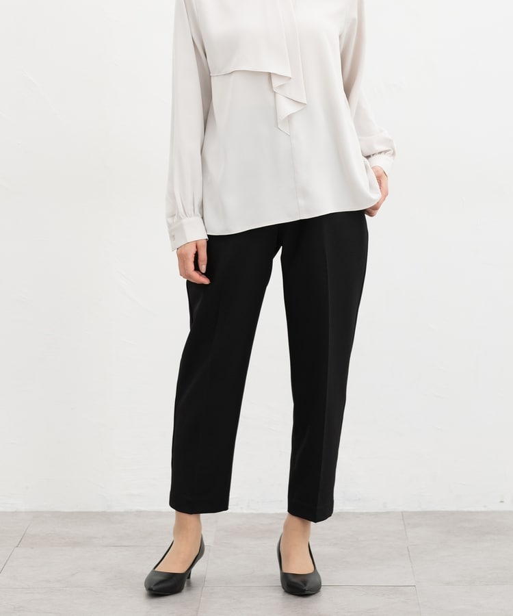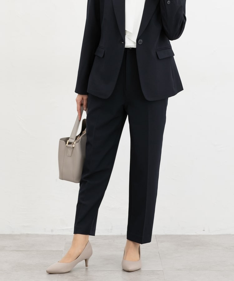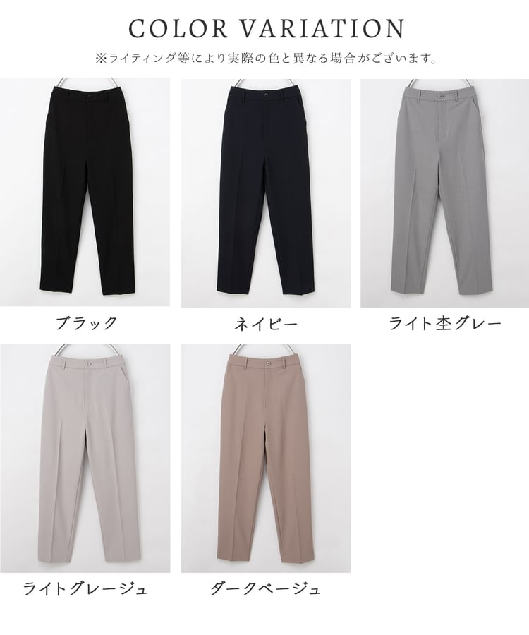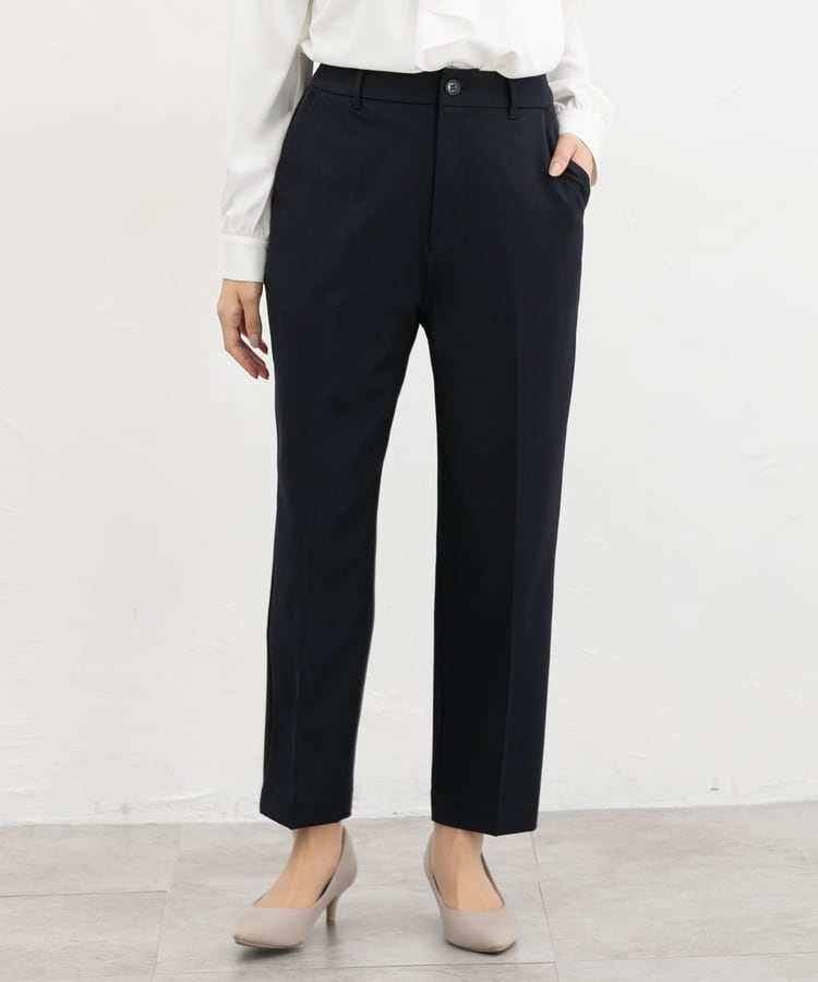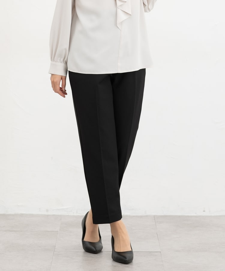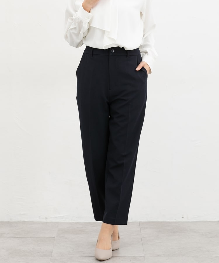 きちんと感のあるセンタープレス入りで、美脚効果も抜群のテーパードパンツ、股下60cmタイプ。