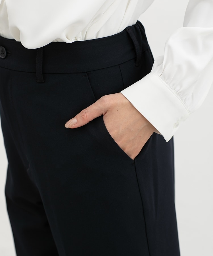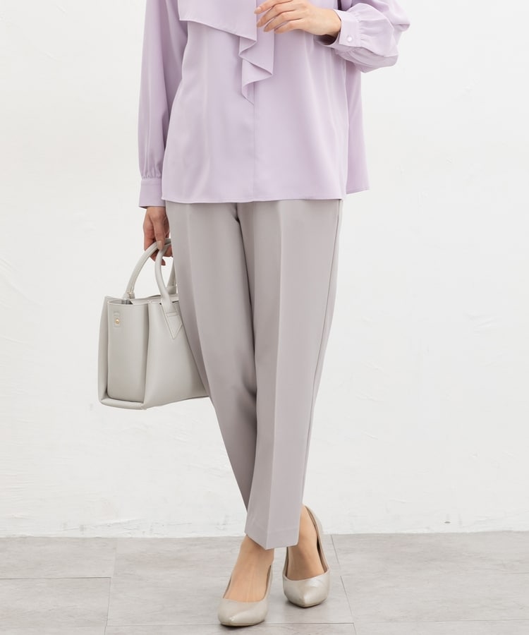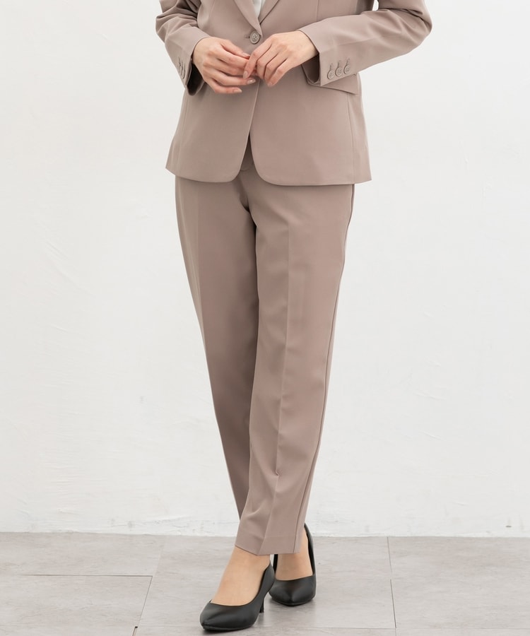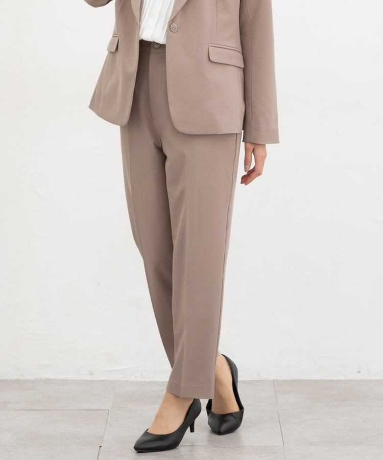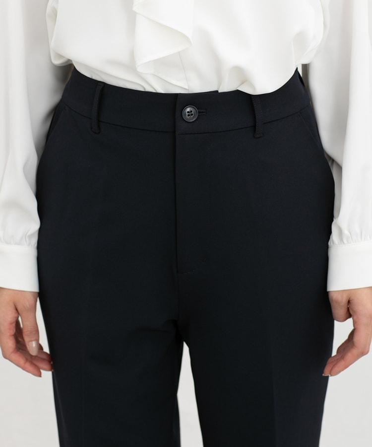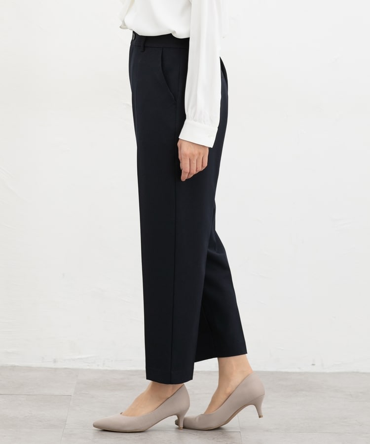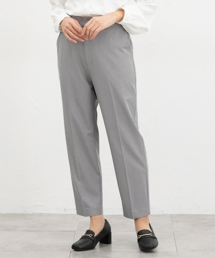 きちんと感のあるセンタープレス入りで、美脚効果も抜群のテーパードパンツ、股下60cmタイプ。