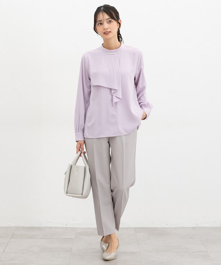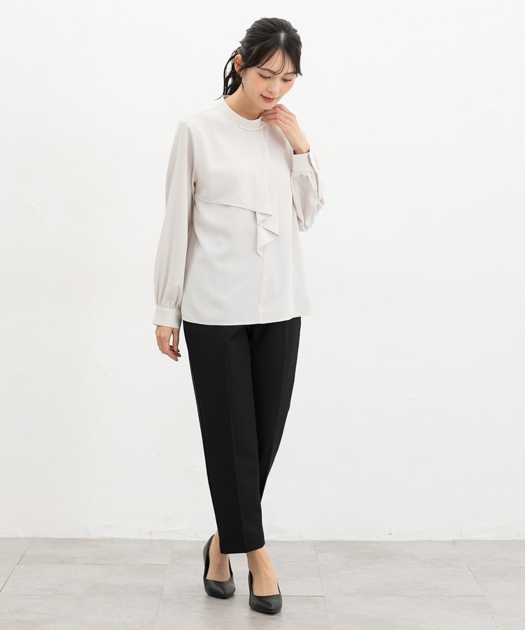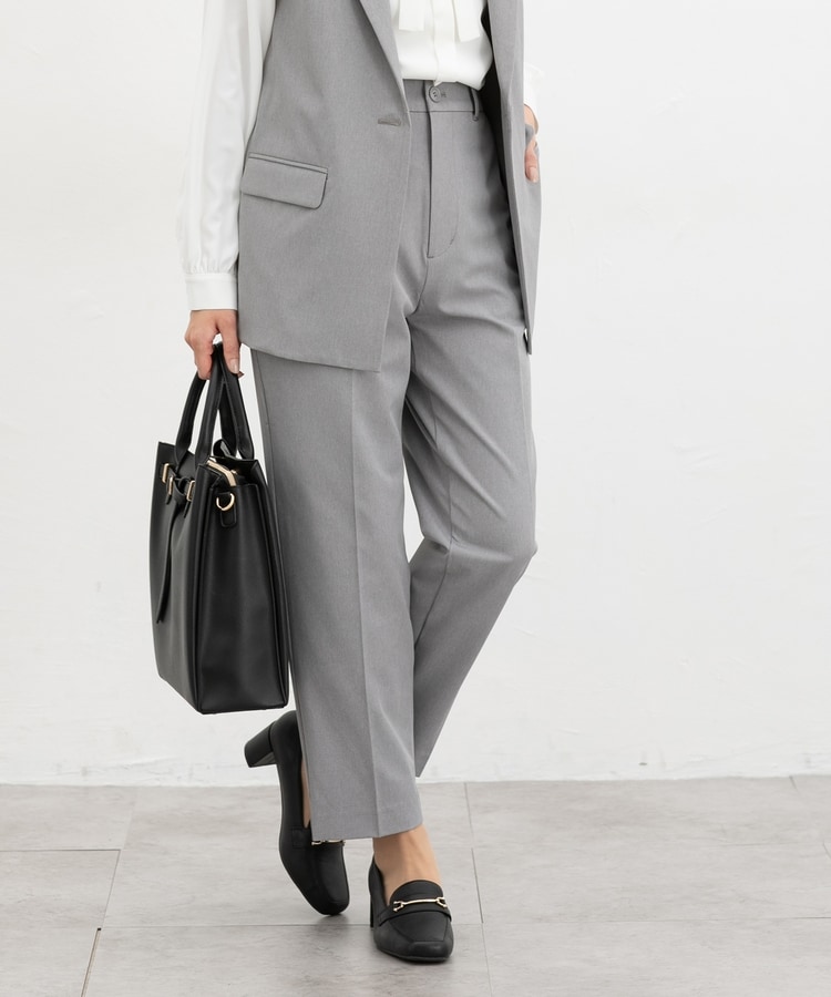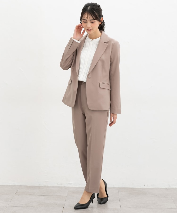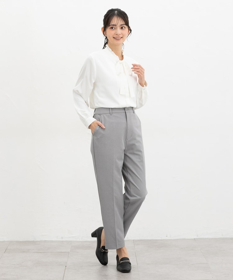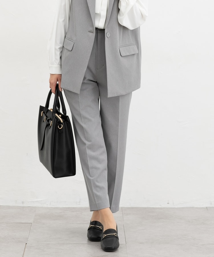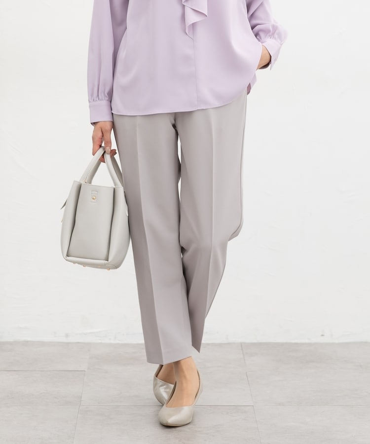きちんと感のあるセンタープレス入りで、美脚効果も抜群のテーパードパンツ、股下60cmタイプ。