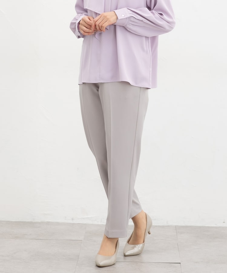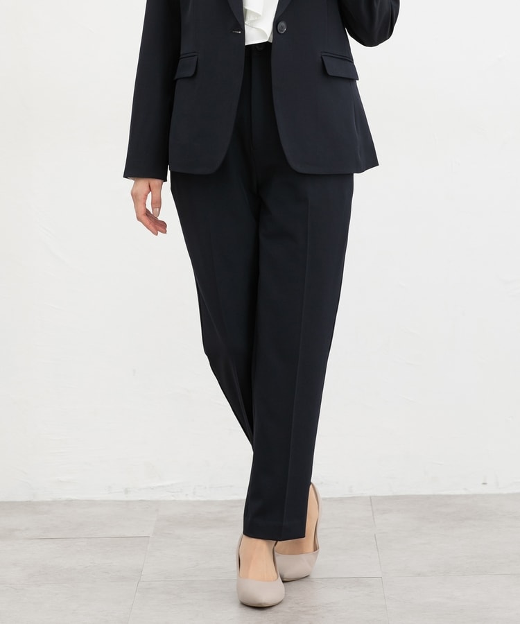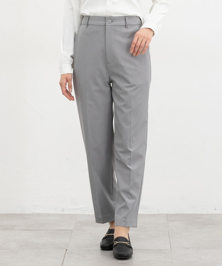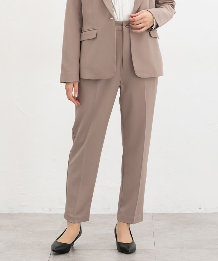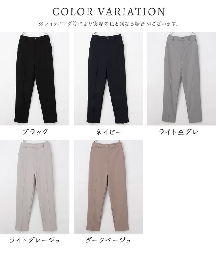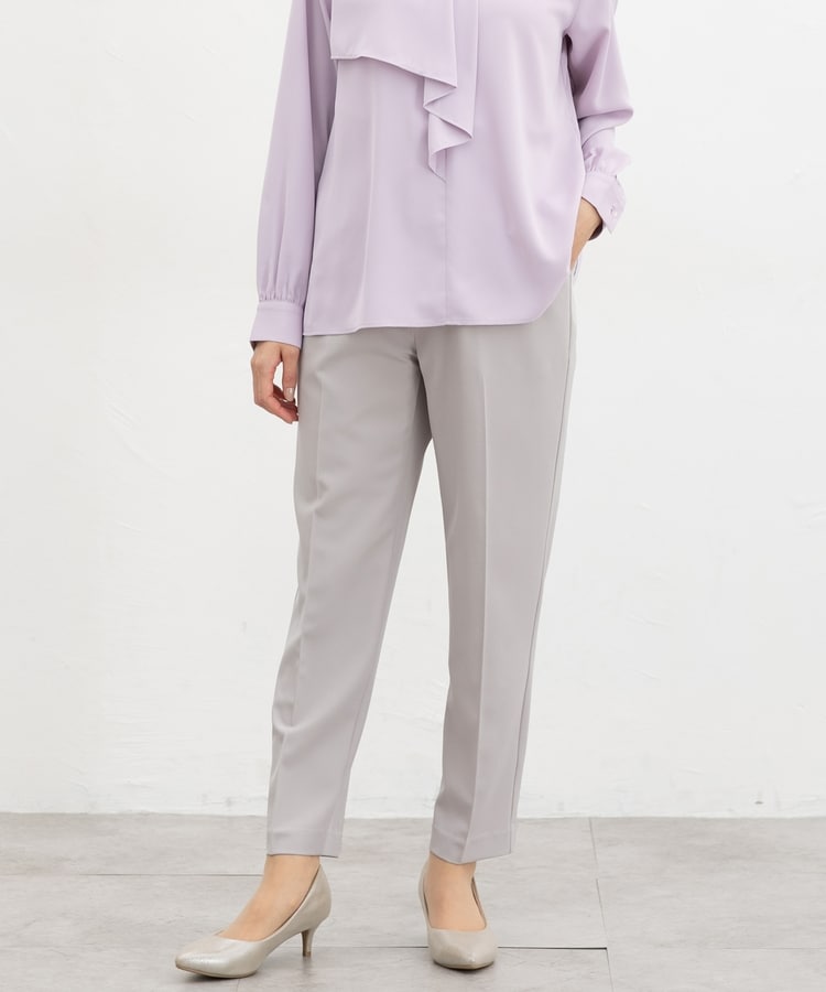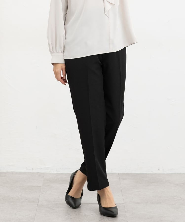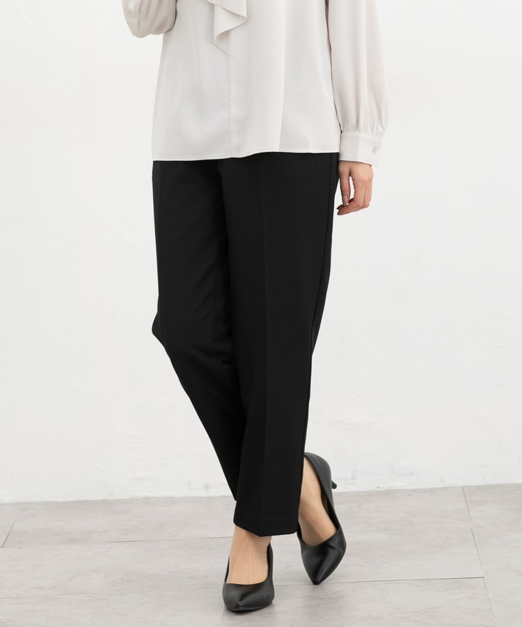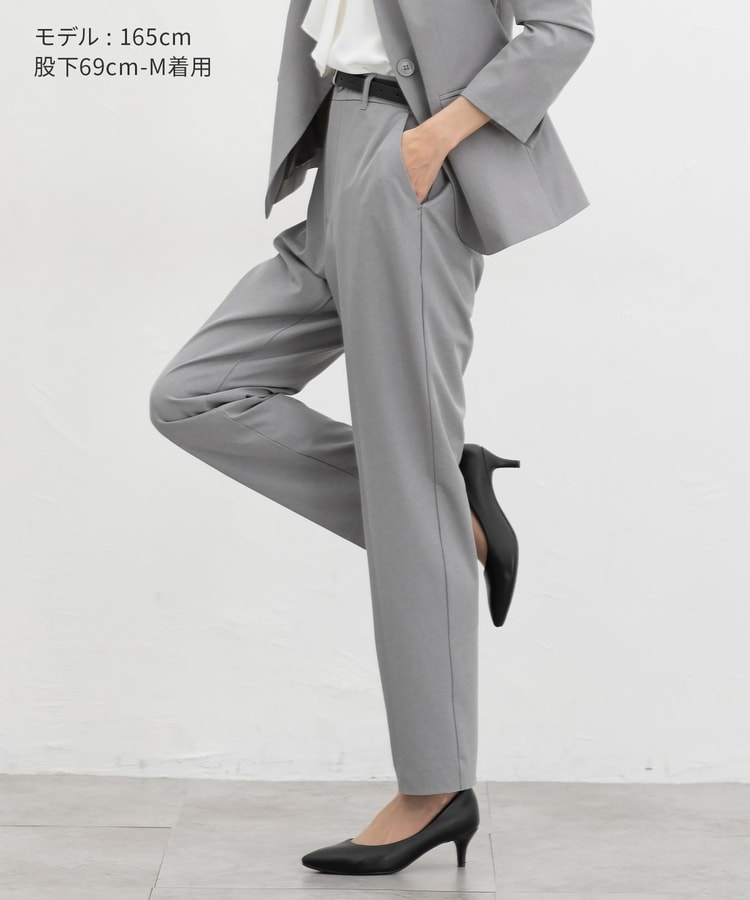 きちんと感のあるセンタープレス入りで、美脚効果も抜群のテーパードパンツ、股下63cmタイプ。