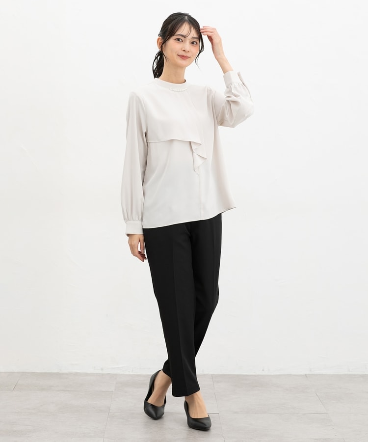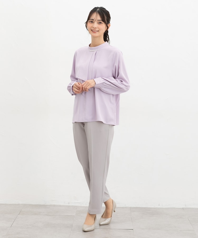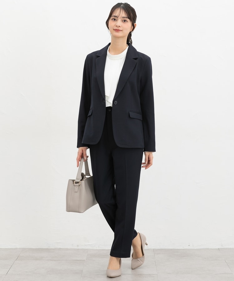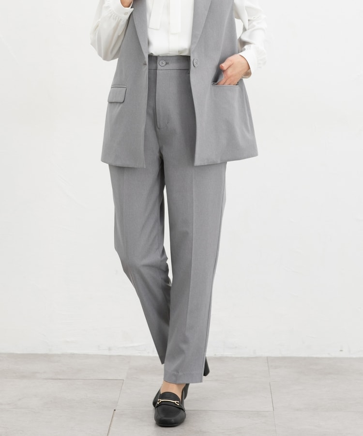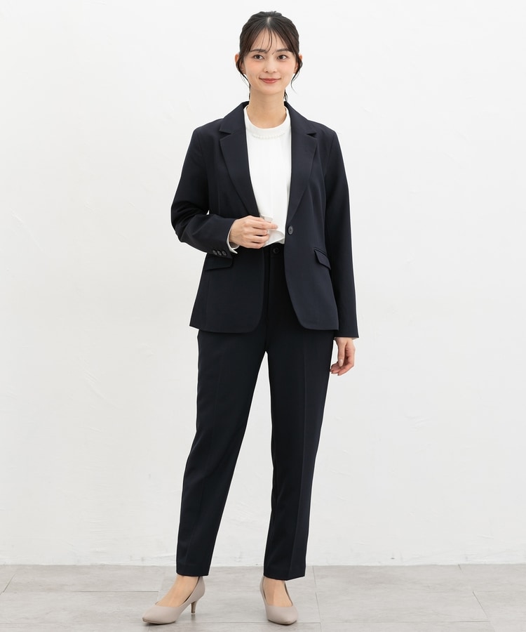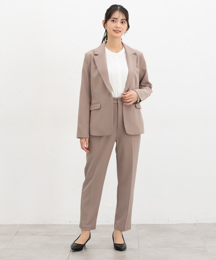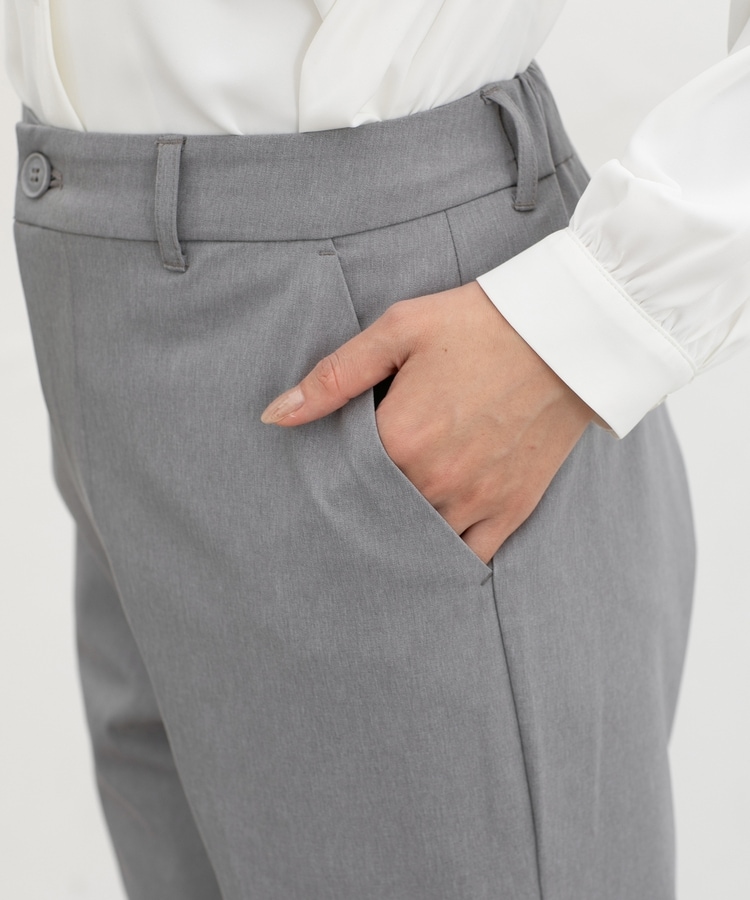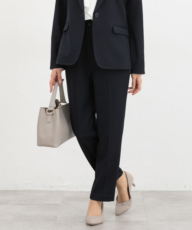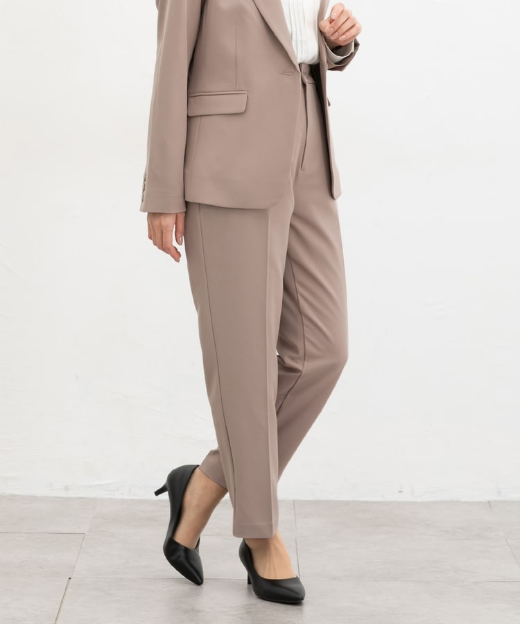 きちんと感のあるセンタープレス入りで、美脚効果も抜群のテーパードパンツ、股下63cmタイプ。
