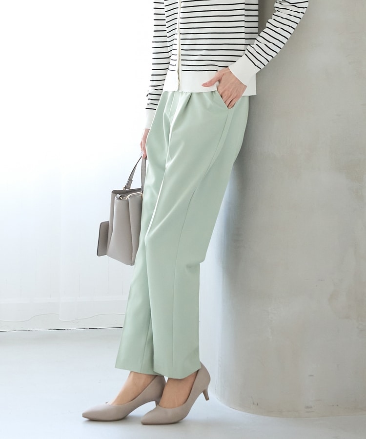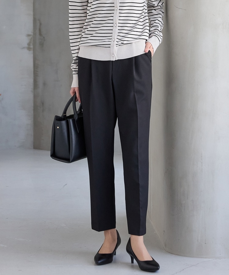 きちんと感のあるセンタープレスと、腰回りのラインにこだわった、裾に向かって細くなる美しいシルエットで美脚効果も抜群。