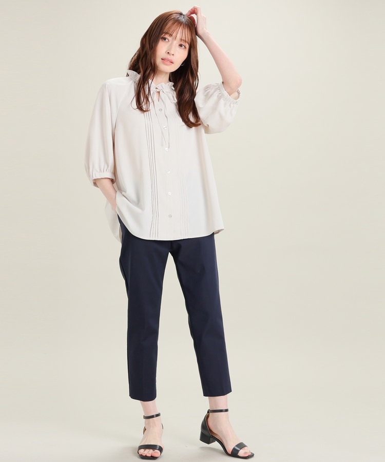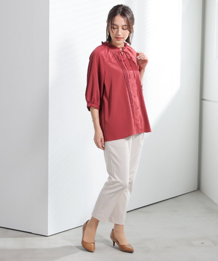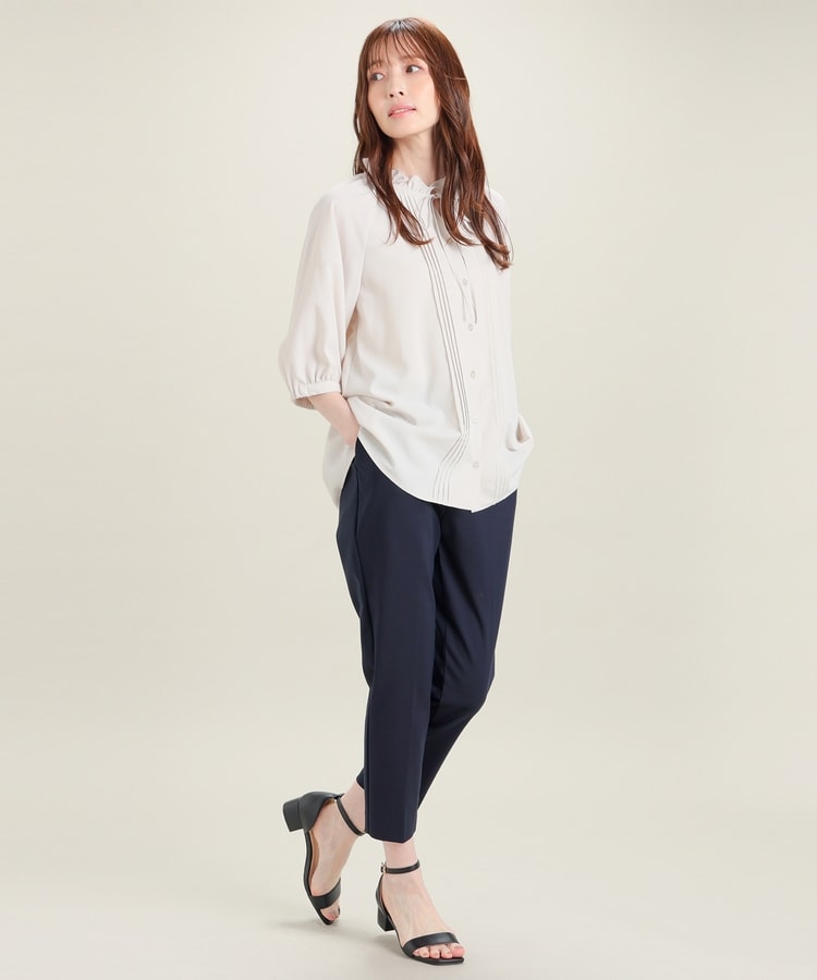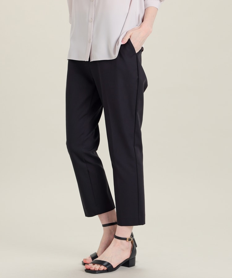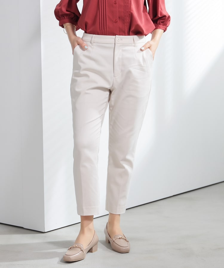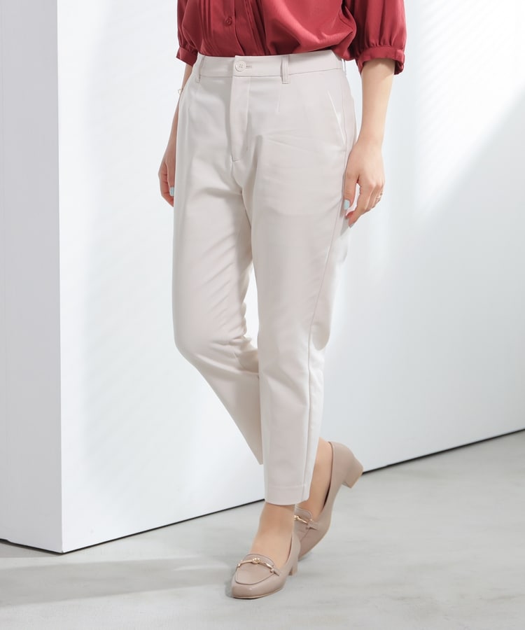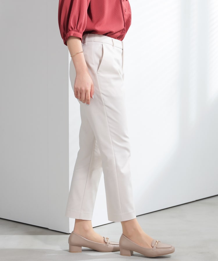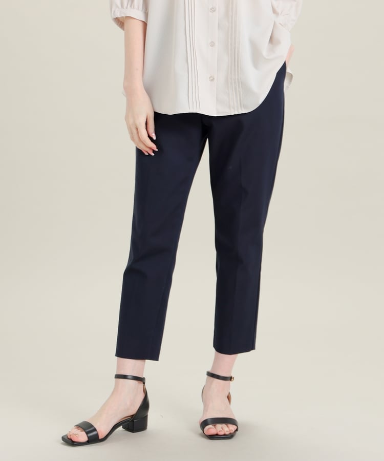 センタープレス入りのきれいなシルエットで、きちんと感もスタイルアップも叶えるデザイン。