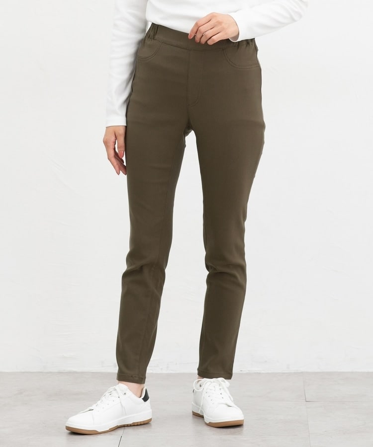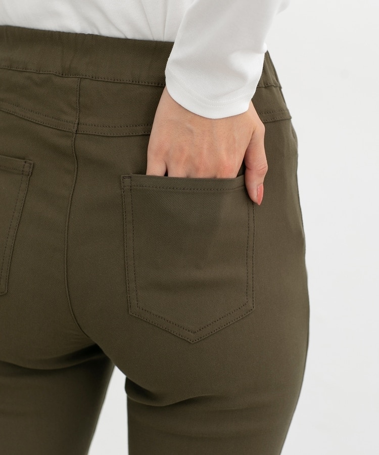優れたストレッチ性のレーヨン混ツイル素材とウエストゴムで、一度はいたらやみつきになるはき心地。