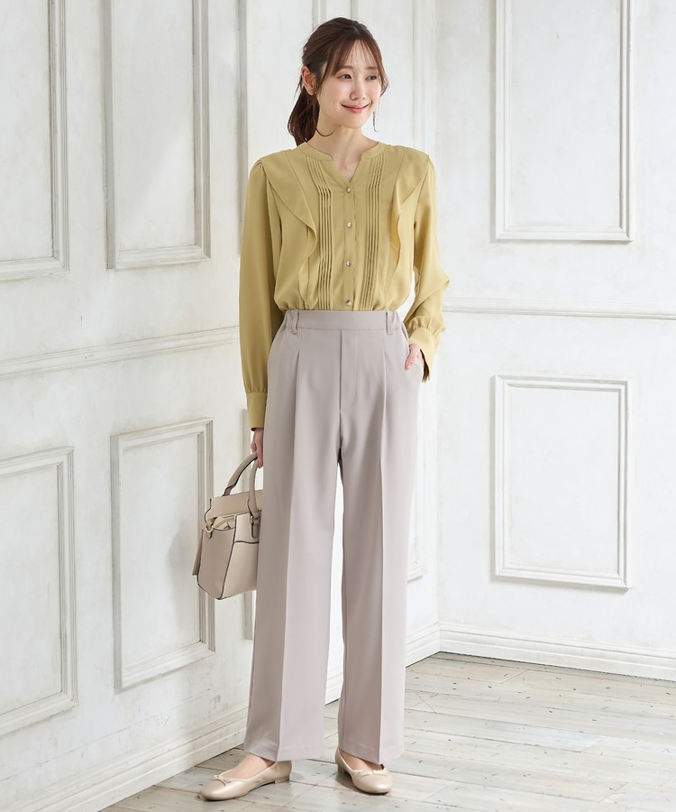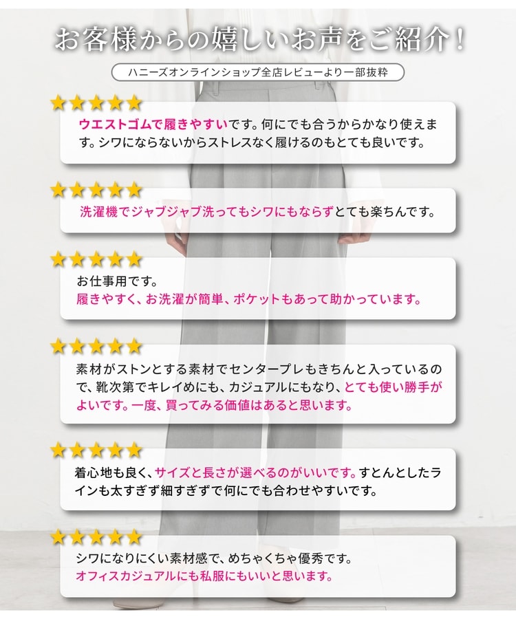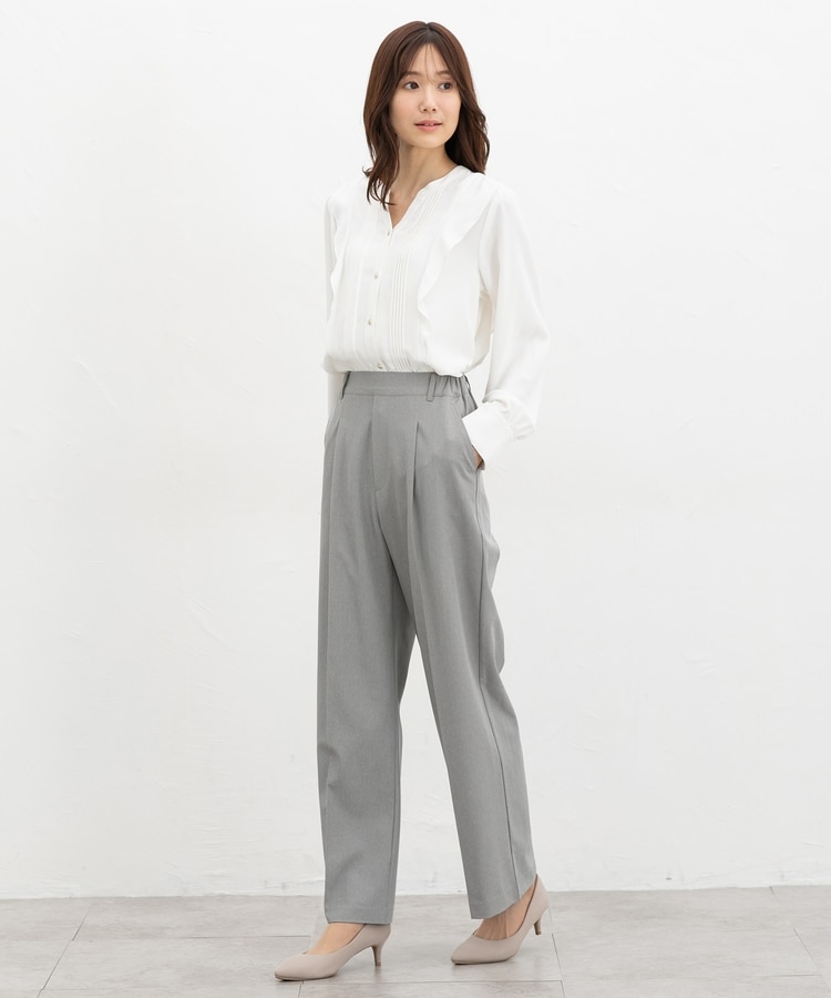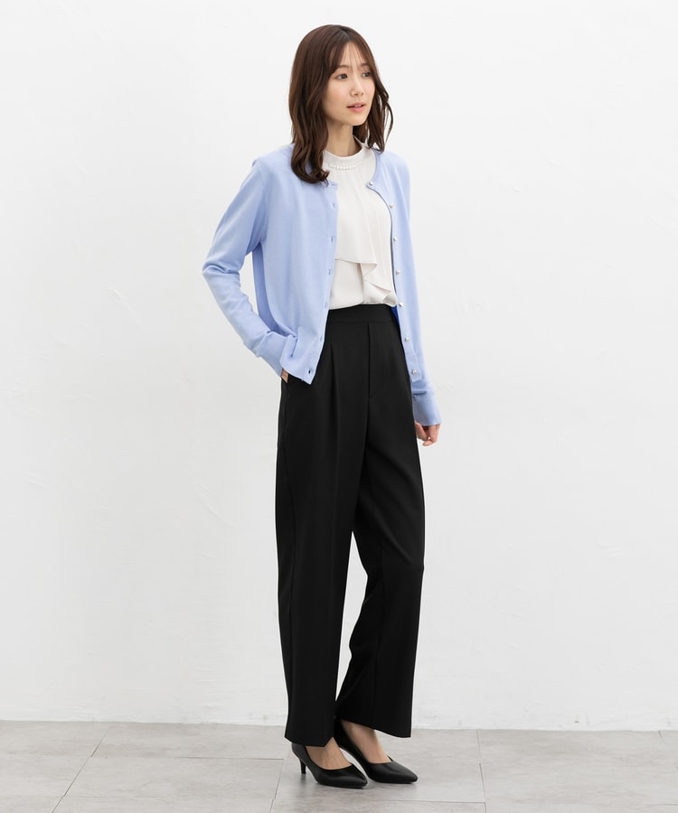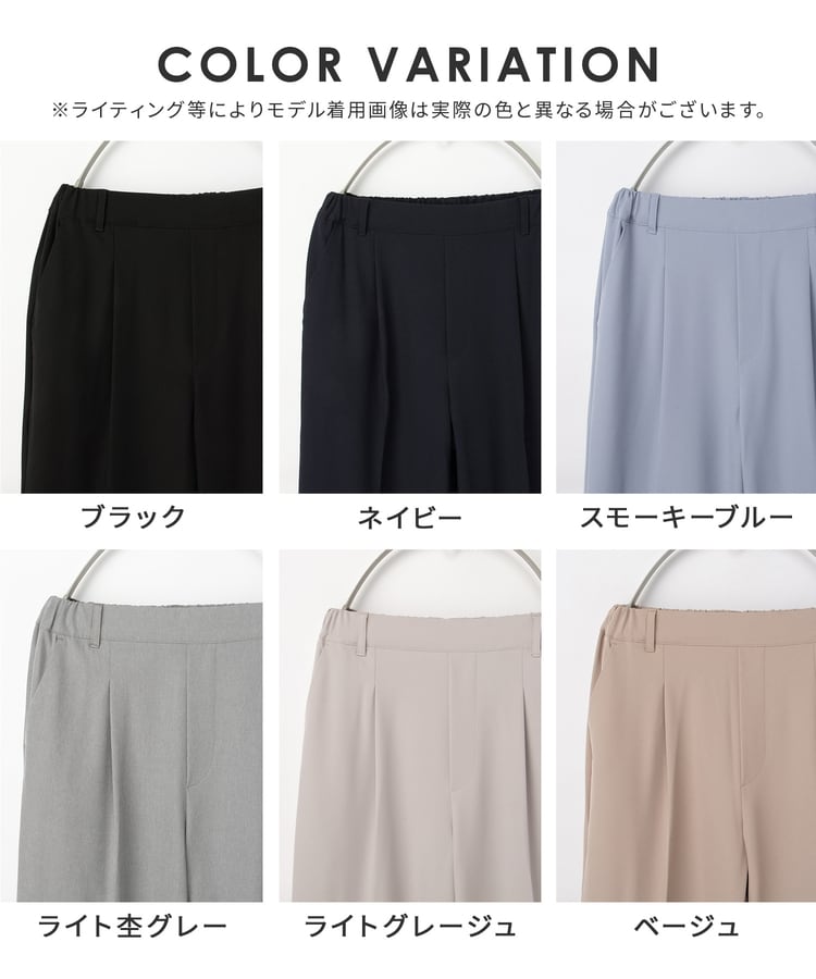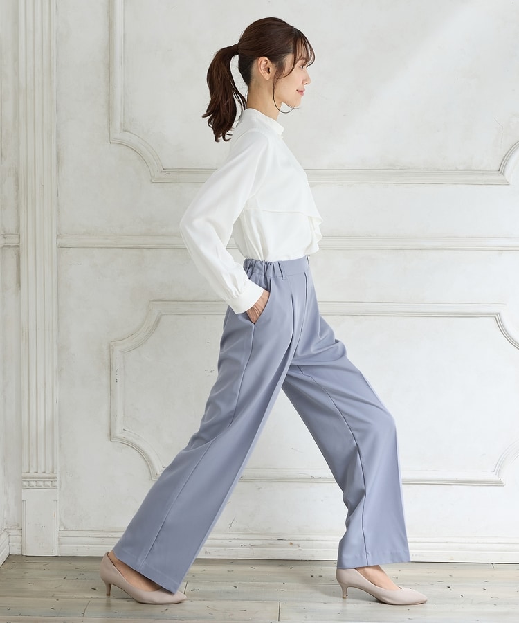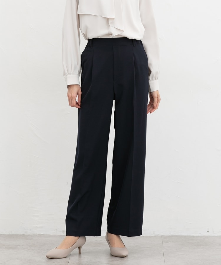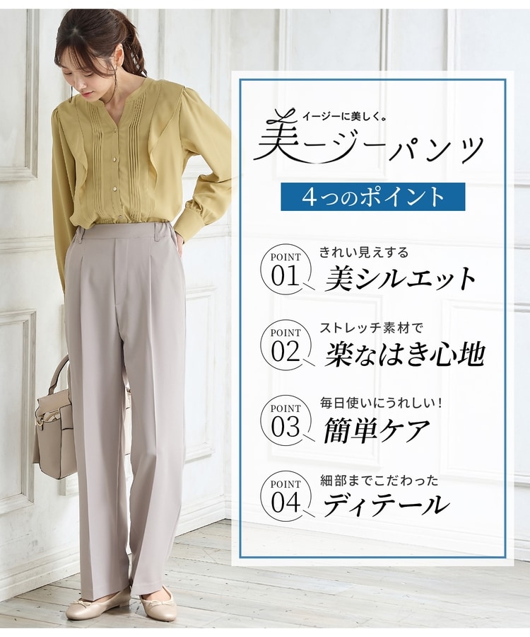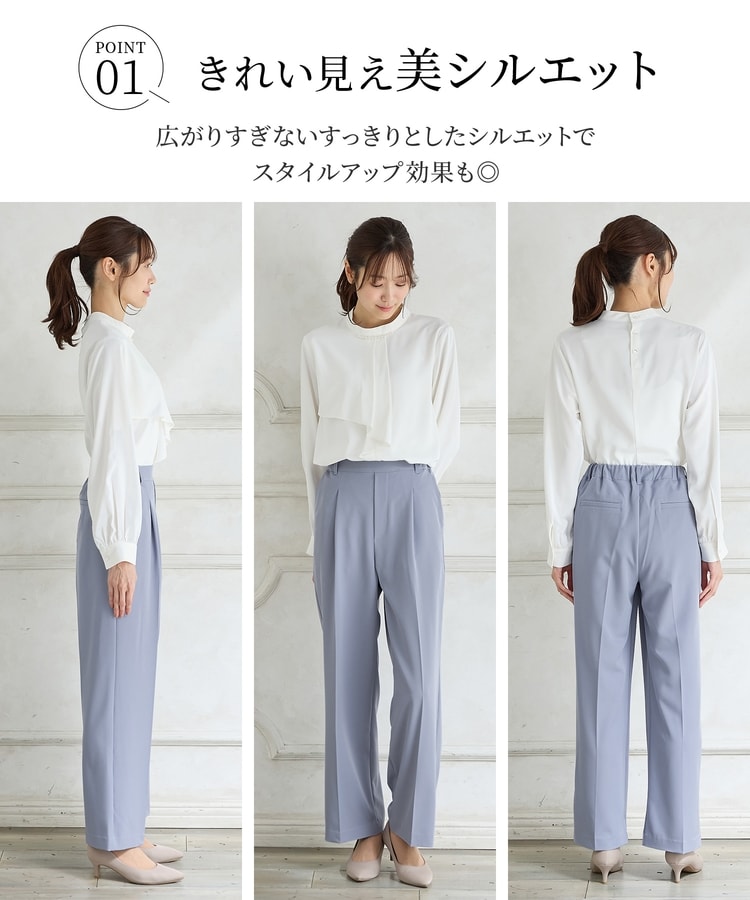 きちんと感のあるセンタープレスと腰回りのラインにこだわった美しいストレートシルエットで美脚効果も抜群。