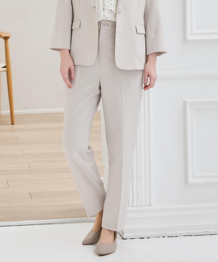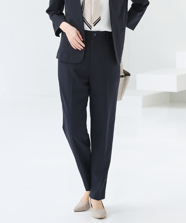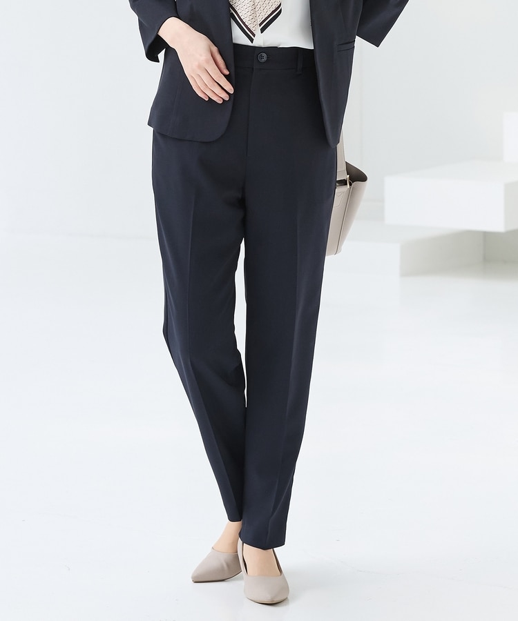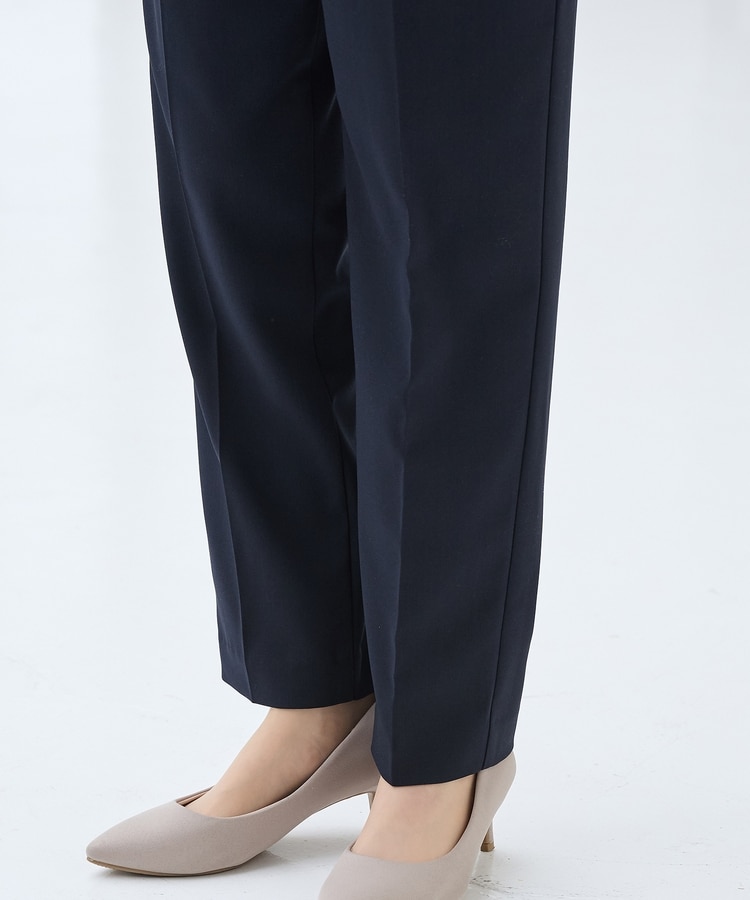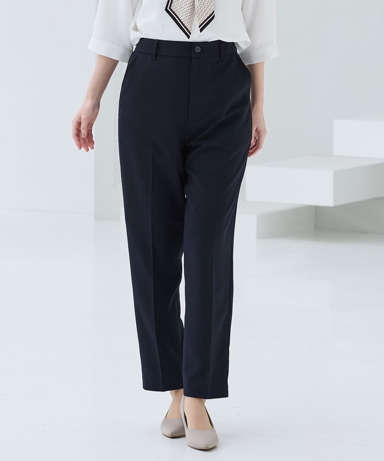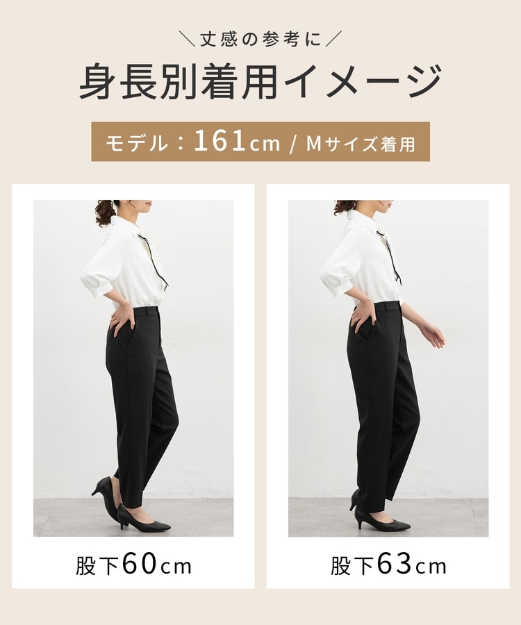 きちんと感のあるセンタープレスと、腰回りのラインにこだわった、裾に向かって細くなる美しいシルエットで美脚効果も抜群なテーパードデザイン、股下66cmタイプ。
