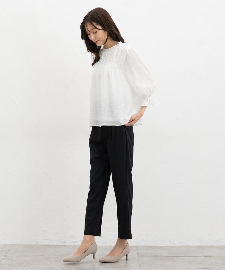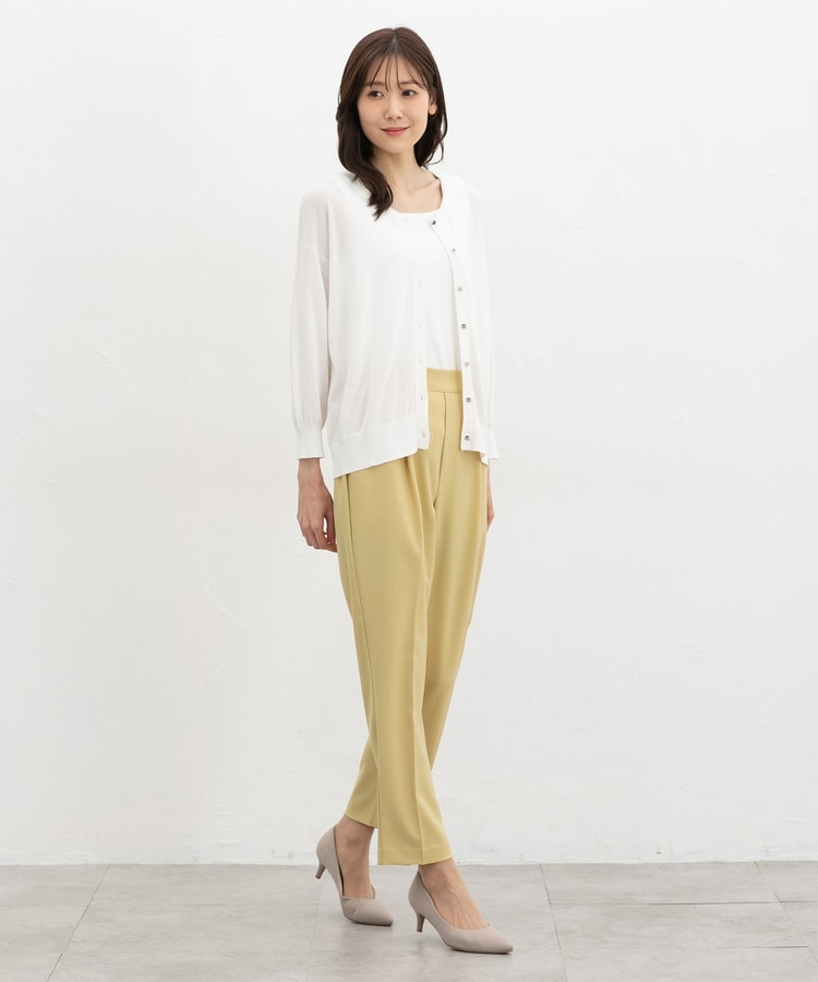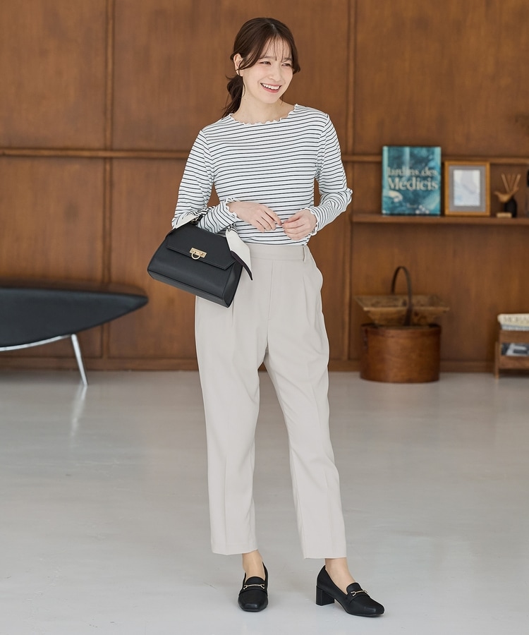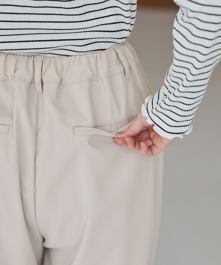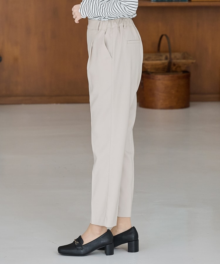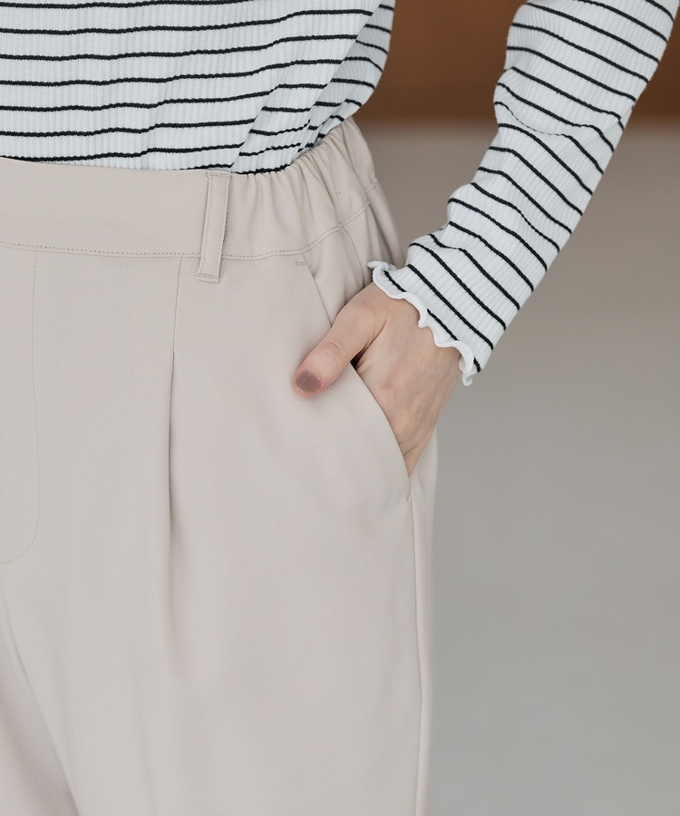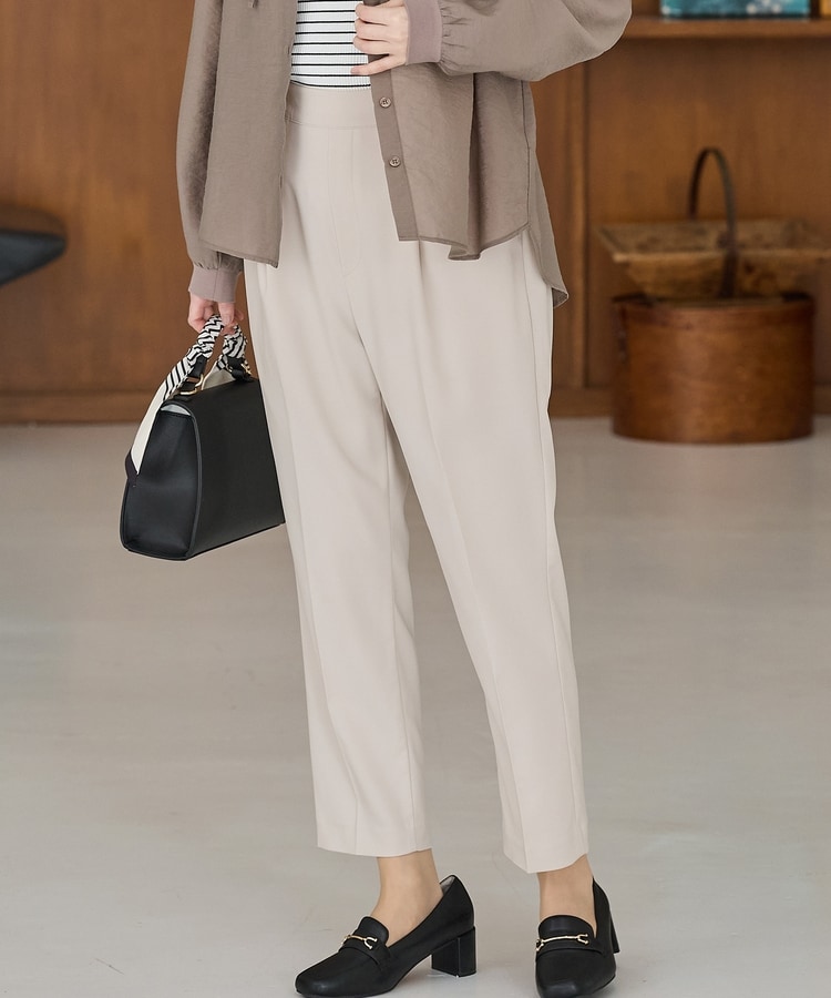 きちんと感のあるセンタープレスと、腰回りのラインにこだわった、裾に向かって細くなる美しいシルエットで美脚効果も抜群。