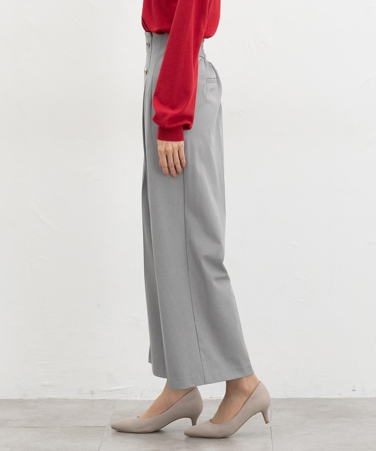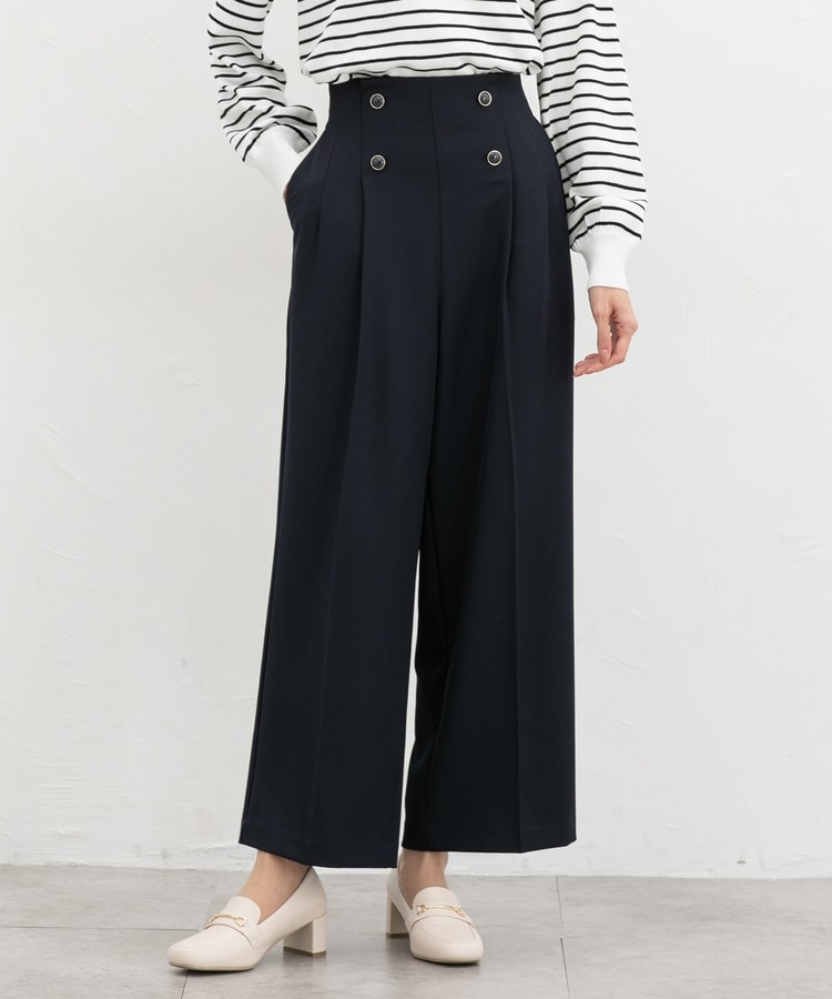 中心のみに設定した後ろゴムで腰回りの広がりを抑えてきれい見えを叶え、センタープレスとハイウエストで美脚効果も抜群。