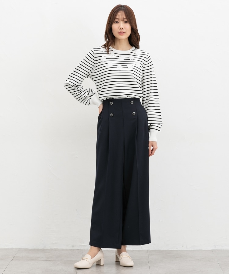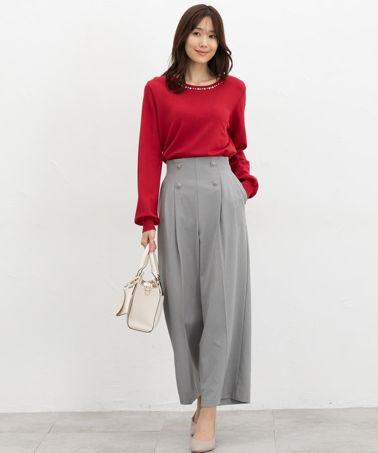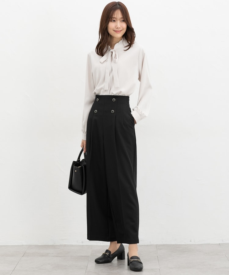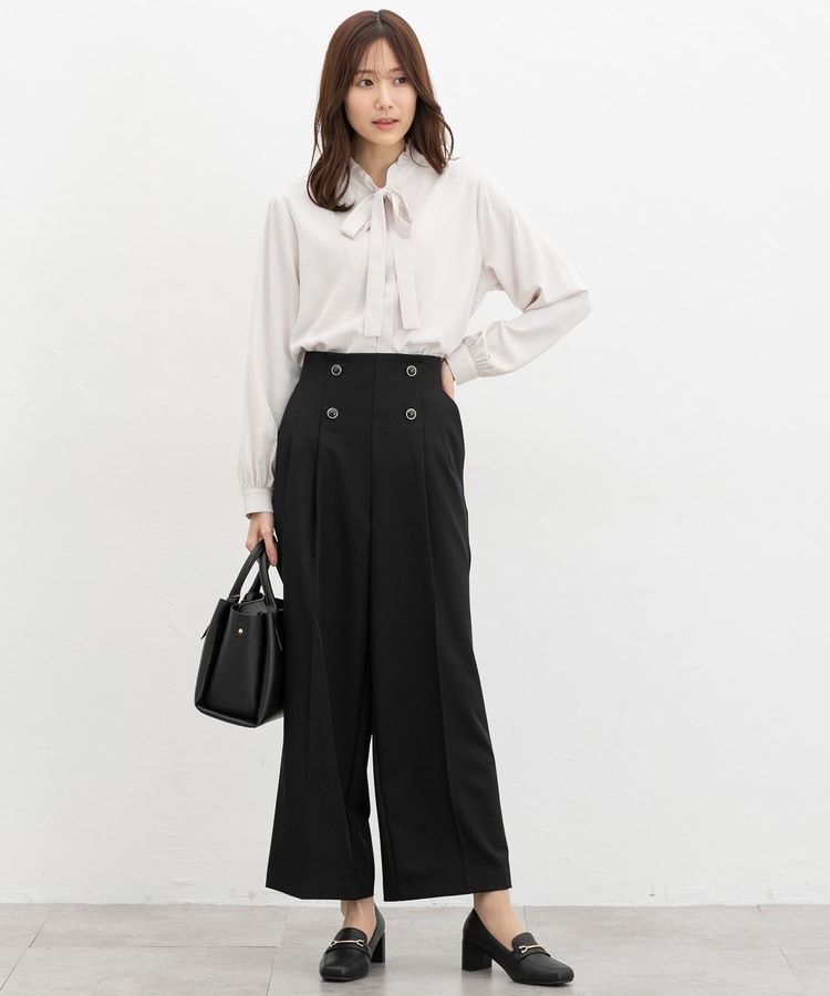 ボタンをアクセントにしたトップスインスタイルがおすすめ。