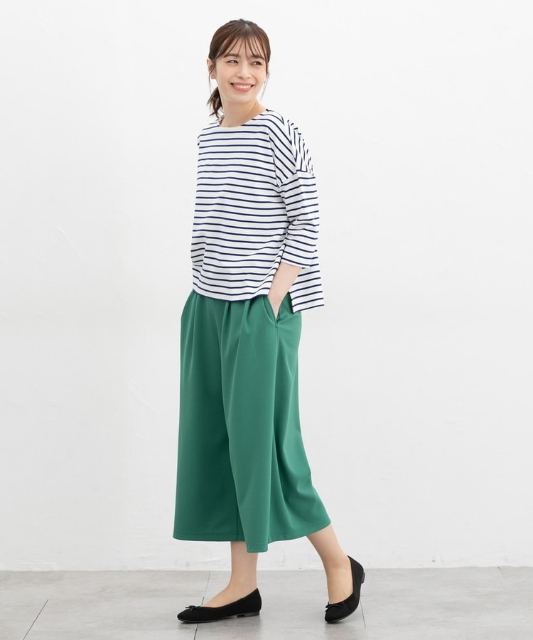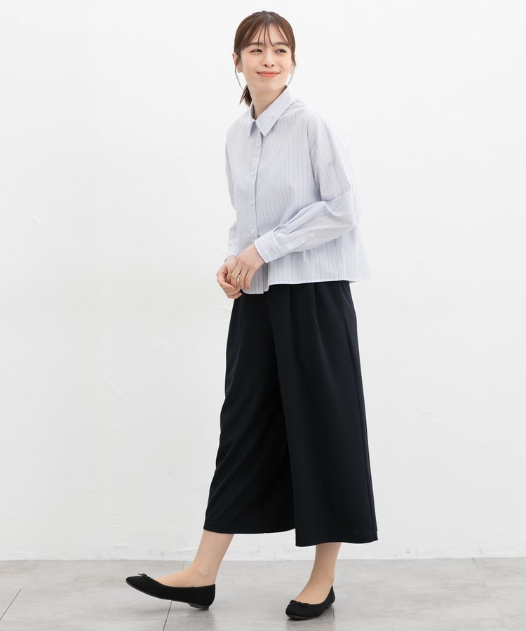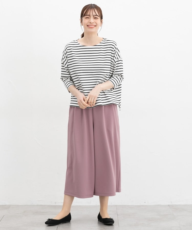 スカート見えするワイドシルエットが大人可愛いデザイン。