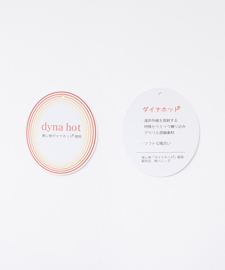 遠赤外線を放射する特殊セラミックを練りこんだ、あったか素材『ダイナホット』糸を使用。