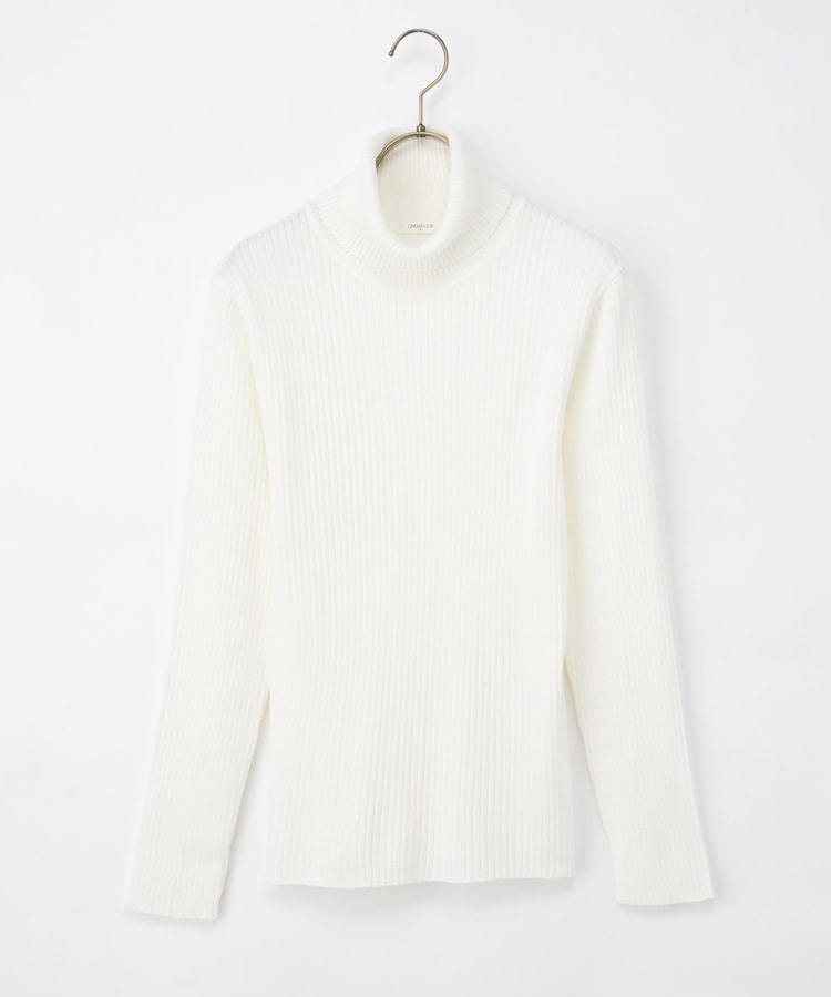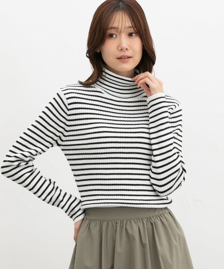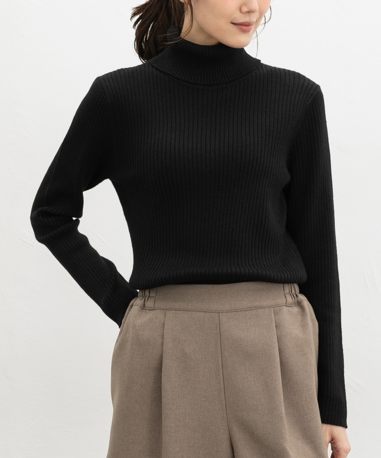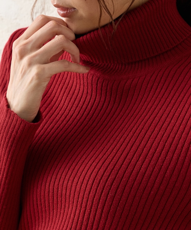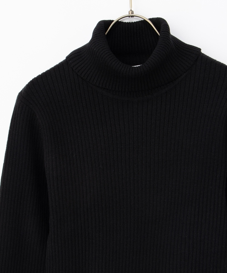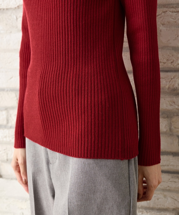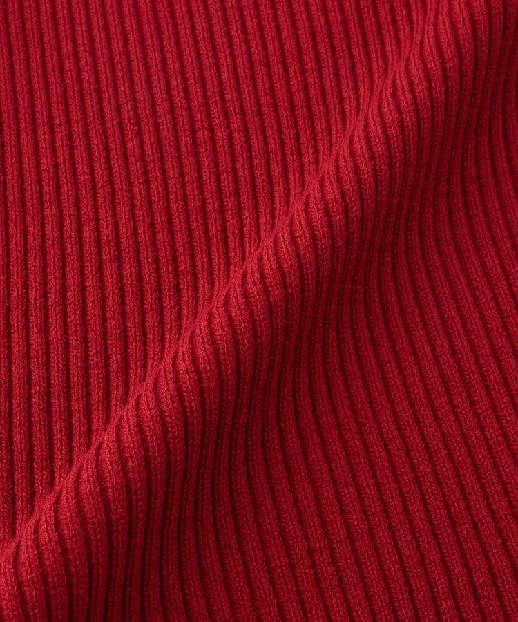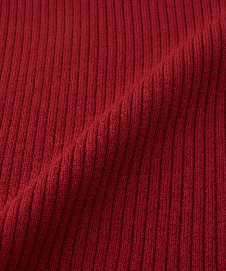 体にフィットするサイズ感とリブの縦目ですっきり見え。