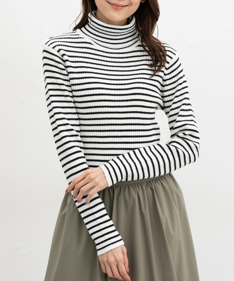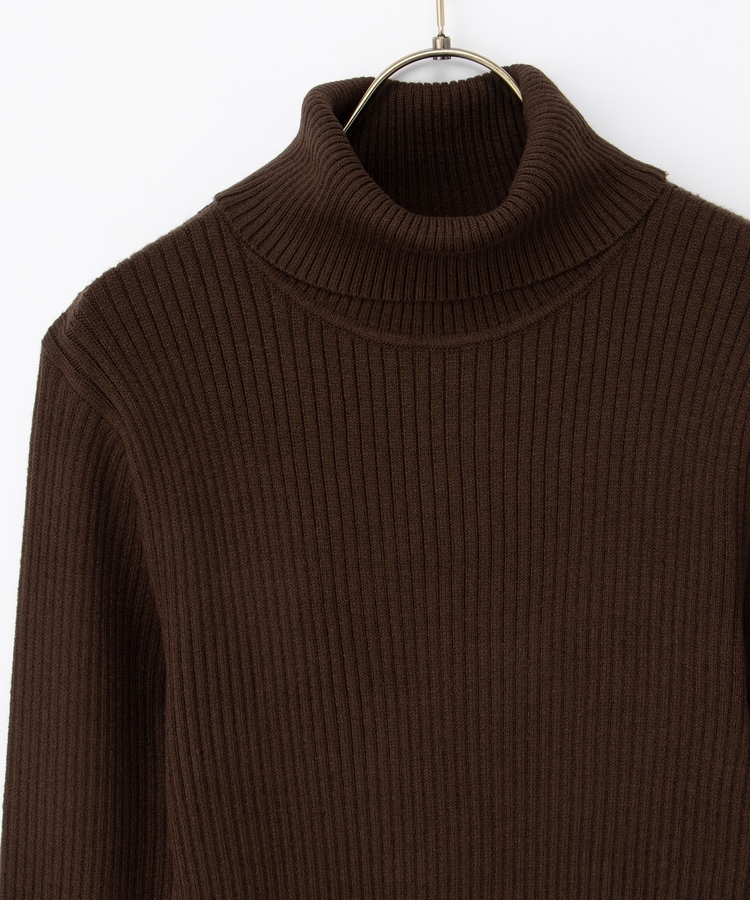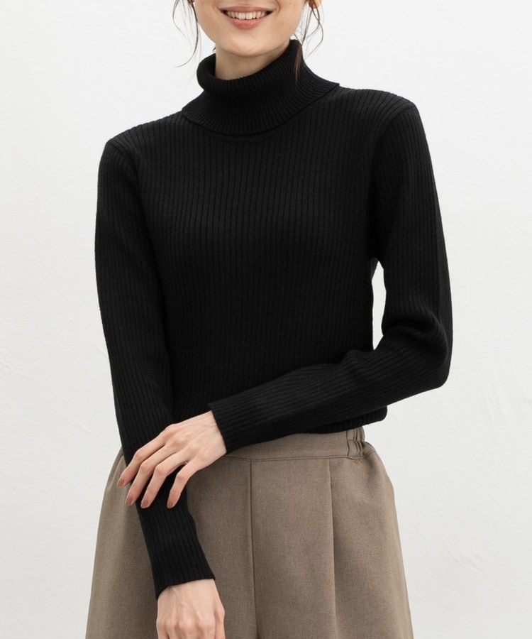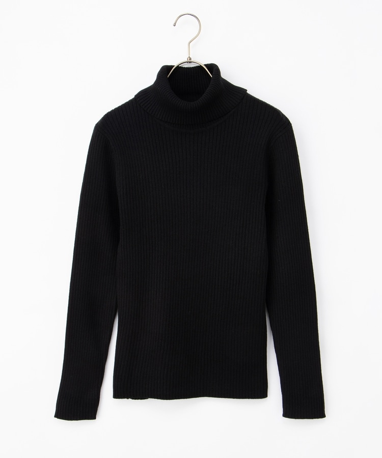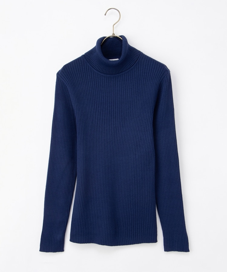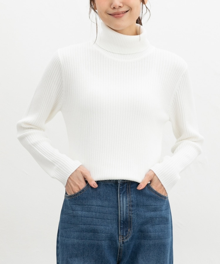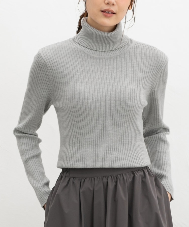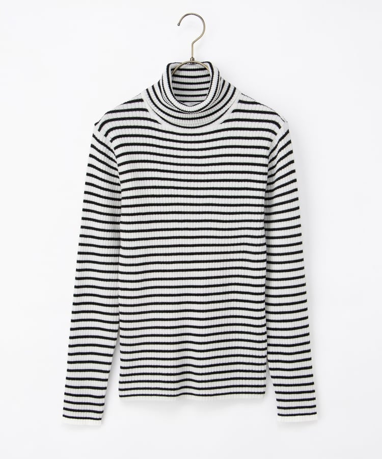 体にフィットするサイズ感とリブの縦目ですっきり見え。