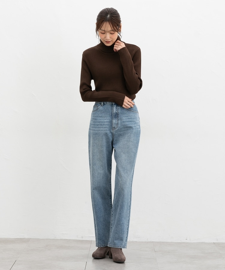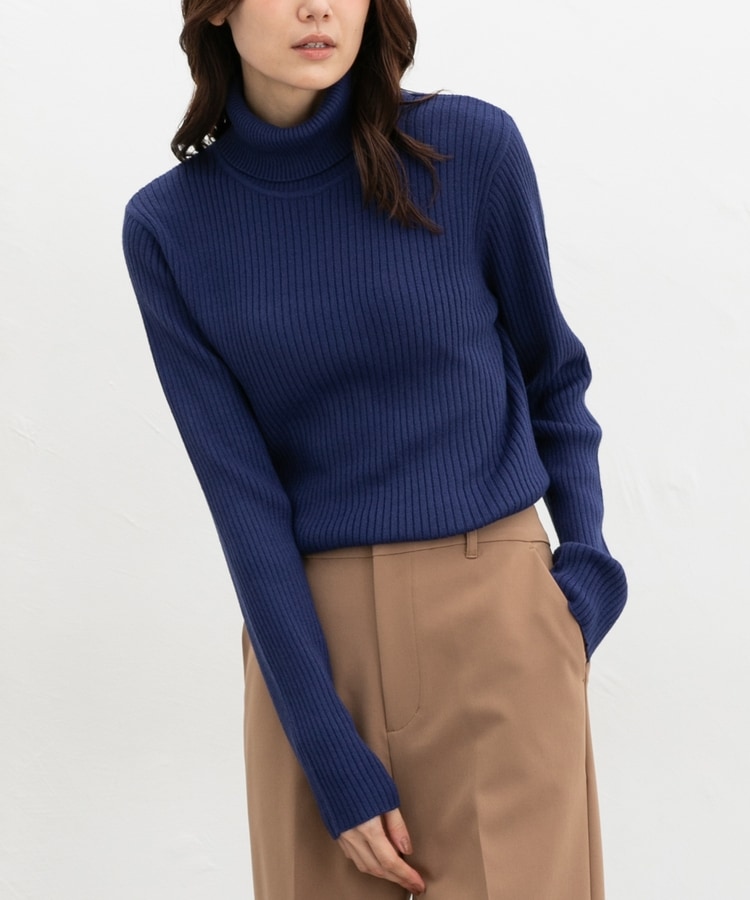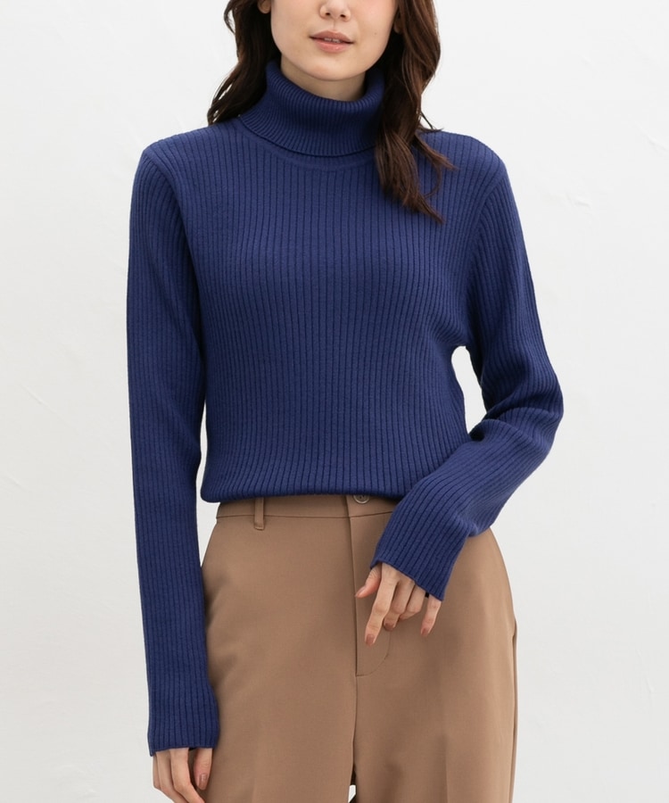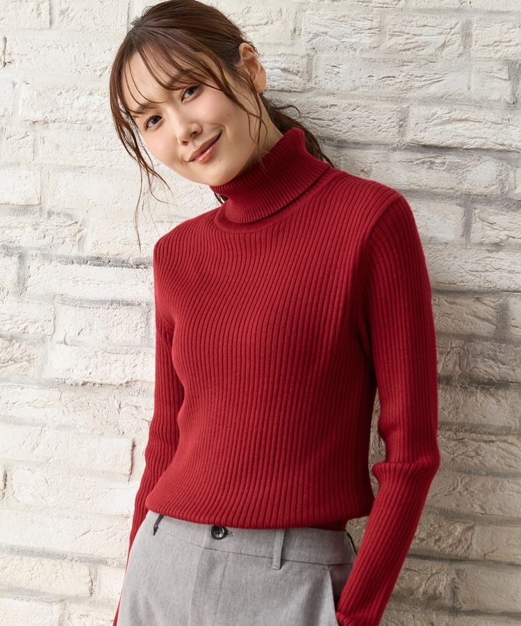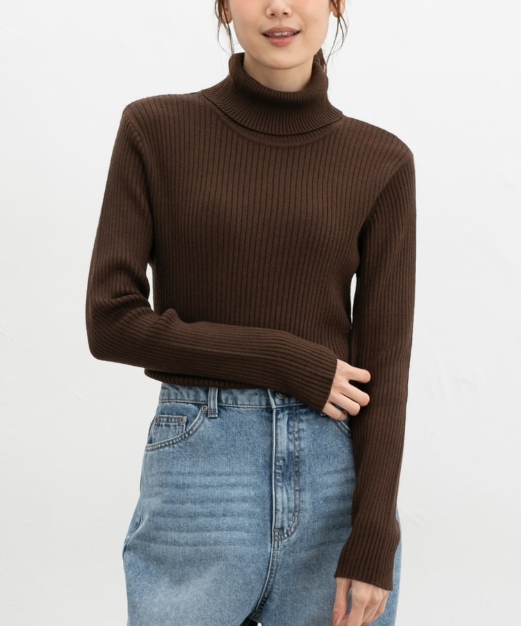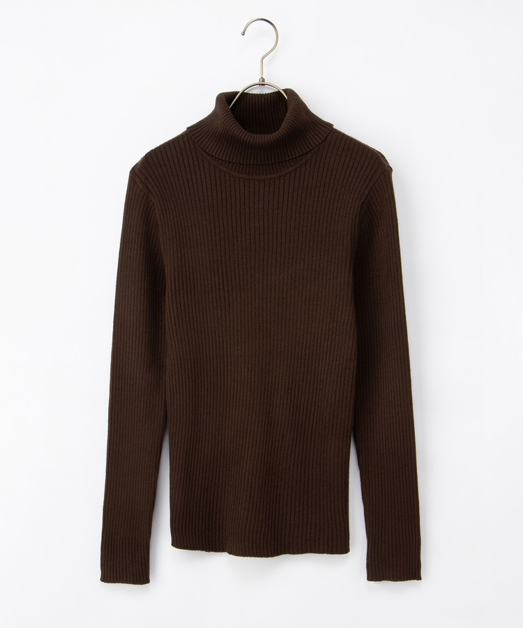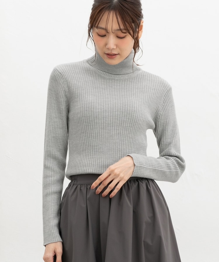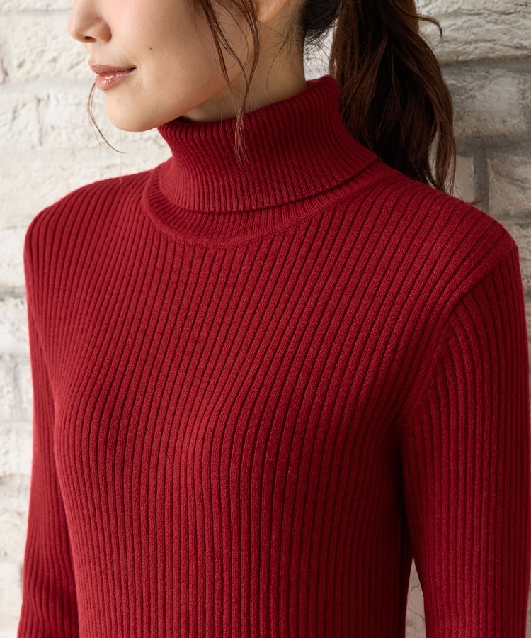 体にフィットするサイズ感とリブの縦目ですっきり見え。