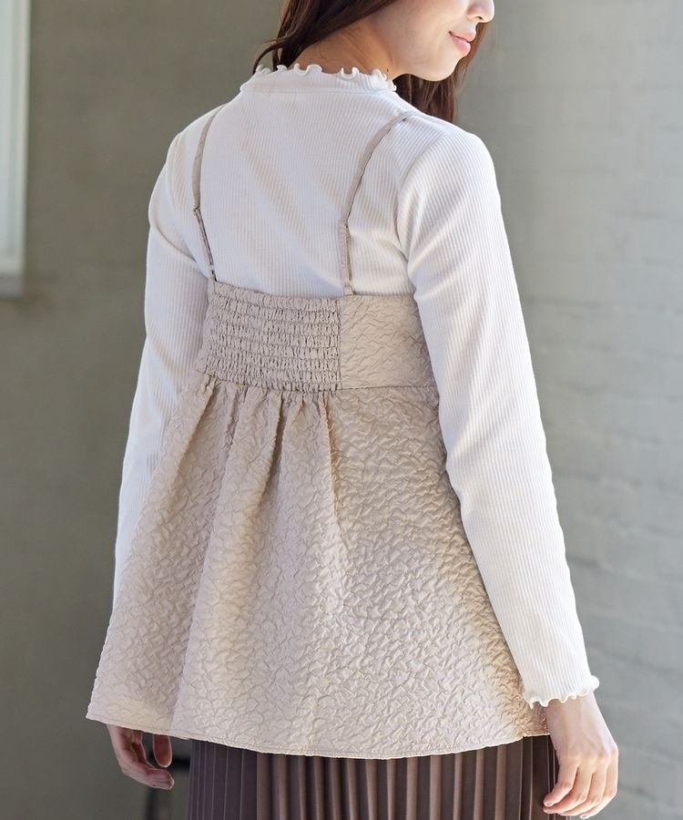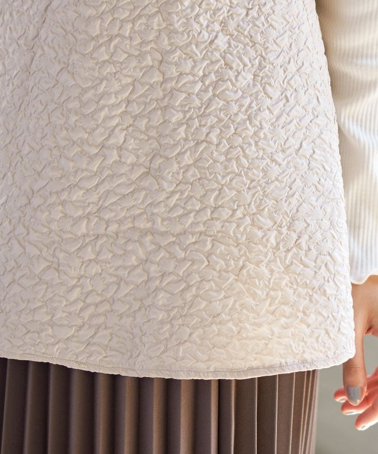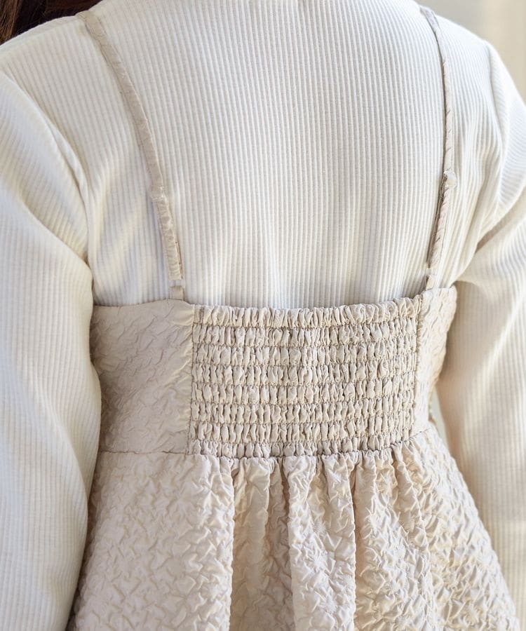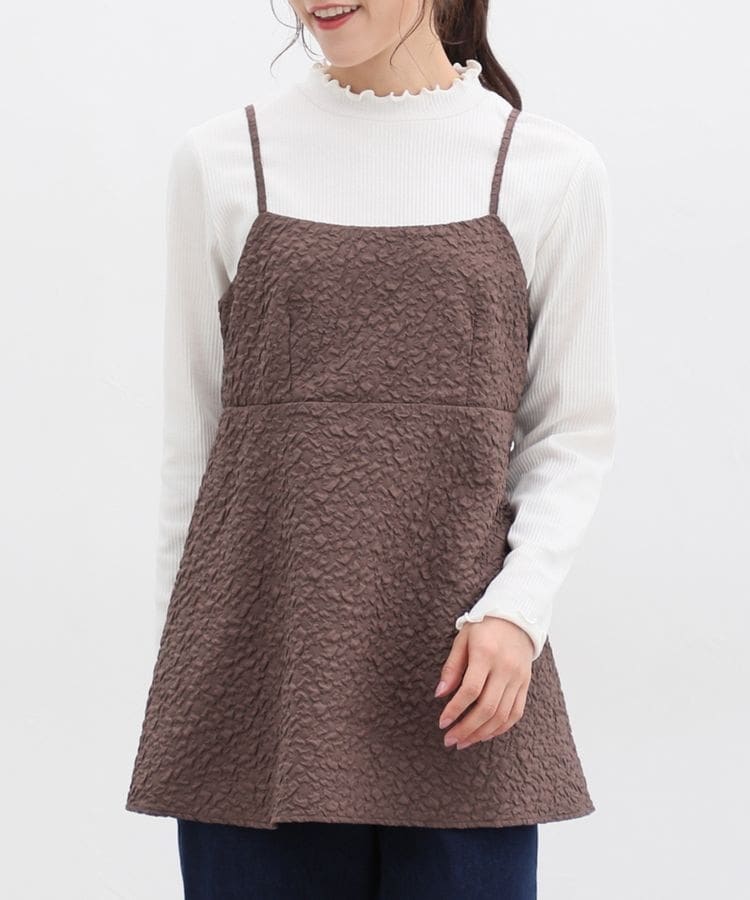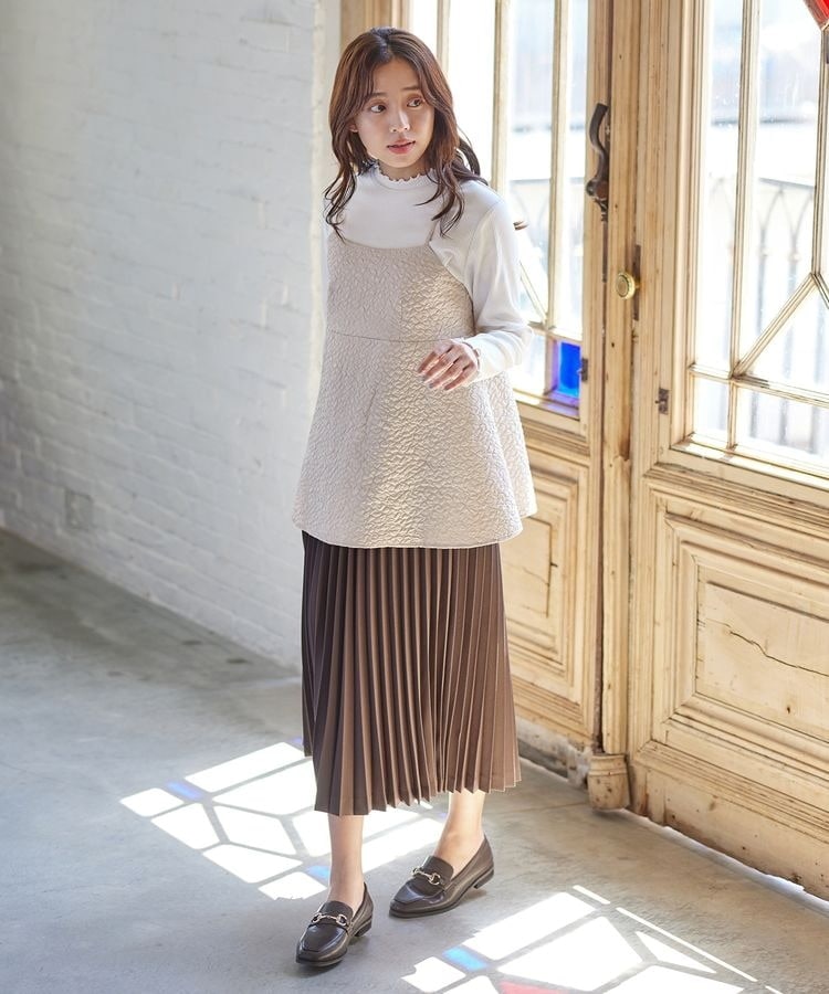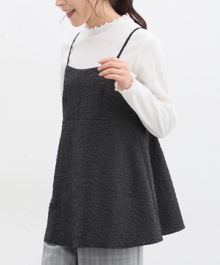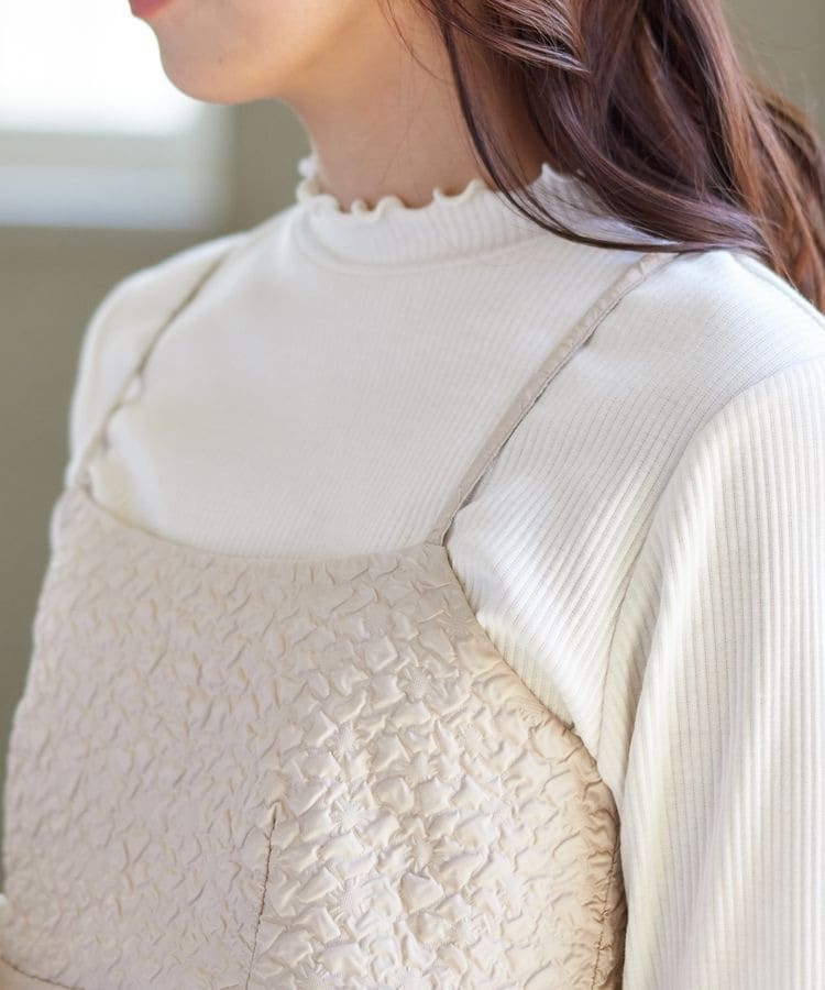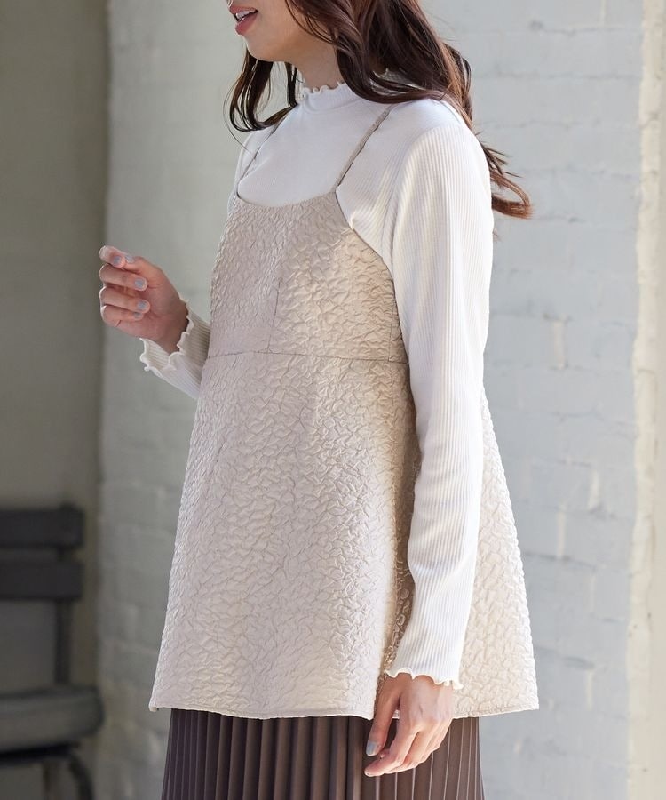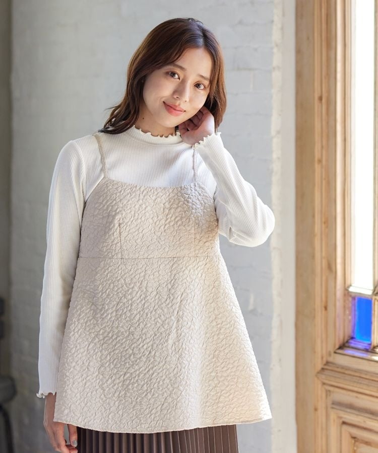 ポコポコの花柄がキュートなキャミソールは、高めの切り替え位置からふんわり広がるシルエットがフェミニンなデザイン。