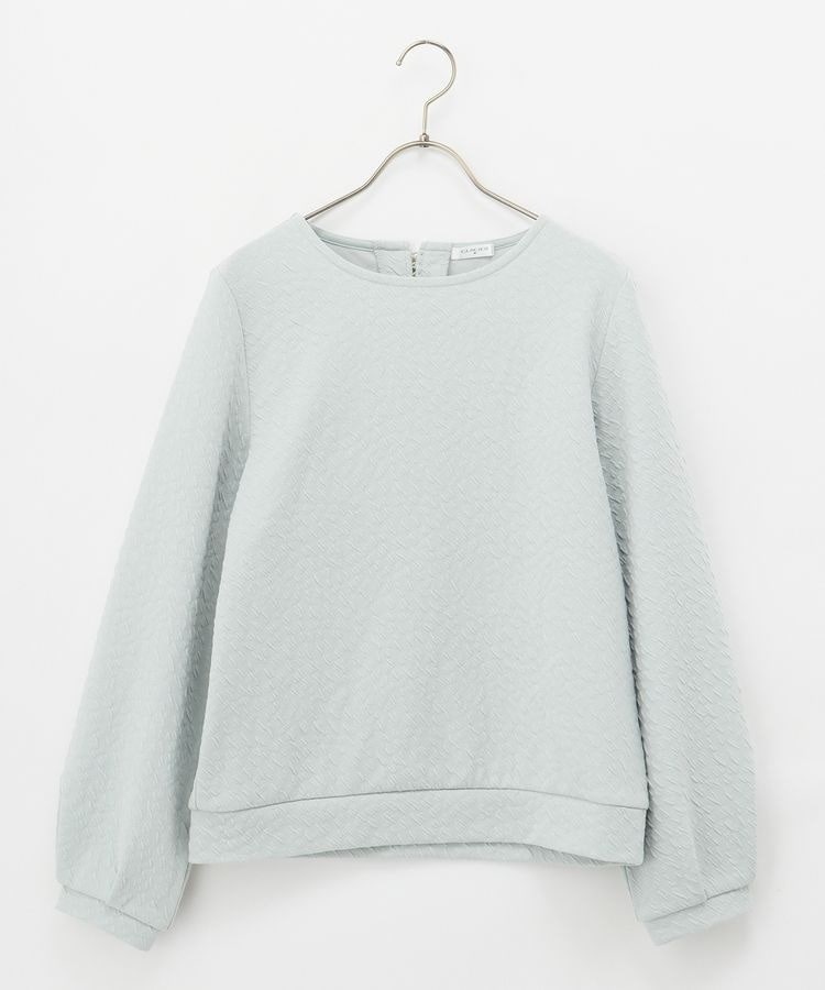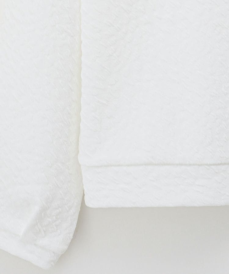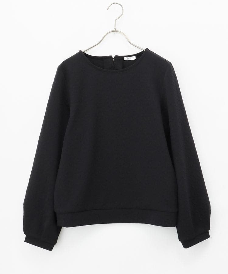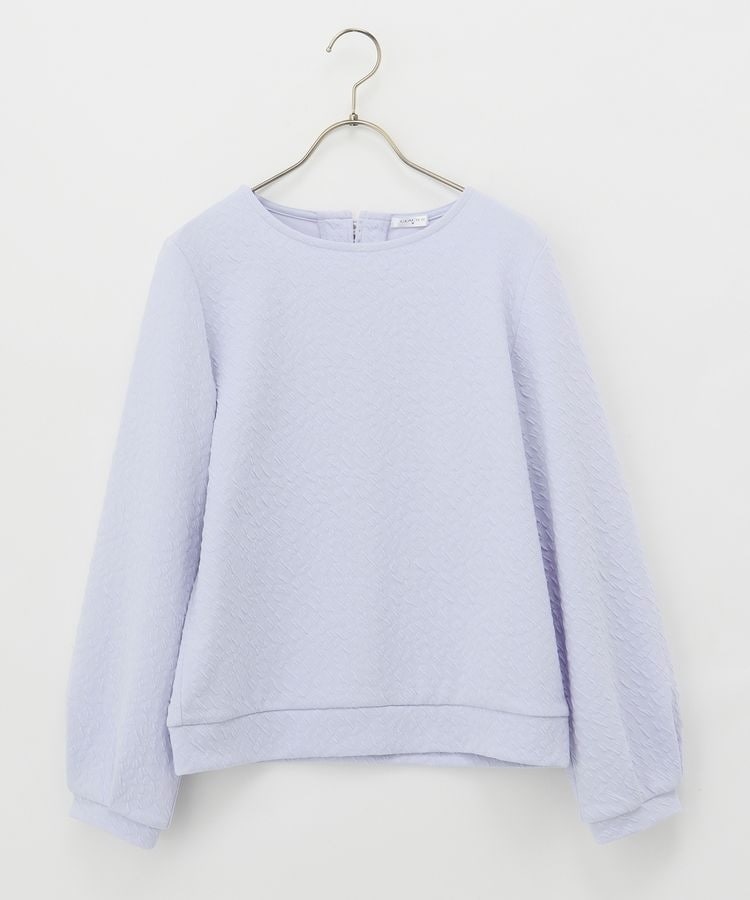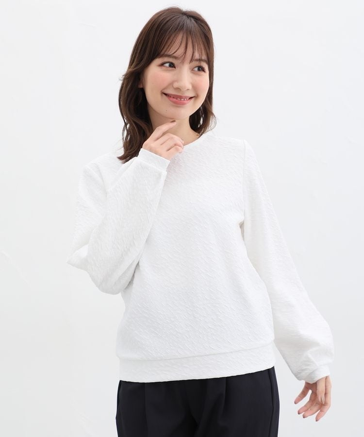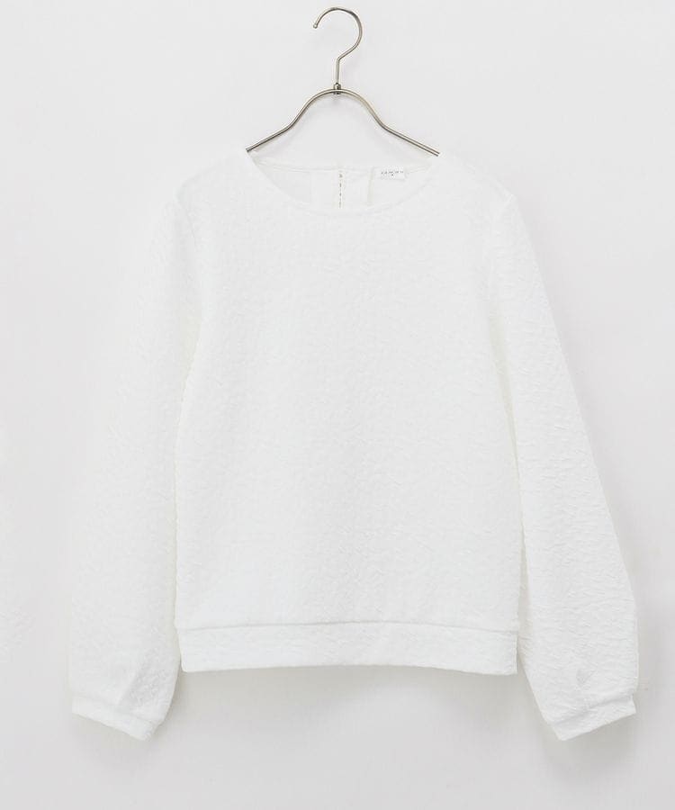 ポコポコ素材とバックネックのパール風ボタンが大人可愛いデザイン。