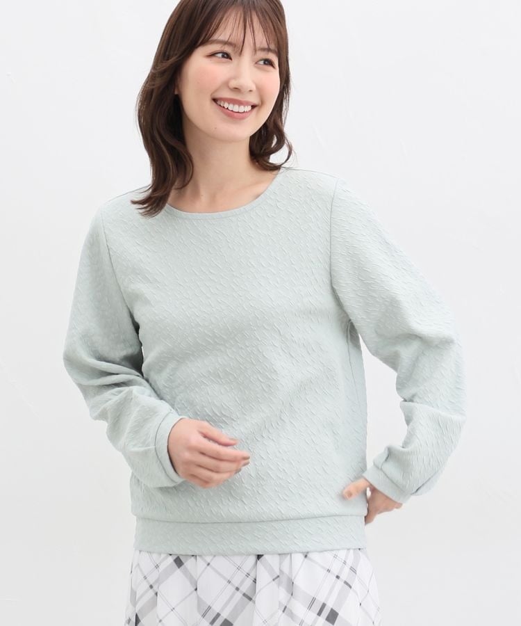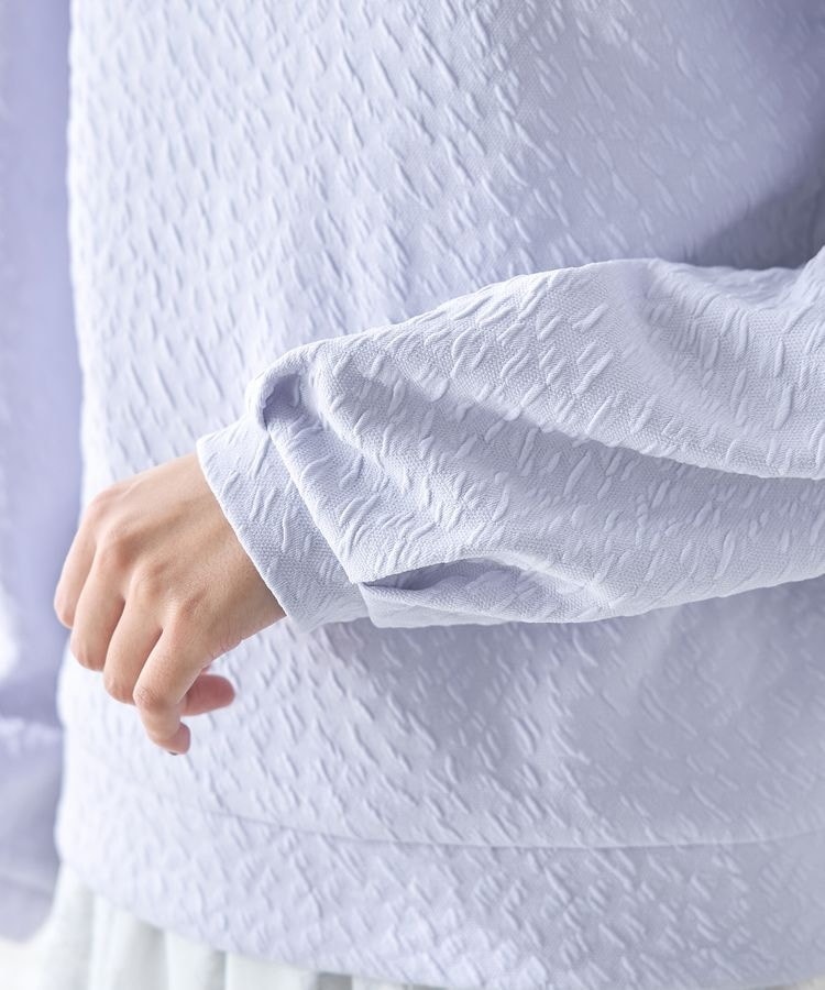 ストレッチが利いて着心地のよい、ふくれジャカード素材。