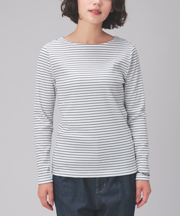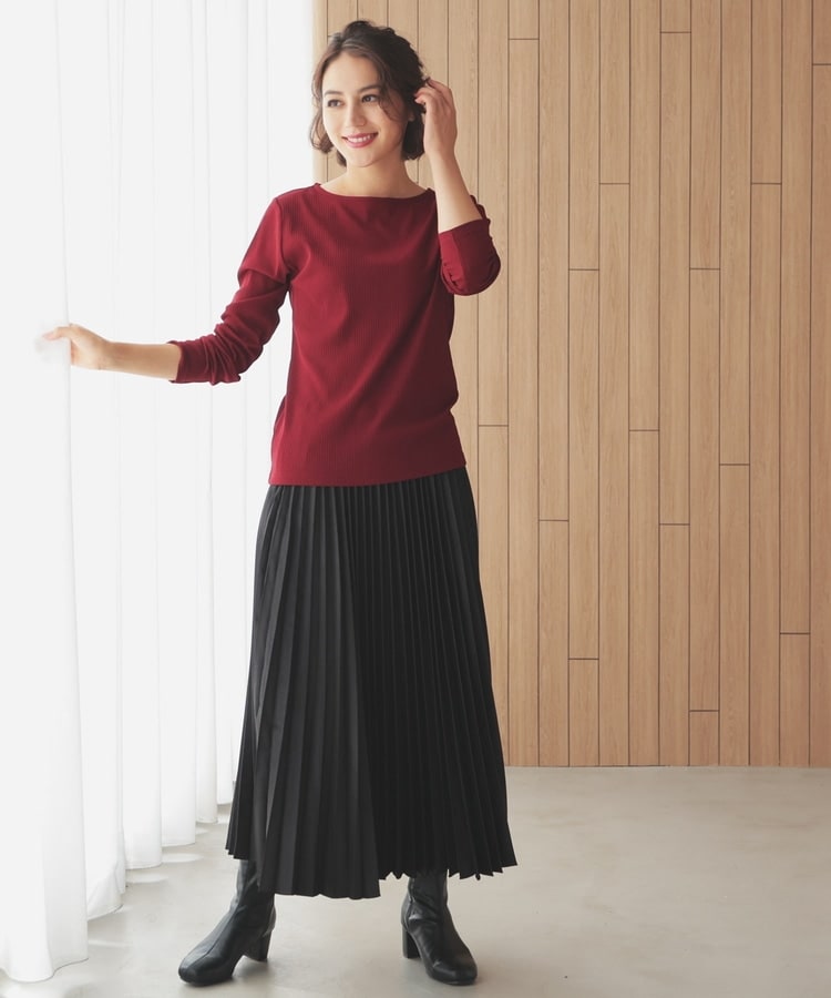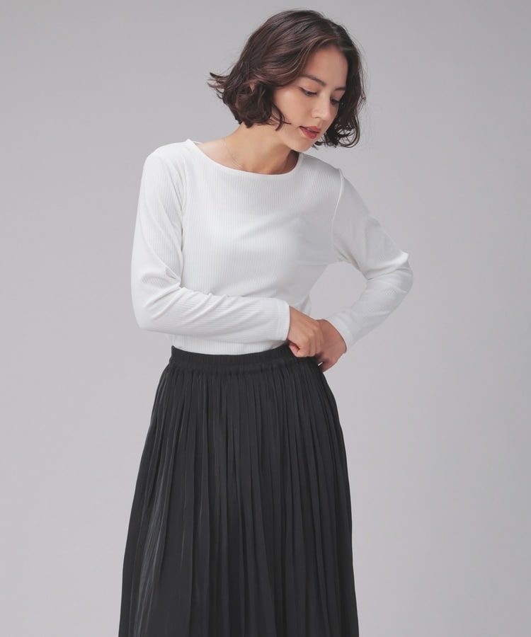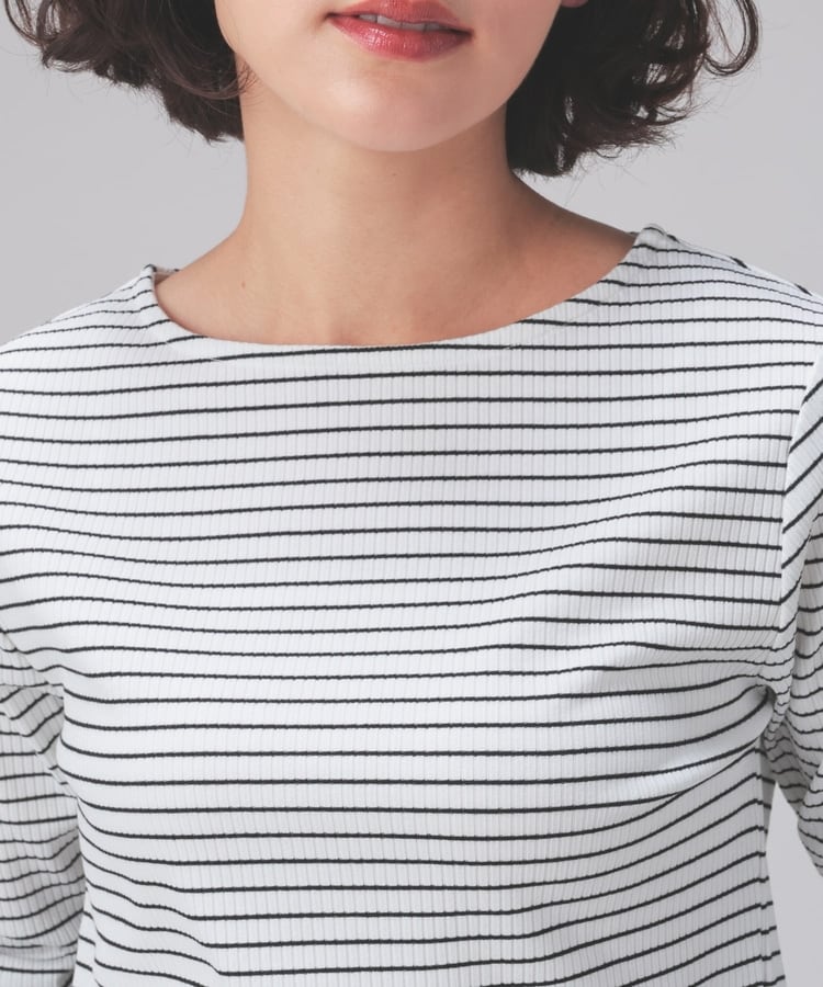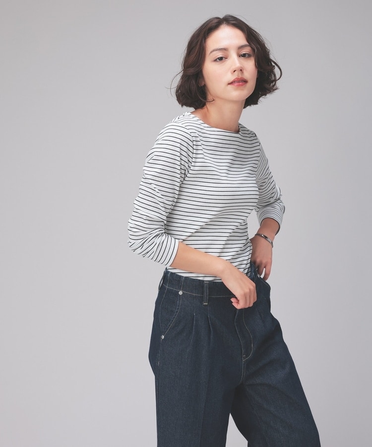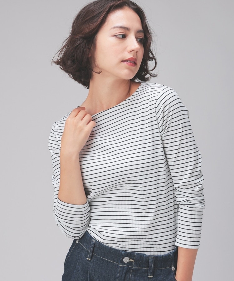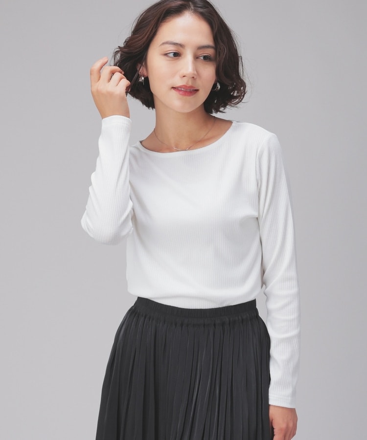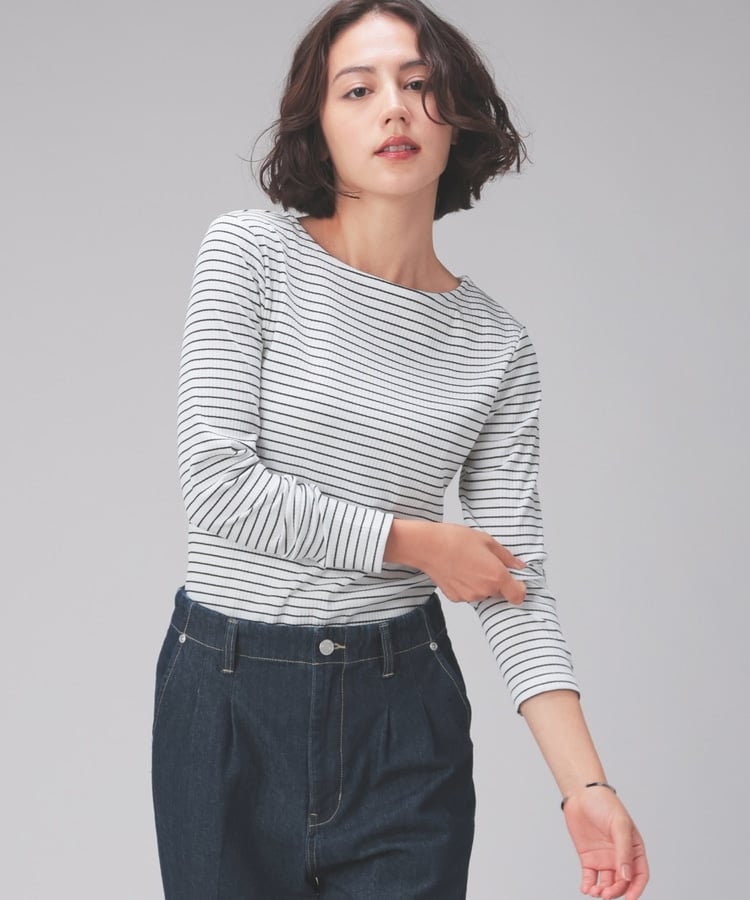 オンからオフまで着回せるボートネックトップス。