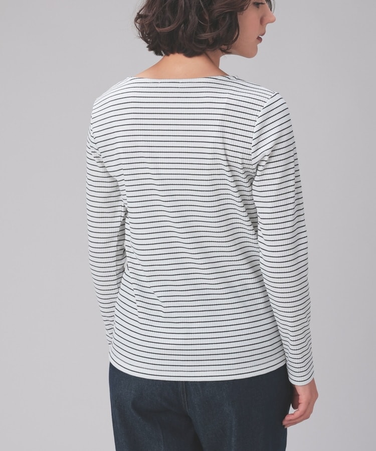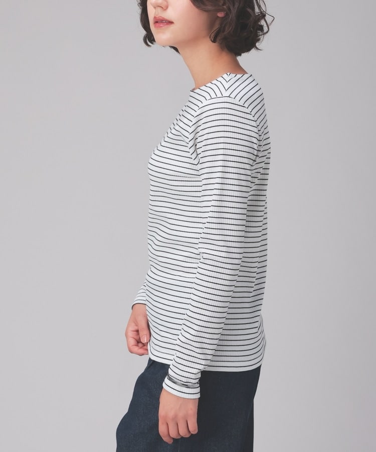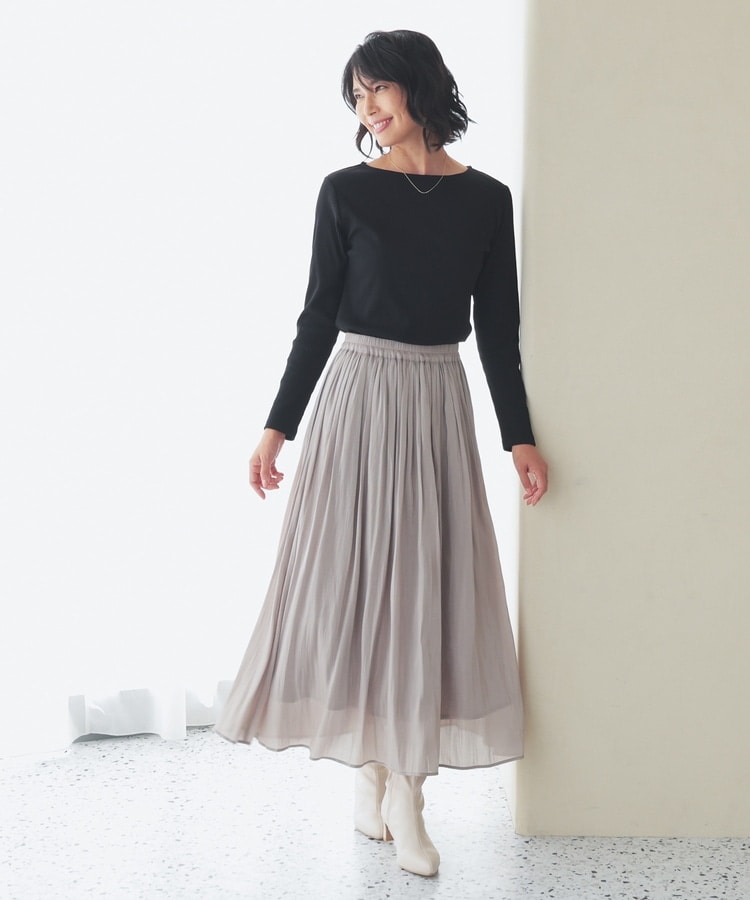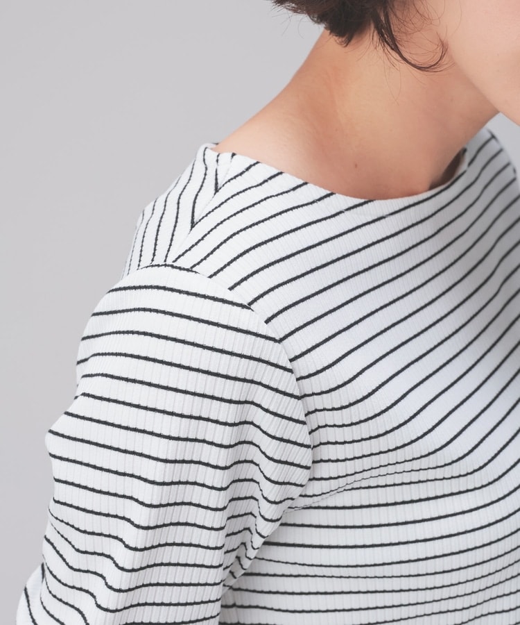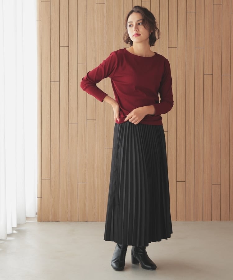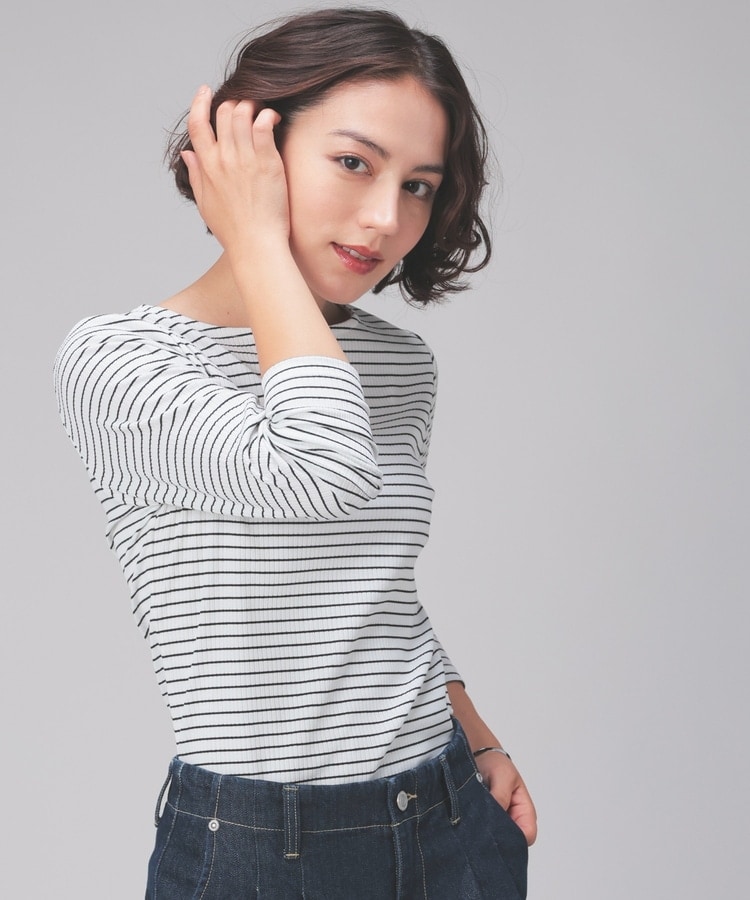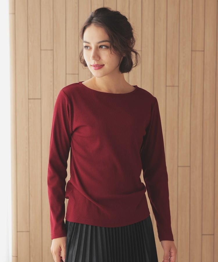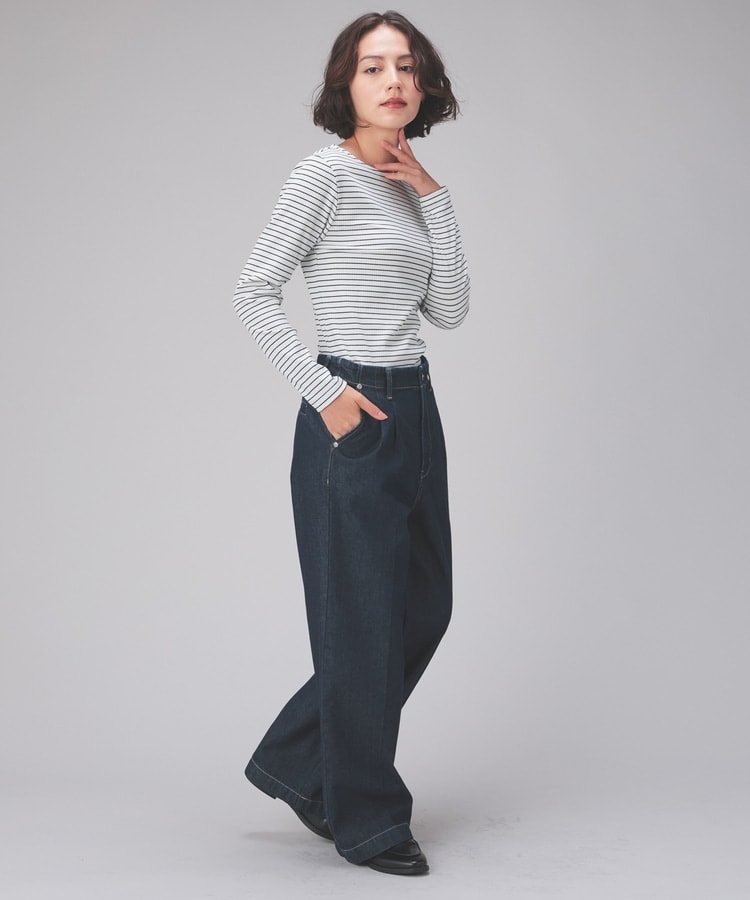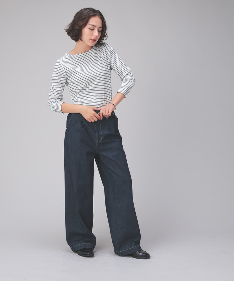 オンからオフまで着回せるボートネックトップス。