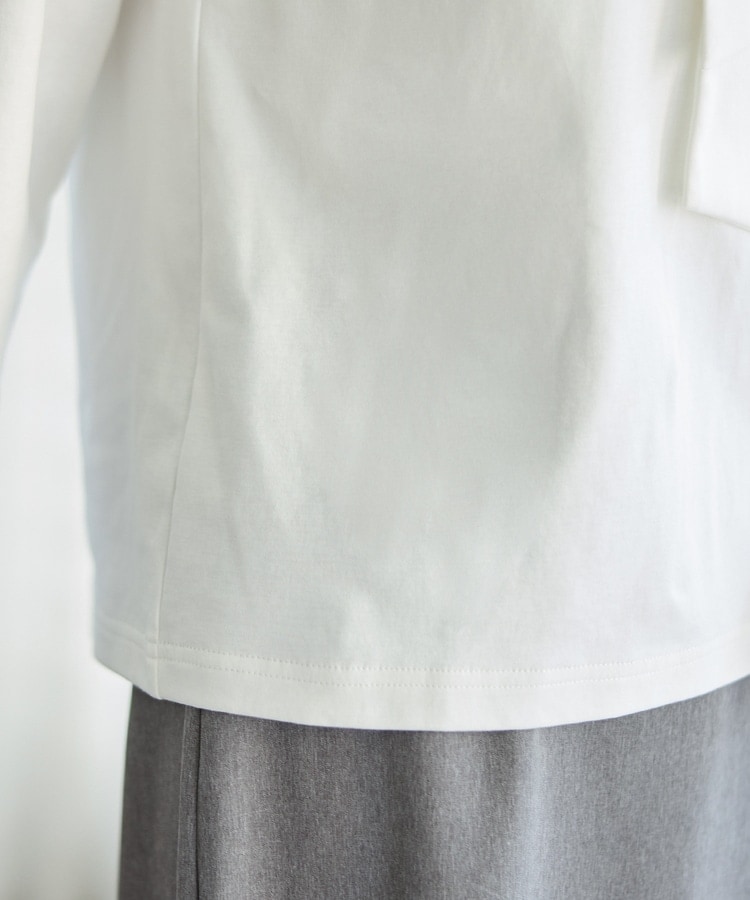 きめ細かく滑らかでブラウス見えする、綿100%のカットソー素材。