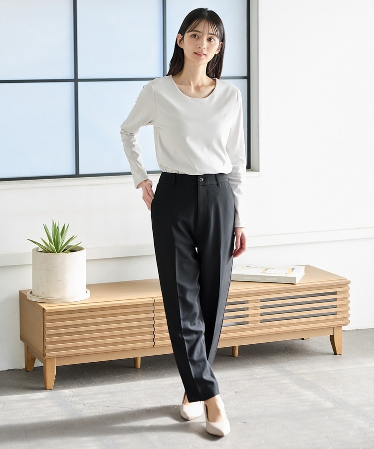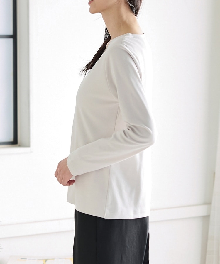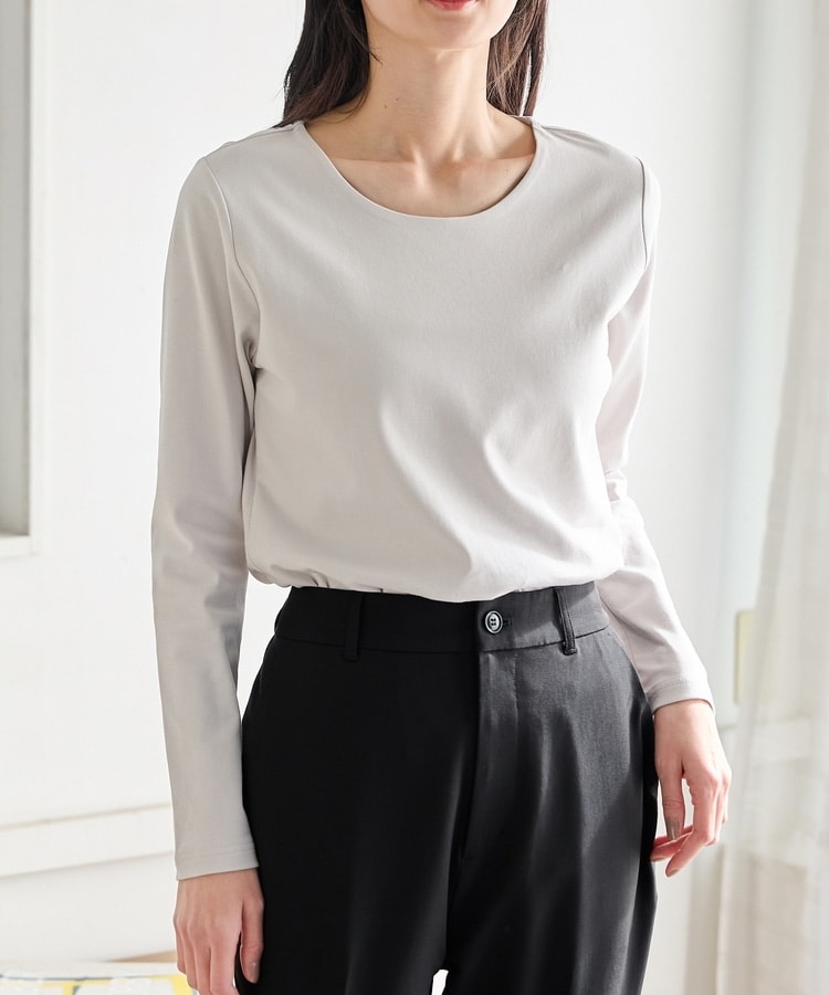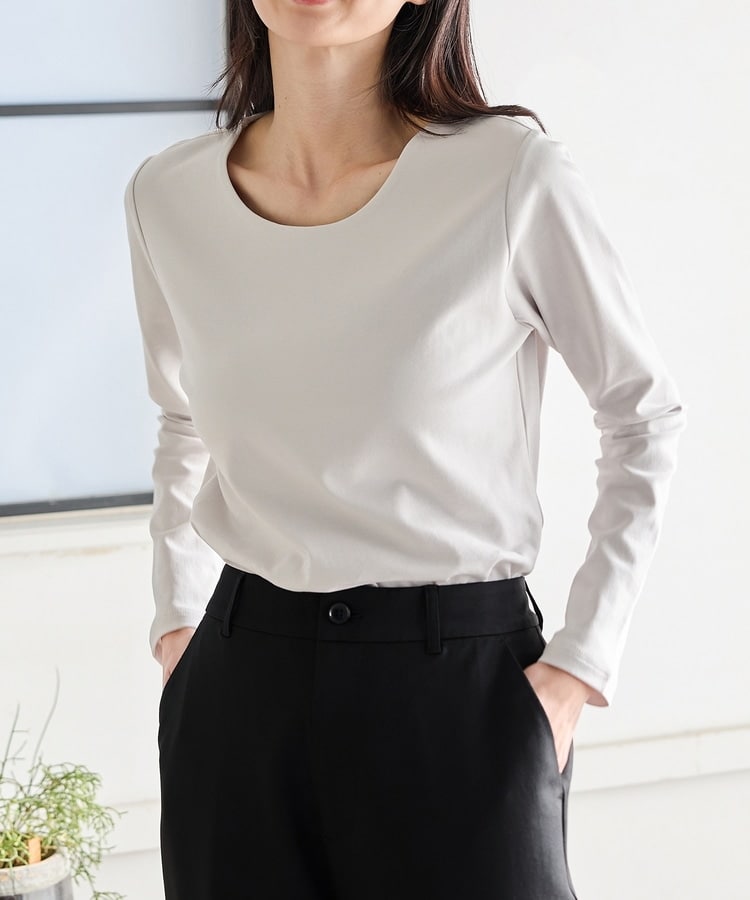 1枚でも、ジャケットやカーディガンのインにも使え、お仕事やお出かけなどのきれいめスタイルに、ロングシーズン活躍。