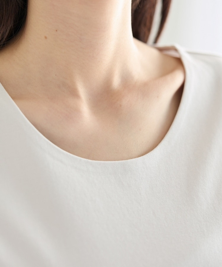 ステッチをなくした広すぎないクルーネックで、高見えが叶う上品デザイン。