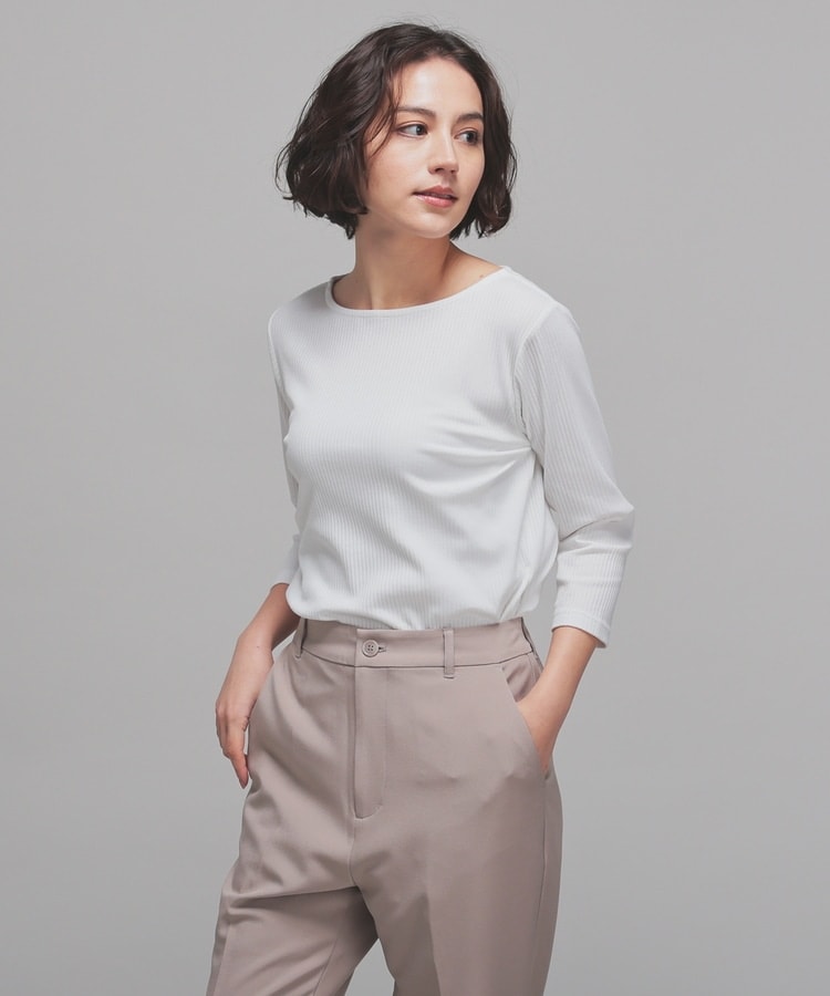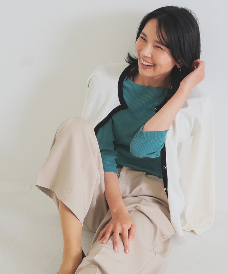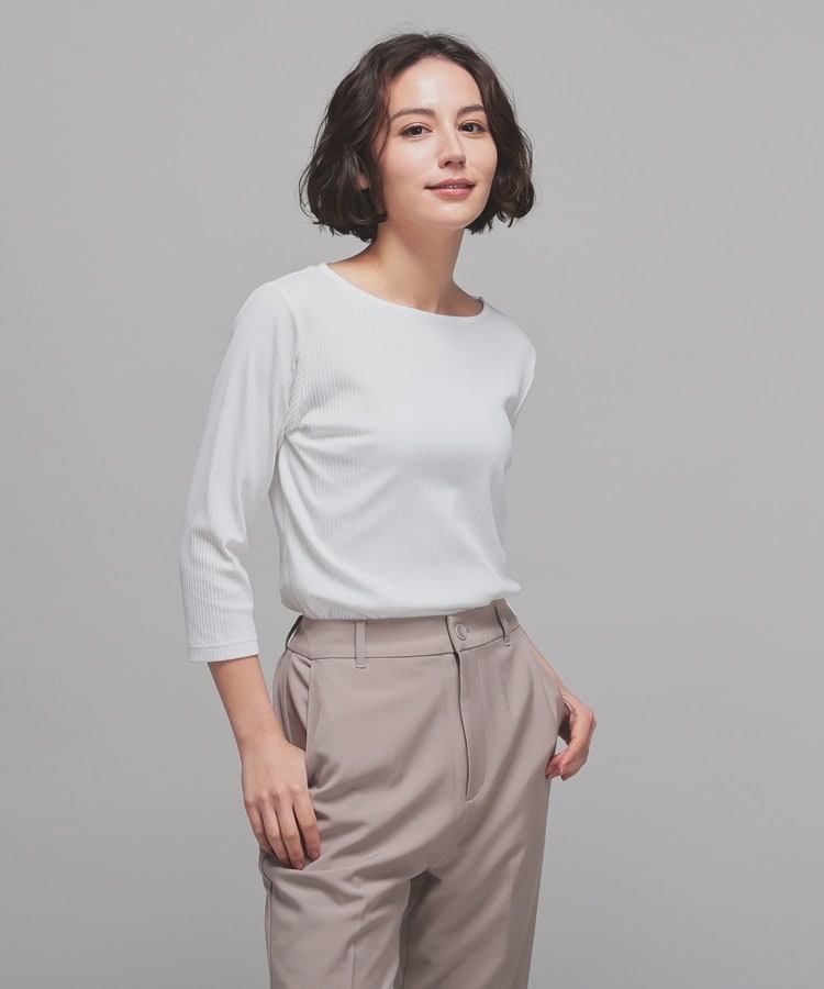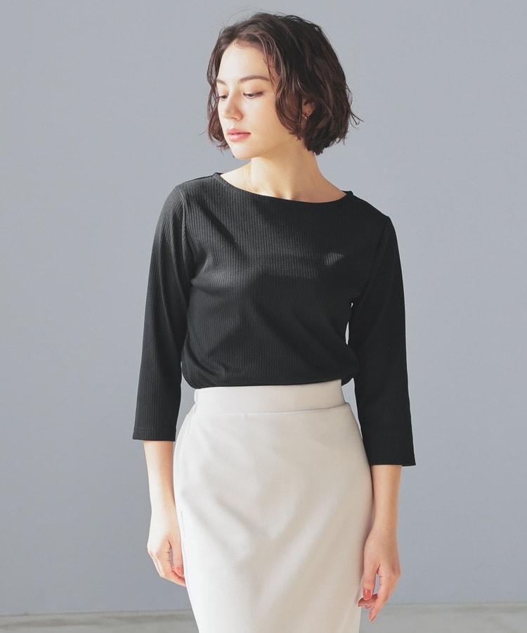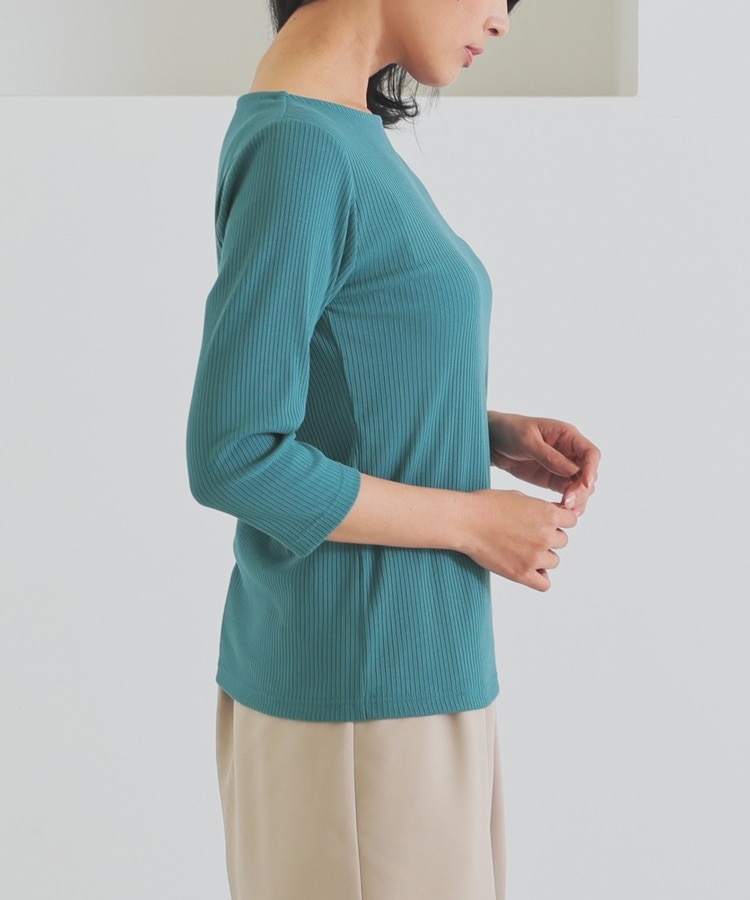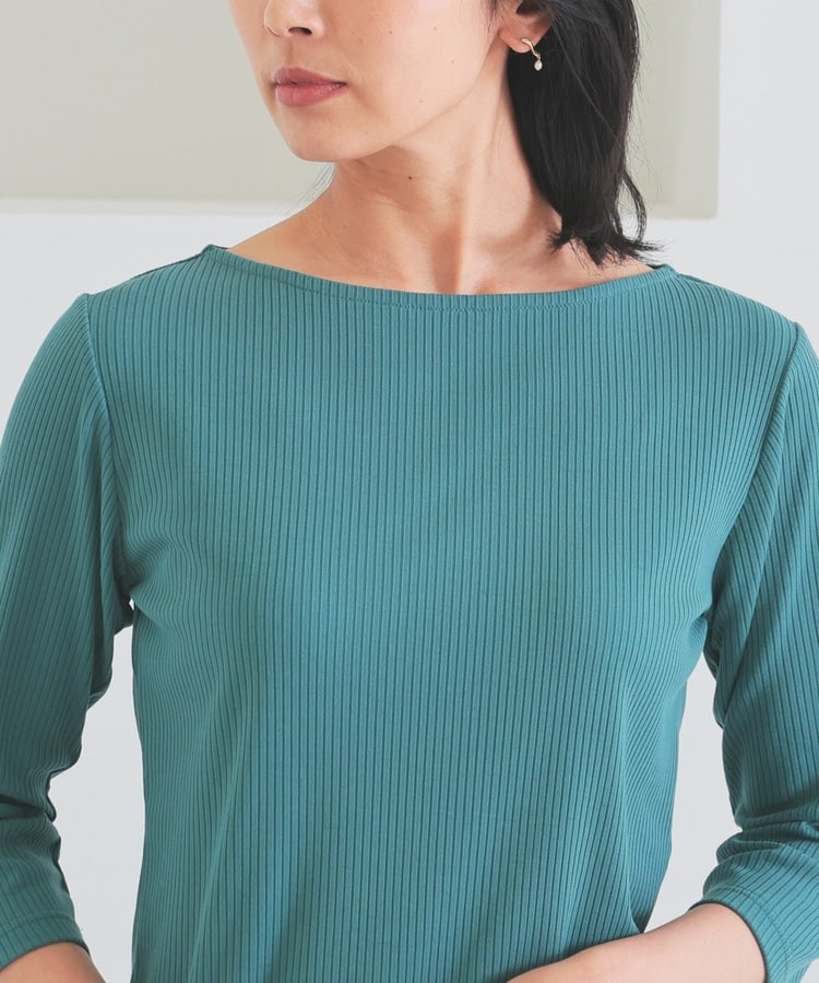 デコルテの露出を抑えたボートネックのシンプルで上品なデザイン。
