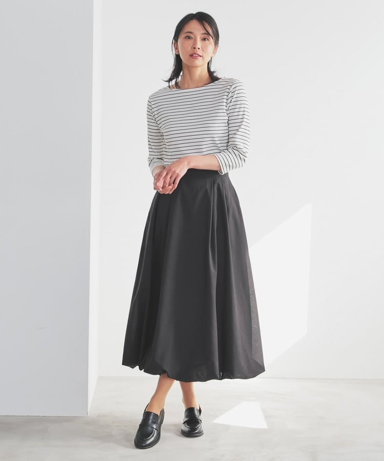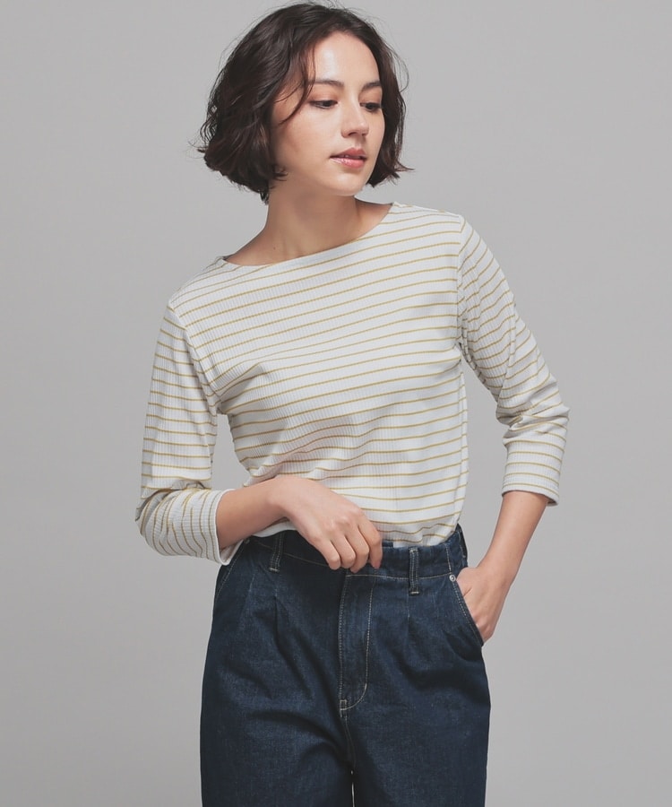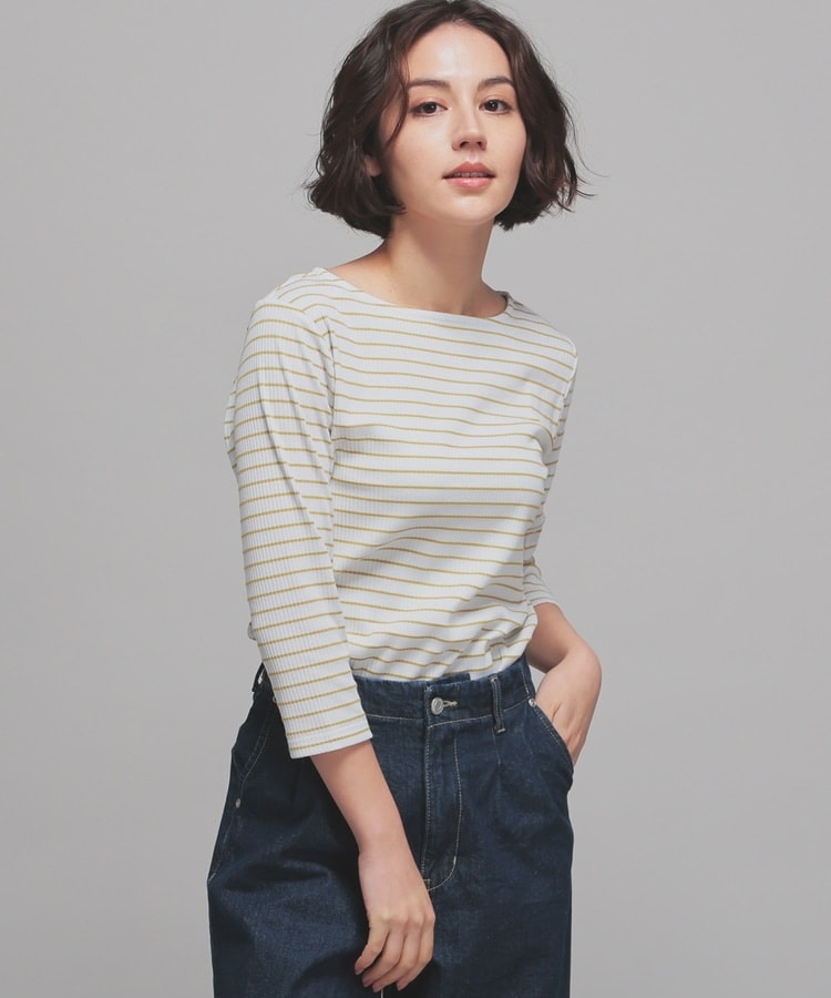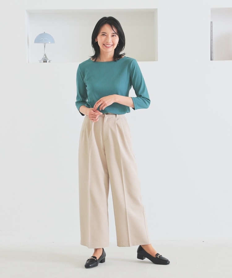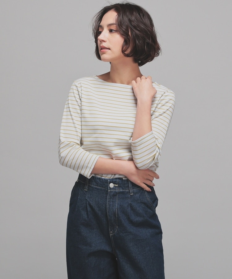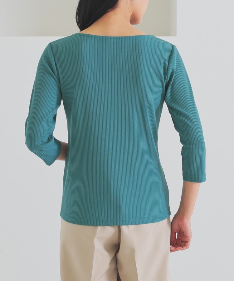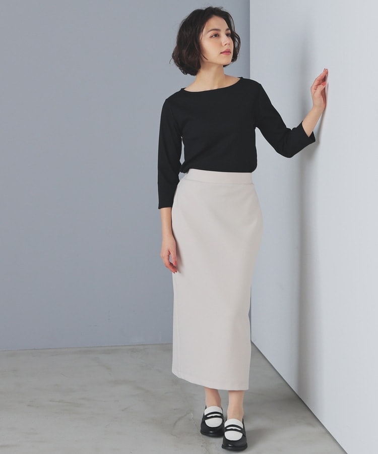 デコルテの露出を抑えたボートネックのシンプルで上品なデザイン。