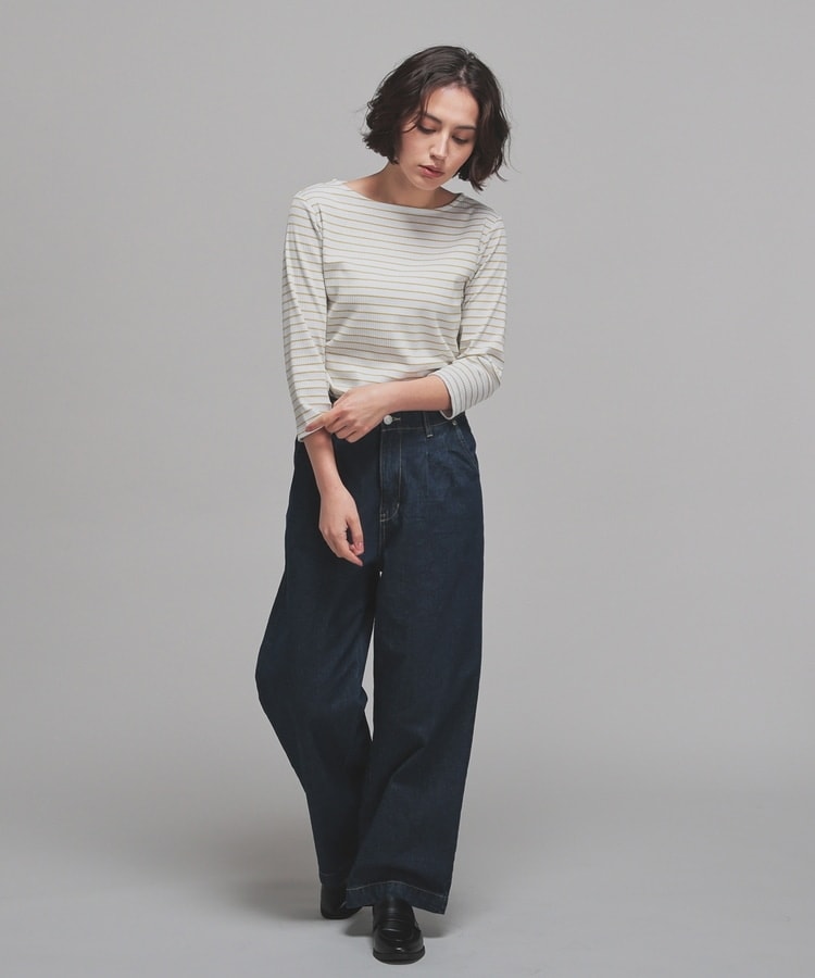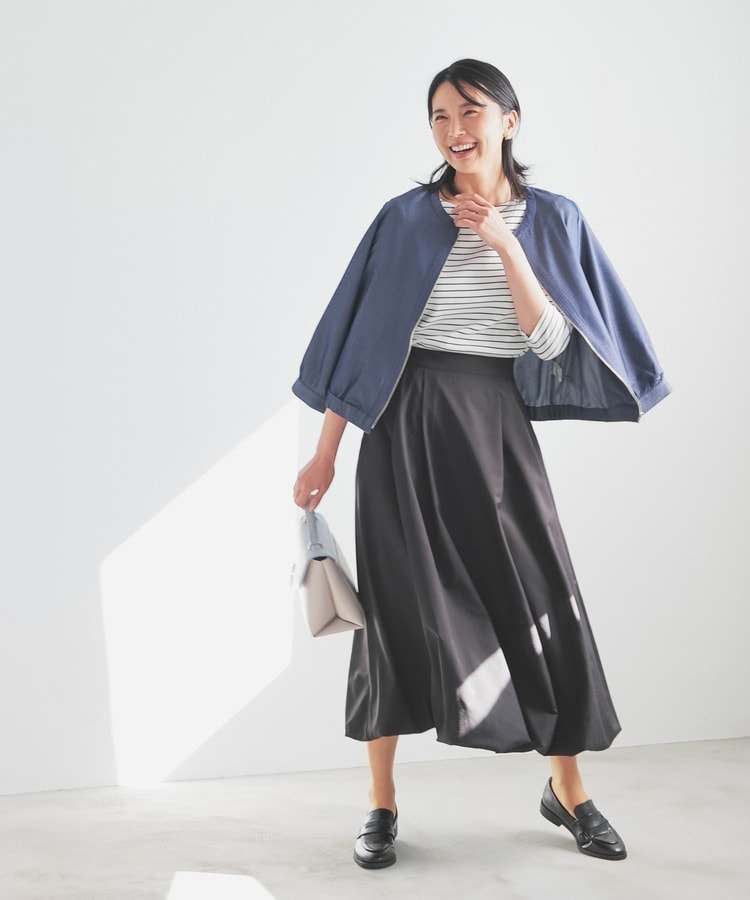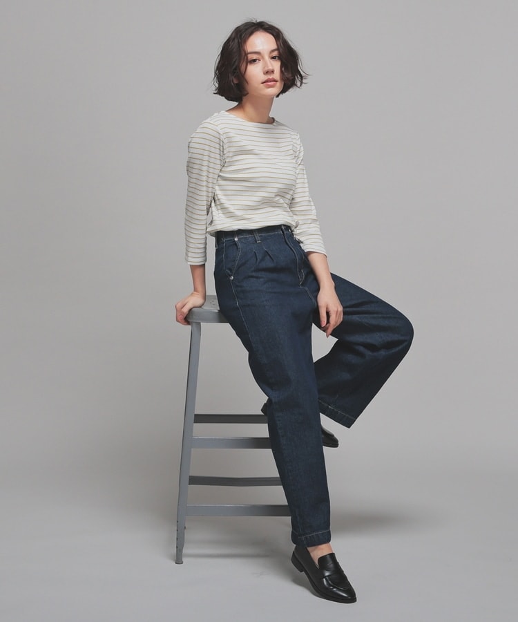 ジャケットにも合うサイズ感で、テーパードパンツと合わせたきれいめスタイルからデニム合わせのカジュアルスタイルまで幅広く活躍。