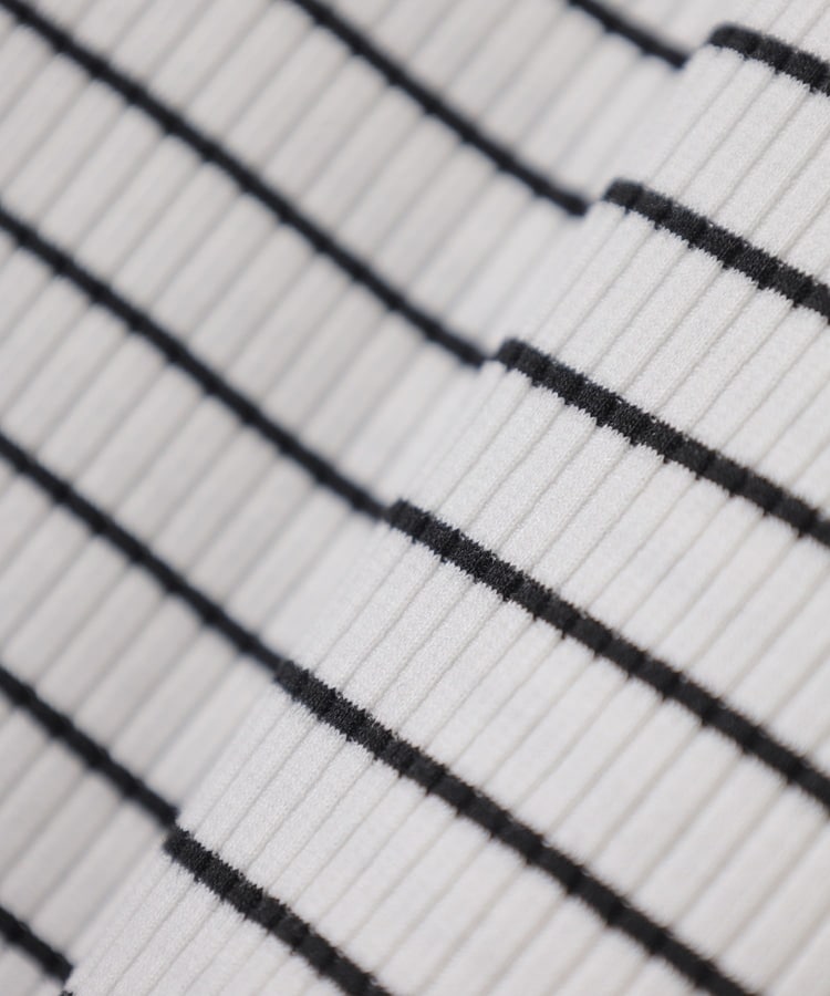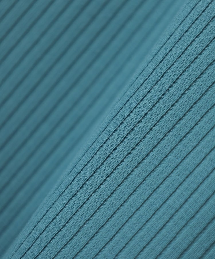 環境に優しい再生ポリエステルを使用した、程よくフィットしながらストレッチが利いて着心地抜群のレーヨン混テレコ素材。