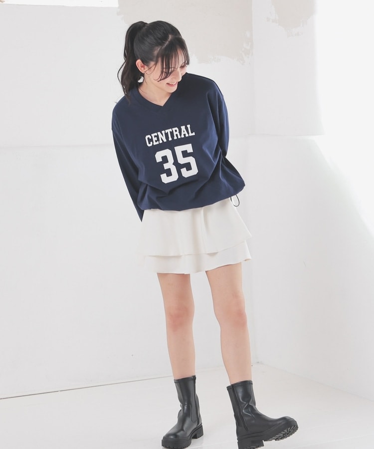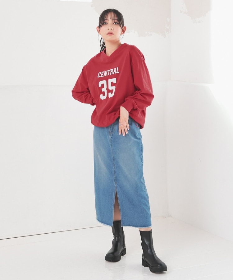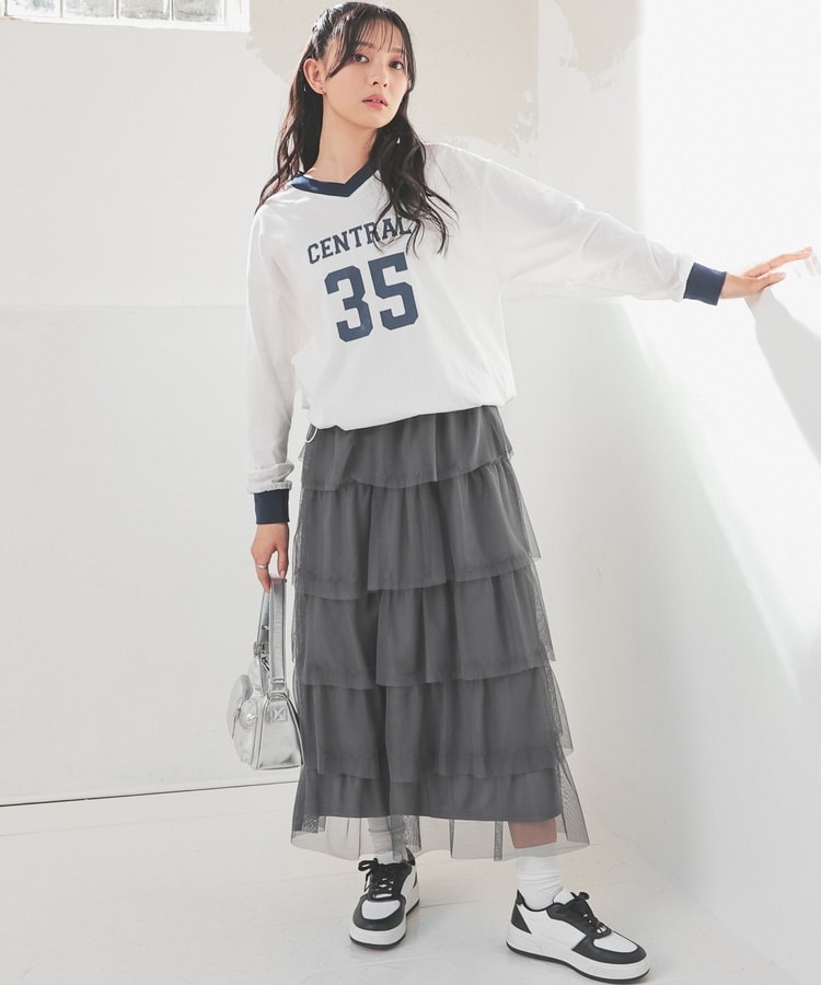 デニムやカーゴパンツ合わせのカジュアルはもちろん、スカートと合わせたストリートMIXコーデもおすすめ◎