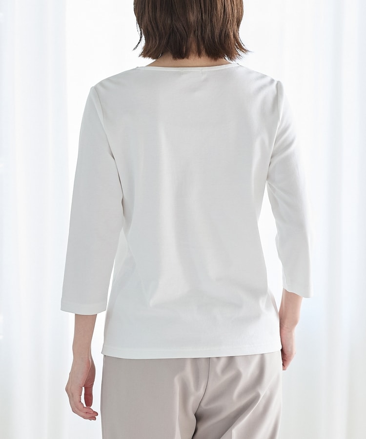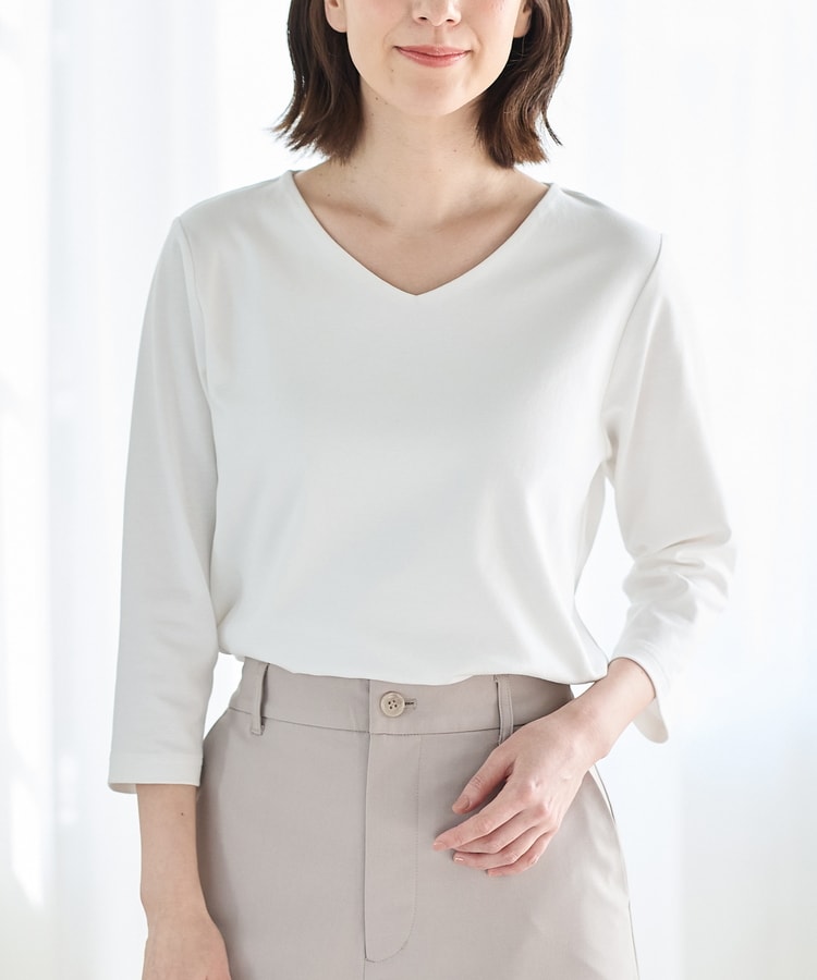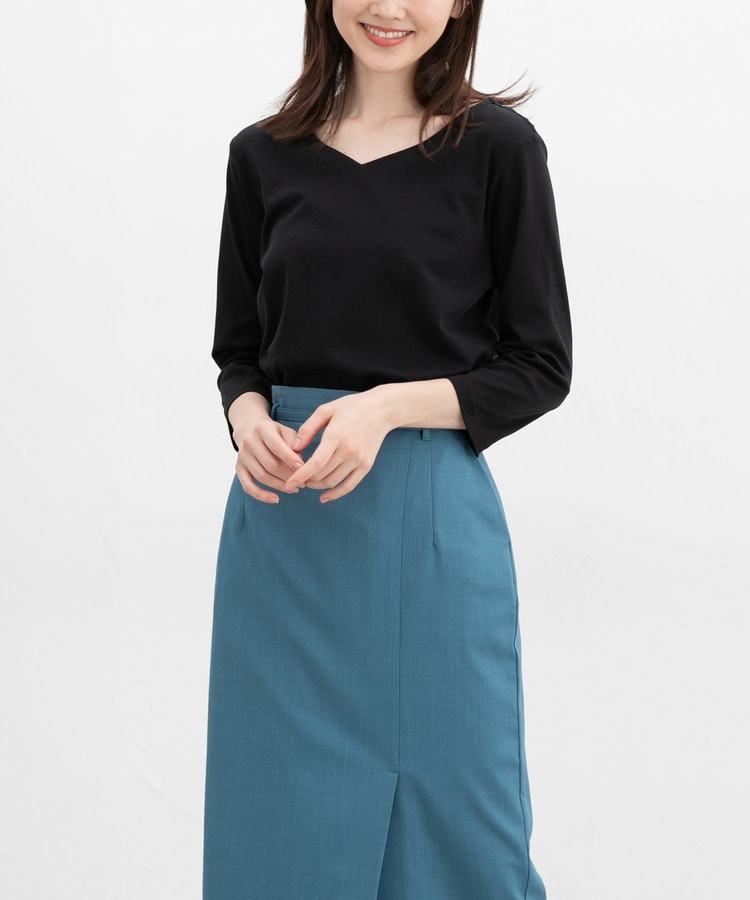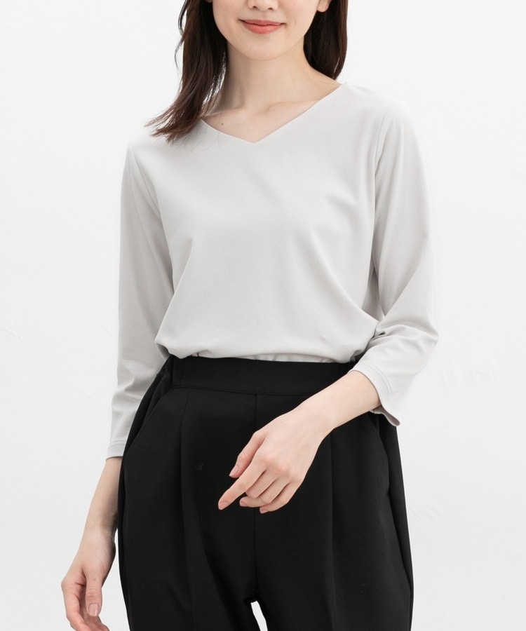 1枚でも、ジャケットやカーディガンのインにも使え、テーパードパンツやフレアスカートなどと合わせた、お仕事やお出かけのきれいめスタイルに、ロングシーズン活躍。