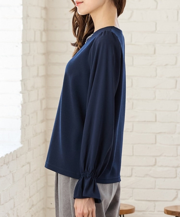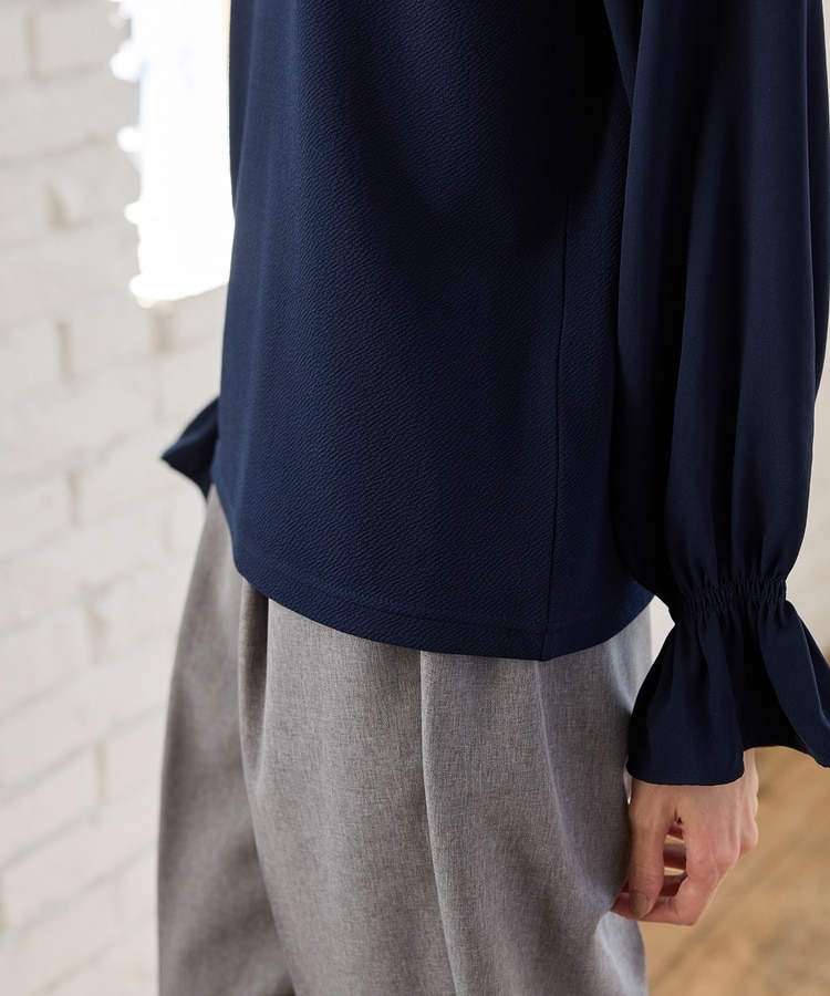 袖口のゴムシャーリングで、たくし上げてパフっとさせたりとアレンジ可能。