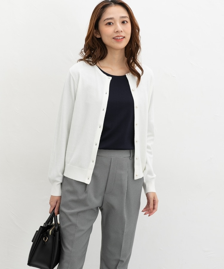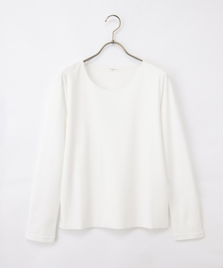 ステッチをなくした広すぎないクルーネックで、高見えが叶う上品デザイン。