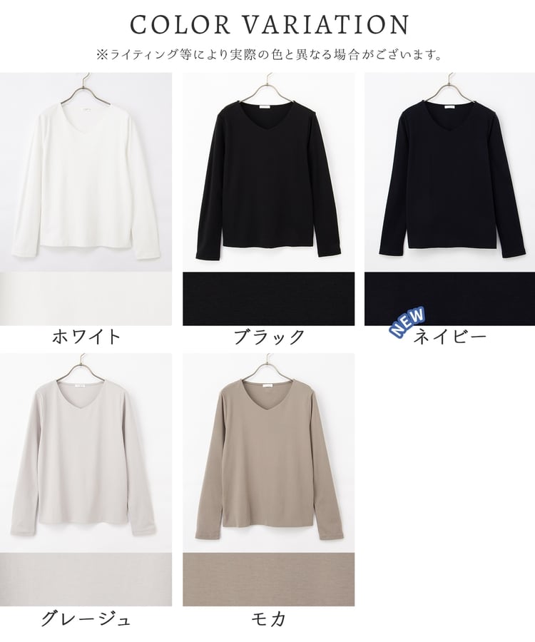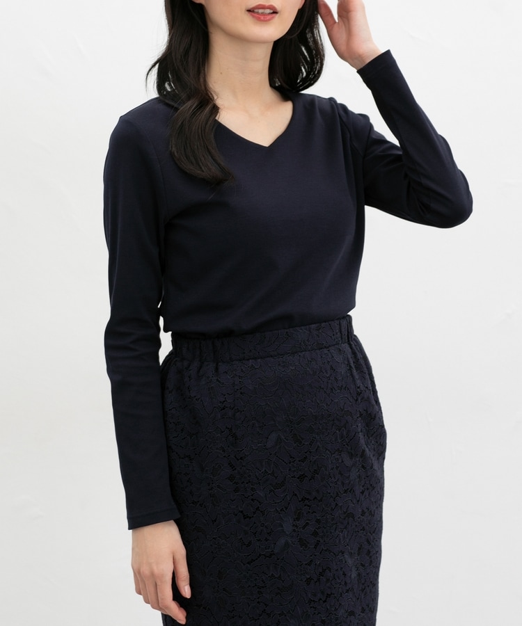 1枚でも、ジャケットやカーディガンのインにも使え、お仕事やお出かけなどのきれいめスタイルに、ロングシーズン活躍。