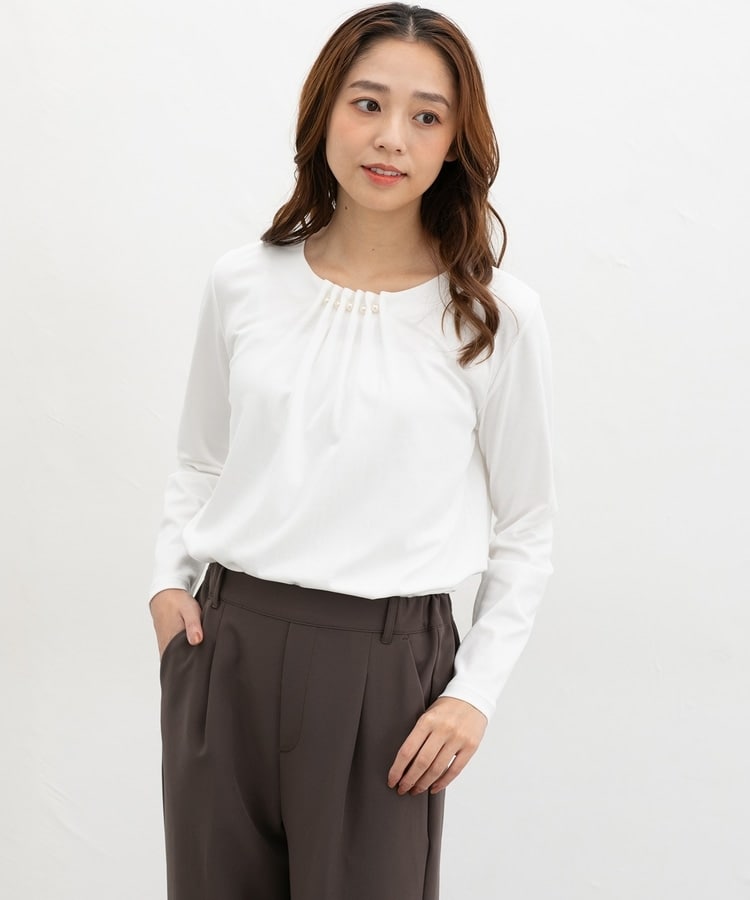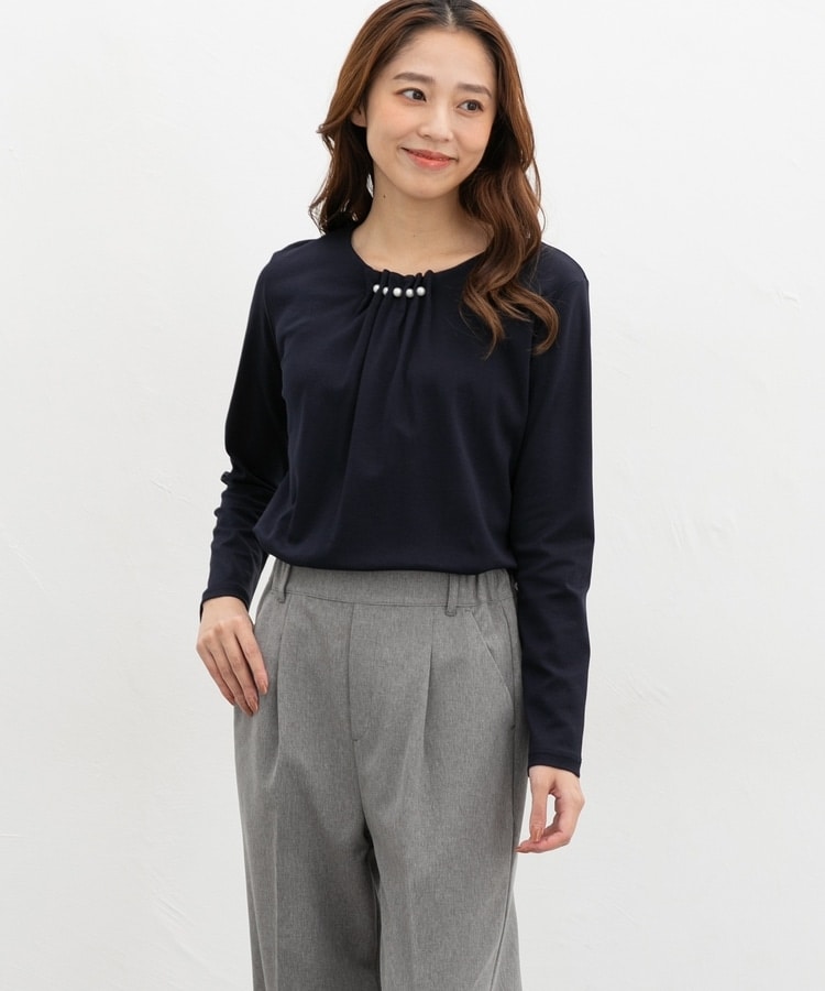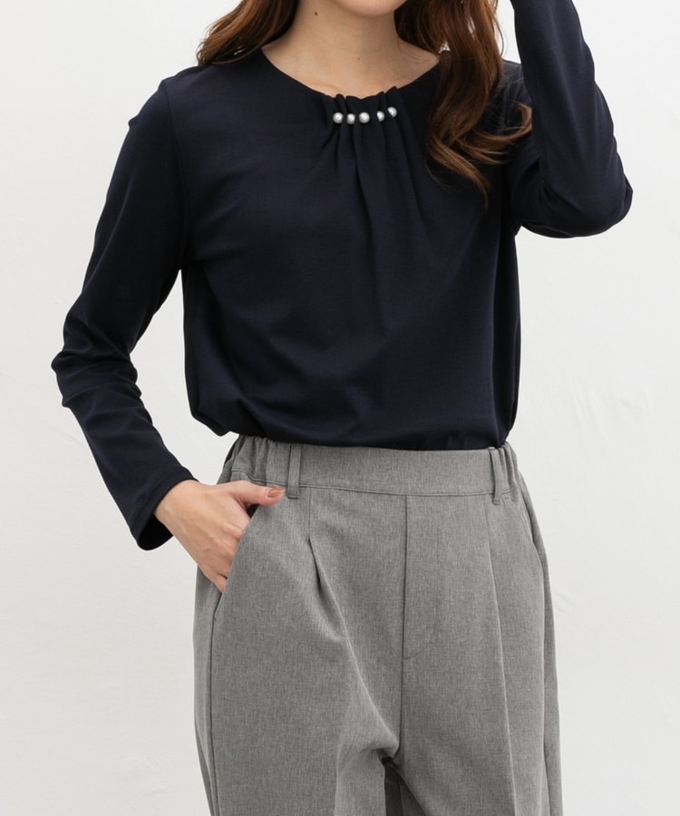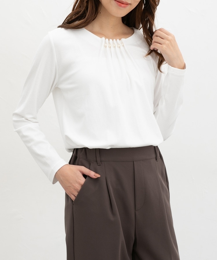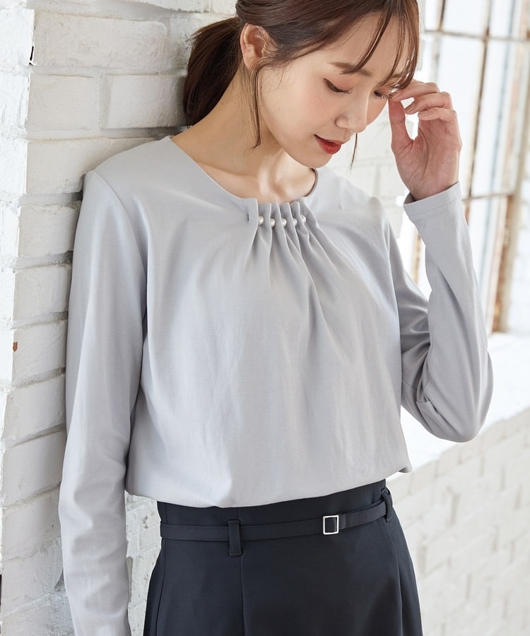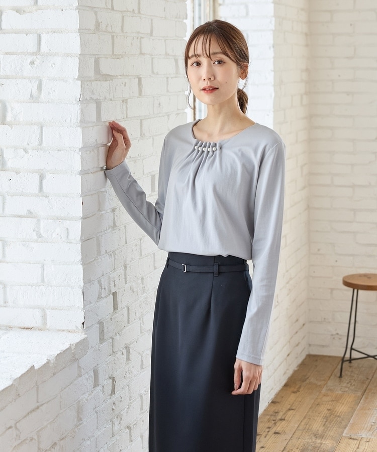 1枚でも、ジャケットやカーディガンのインにも使え、お仕事やお出かけなどのきれいめスタイルに、ロングシーズン活躍。