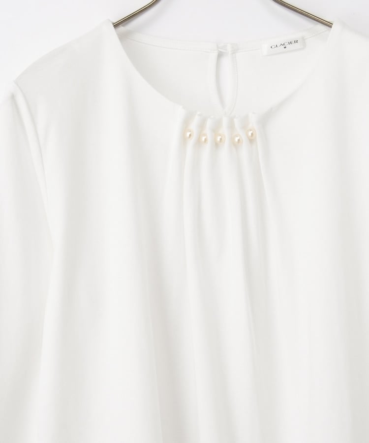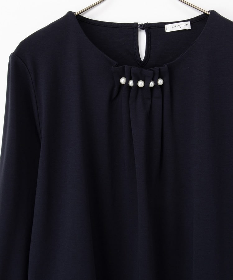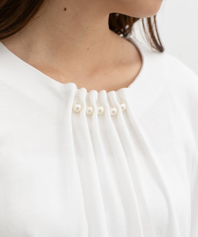 立体的なフロントタックにパール風ビーズを添えた上品で華やかなデザイン。