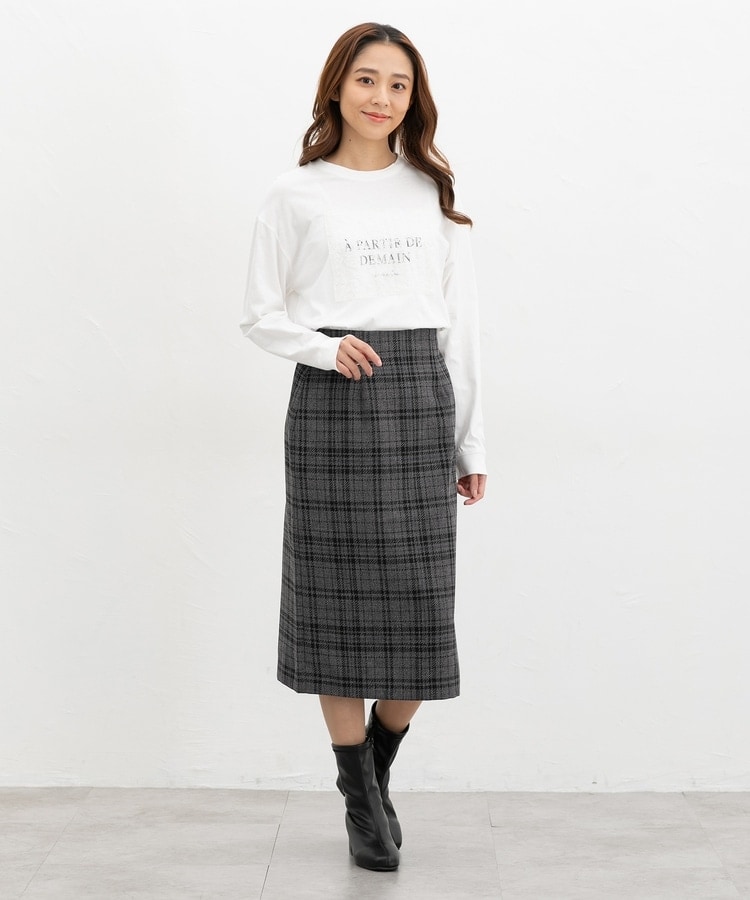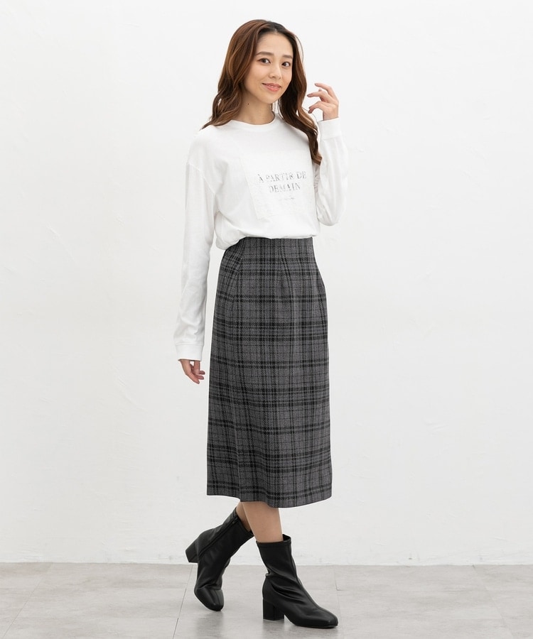 ゆったりめの幅と腰回りが隠れる丈感で体型もカバー。