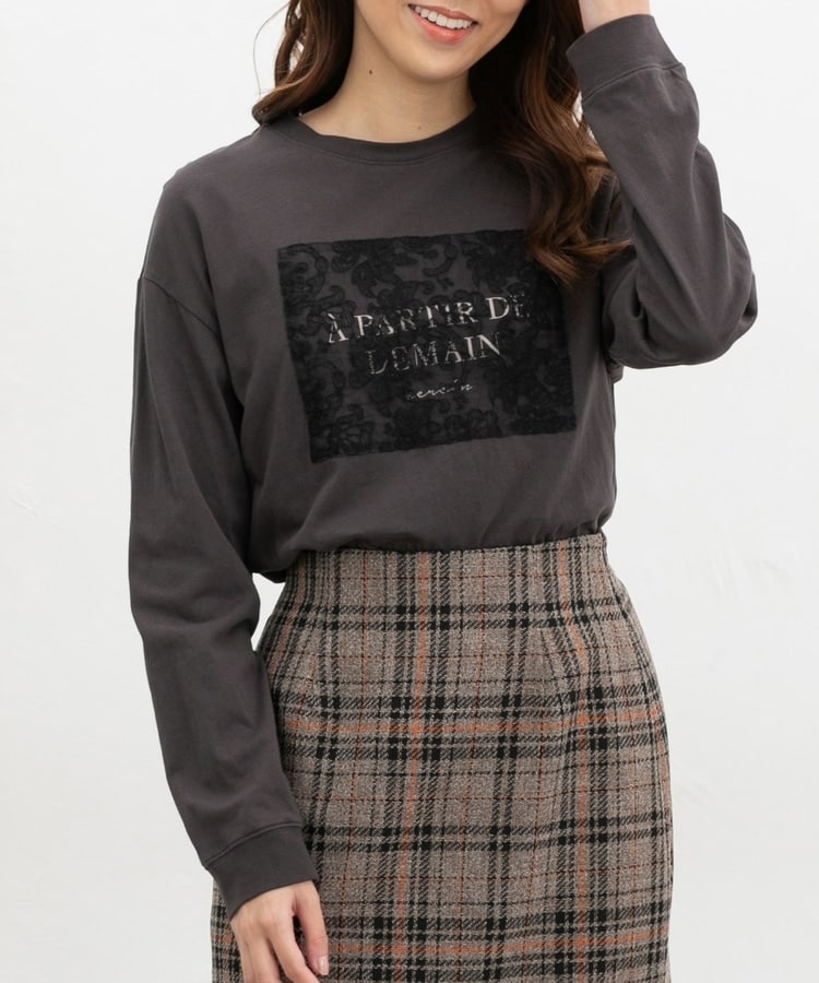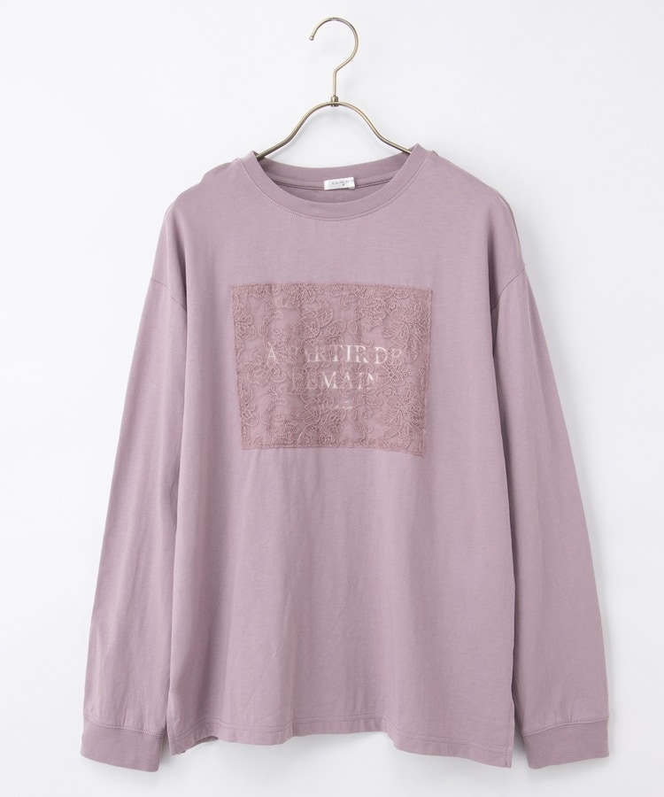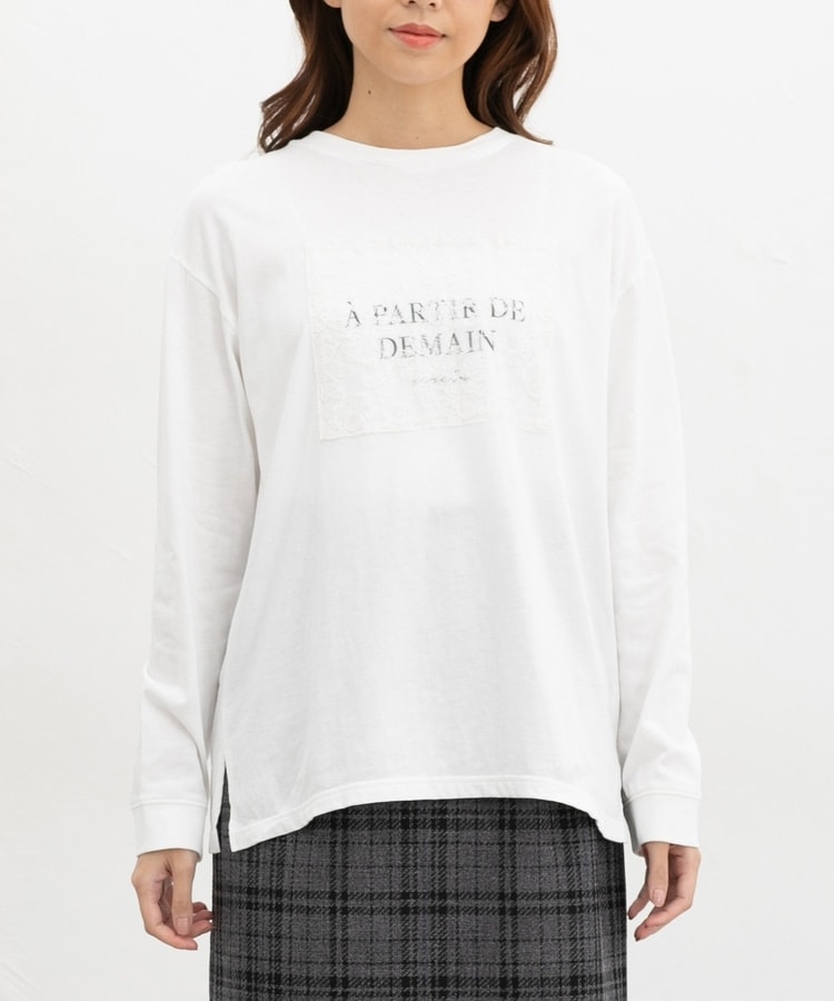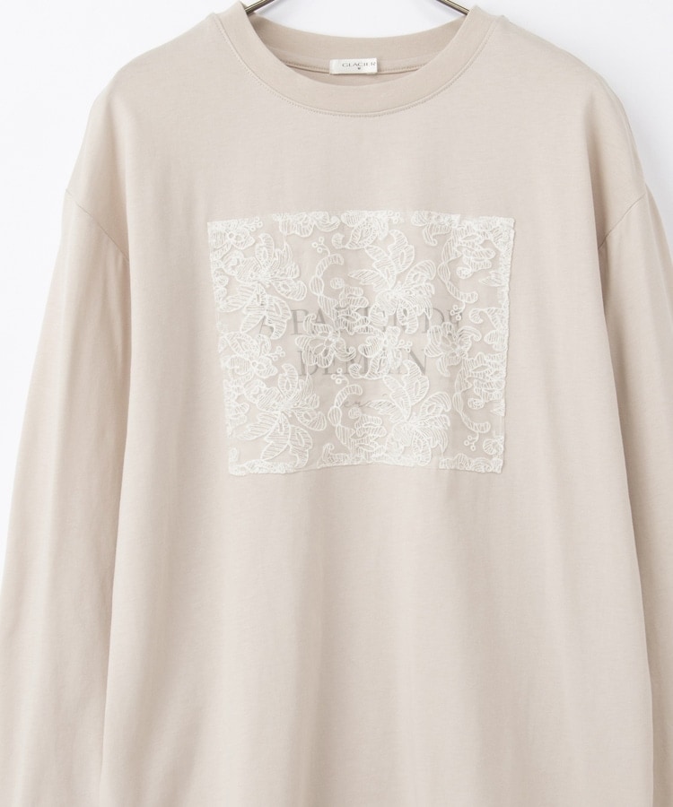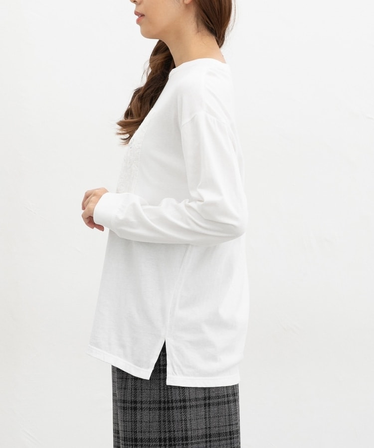 繊細な刺繍レースのアップリケ付きで、シンプルになりがちなロンTをスタイリッシュに格上げしてくれるデザイン。