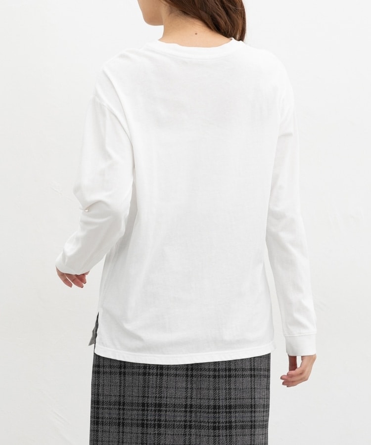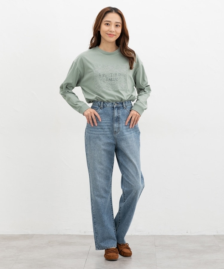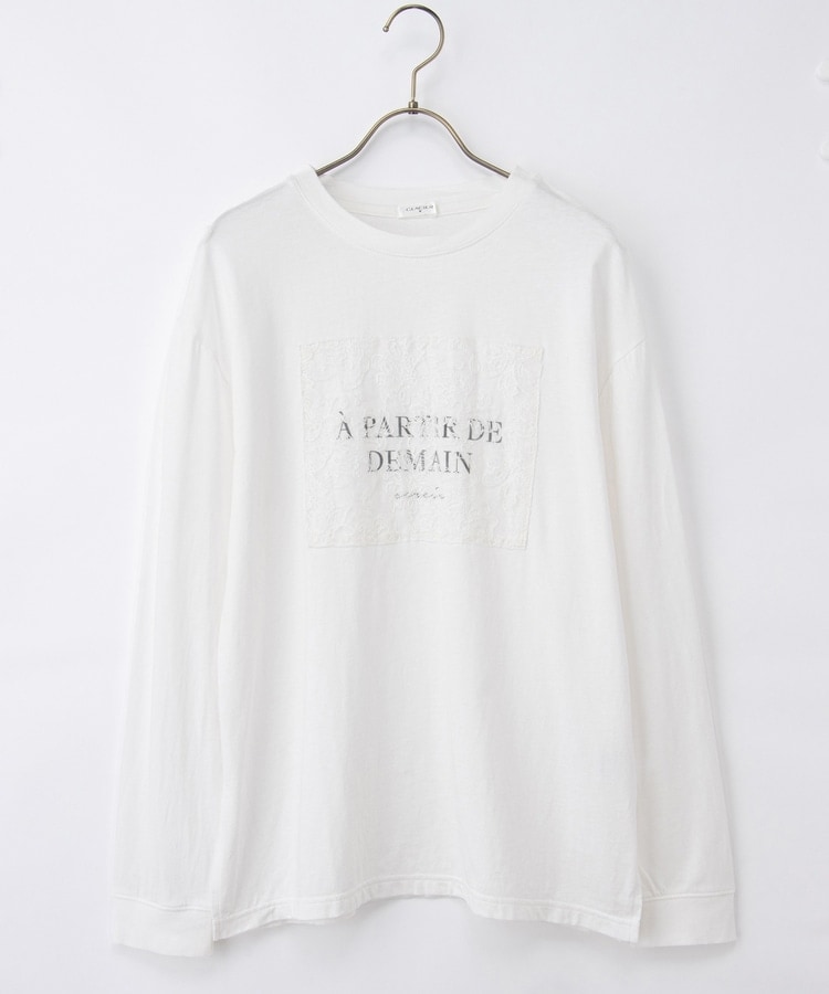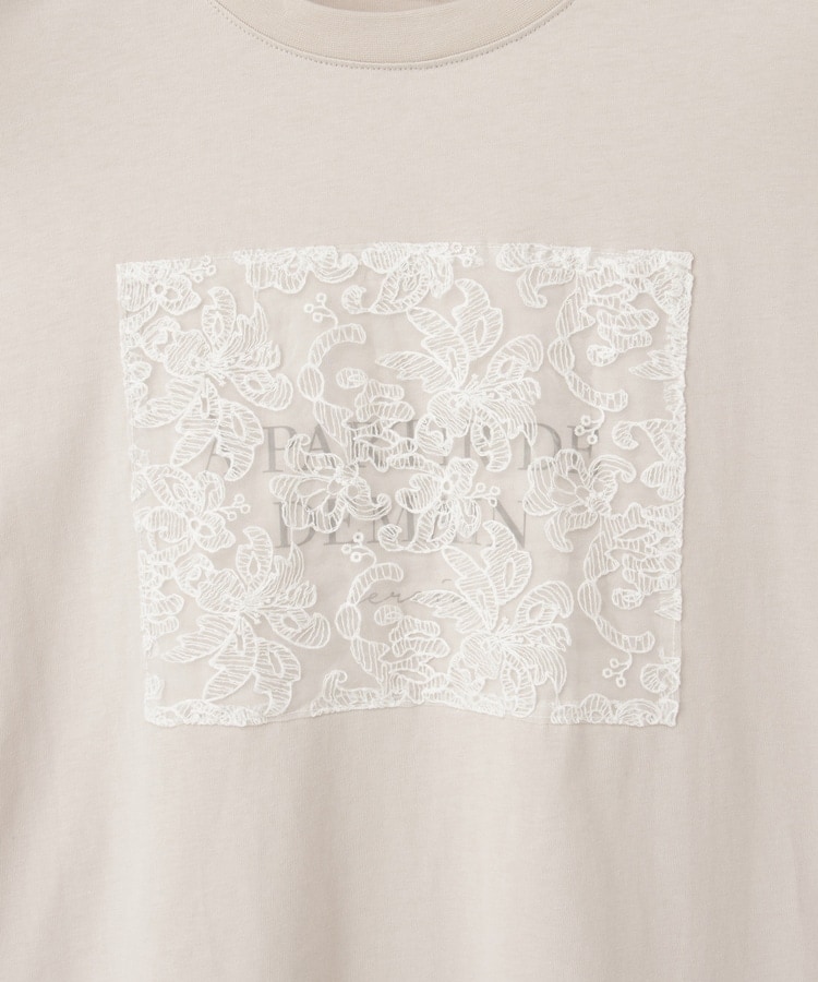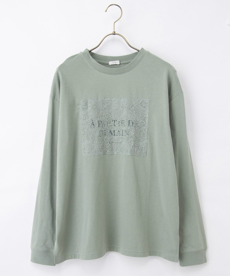 繊細な刺繍レースのアップリケ付きで、シンプルになりがちなロンTをスタイリッシュに格上げしてくれるデザイン。