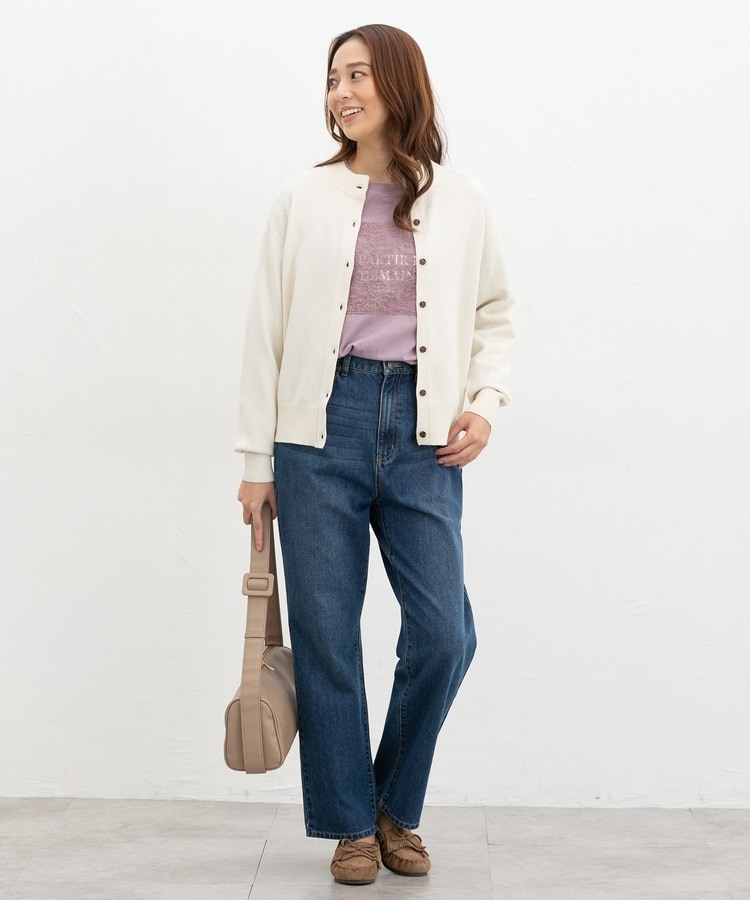 定番デニム合わせのカジュアルはもちろん、テーパードなどきれいめパンツと合わせた大人なスタイルや、ロングスカートやキャミワンピなどと合わせたフェミニンスタイルも◎