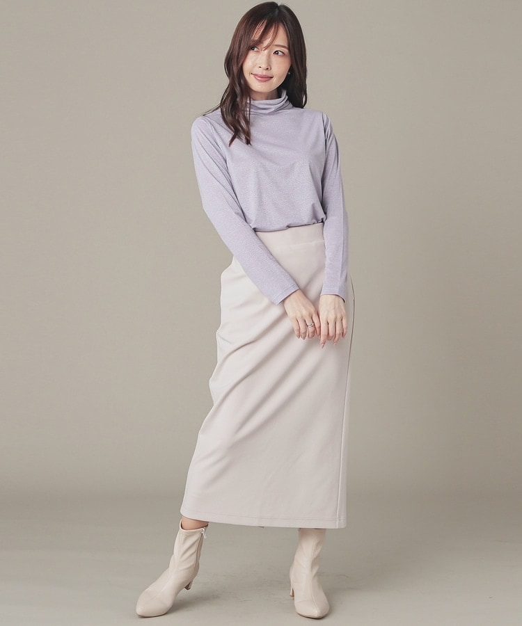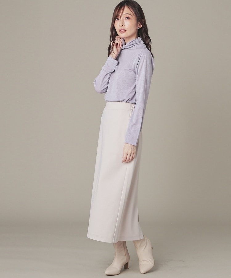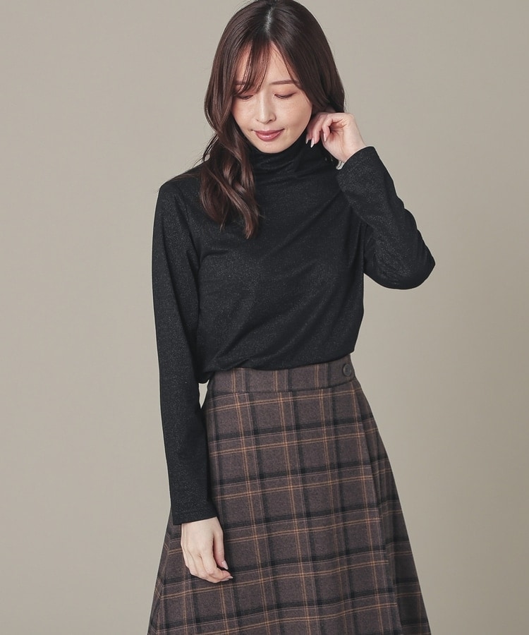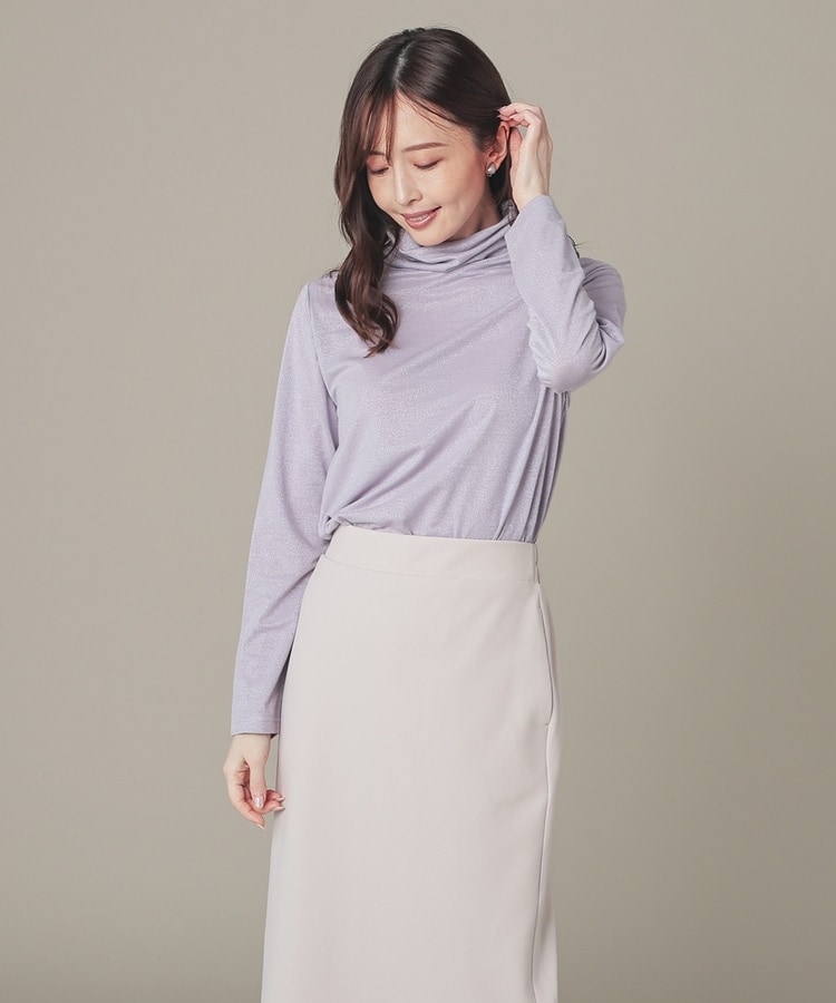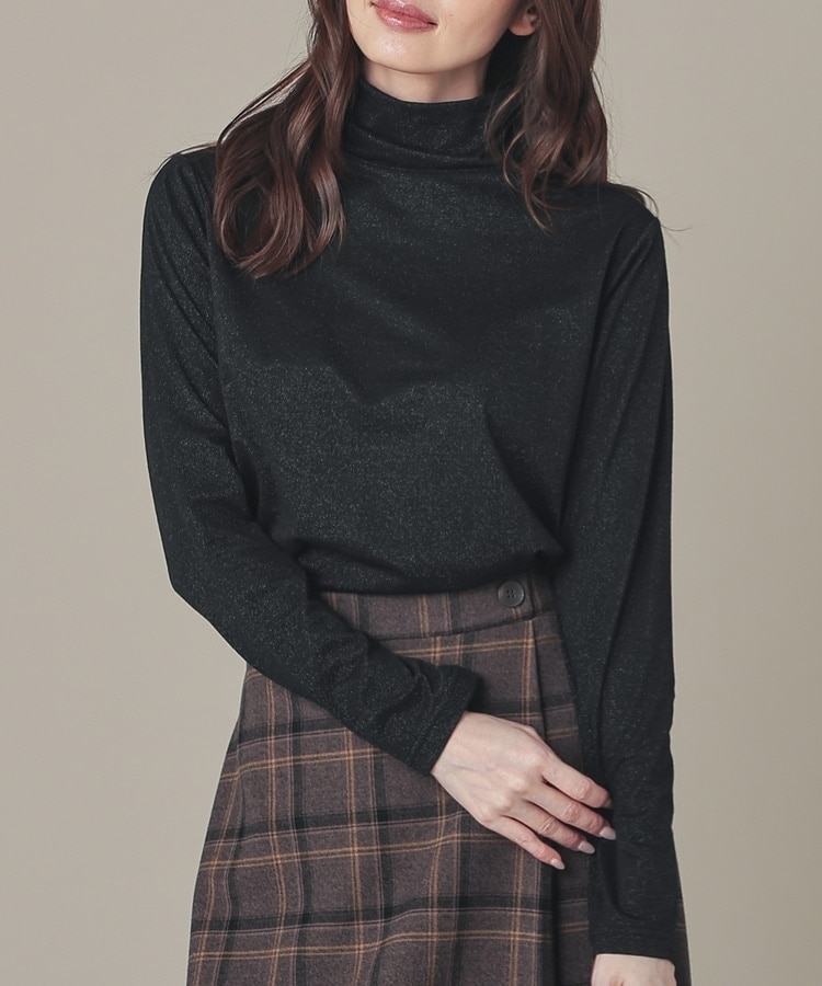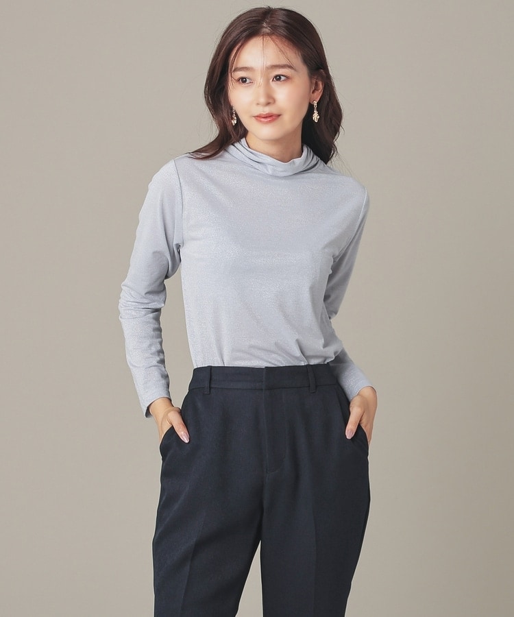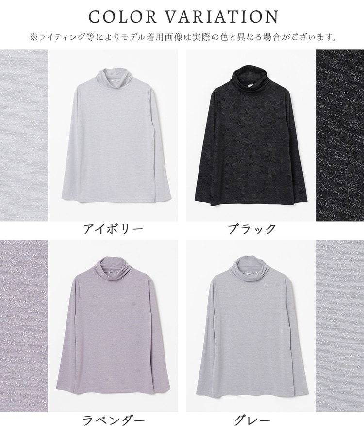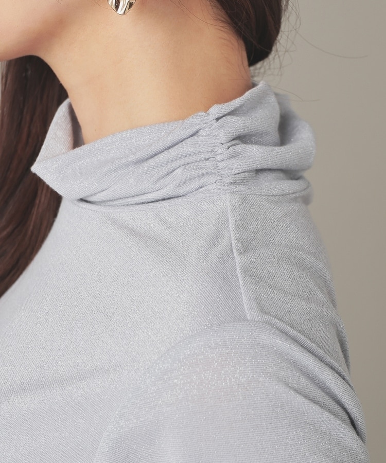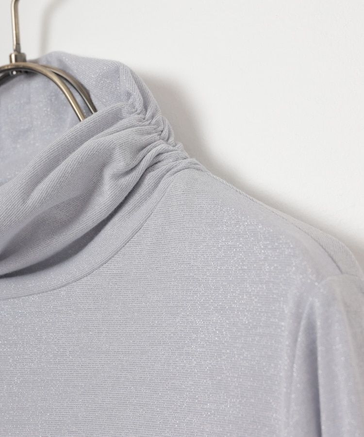シンプルデザインにトレンドライクなラメとネックのシャーリングでアクセントをプラス。