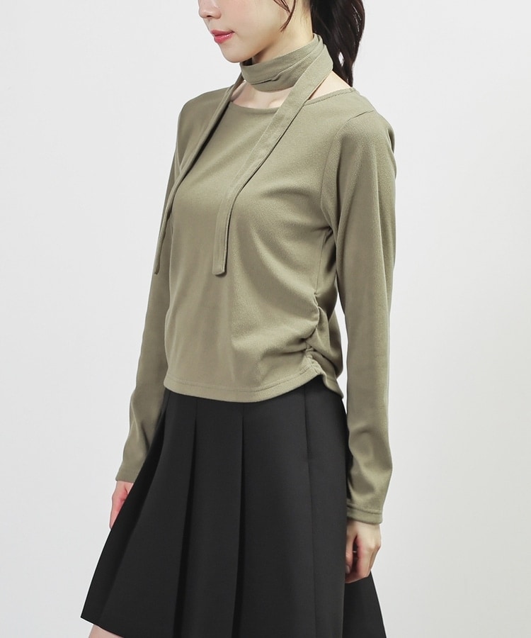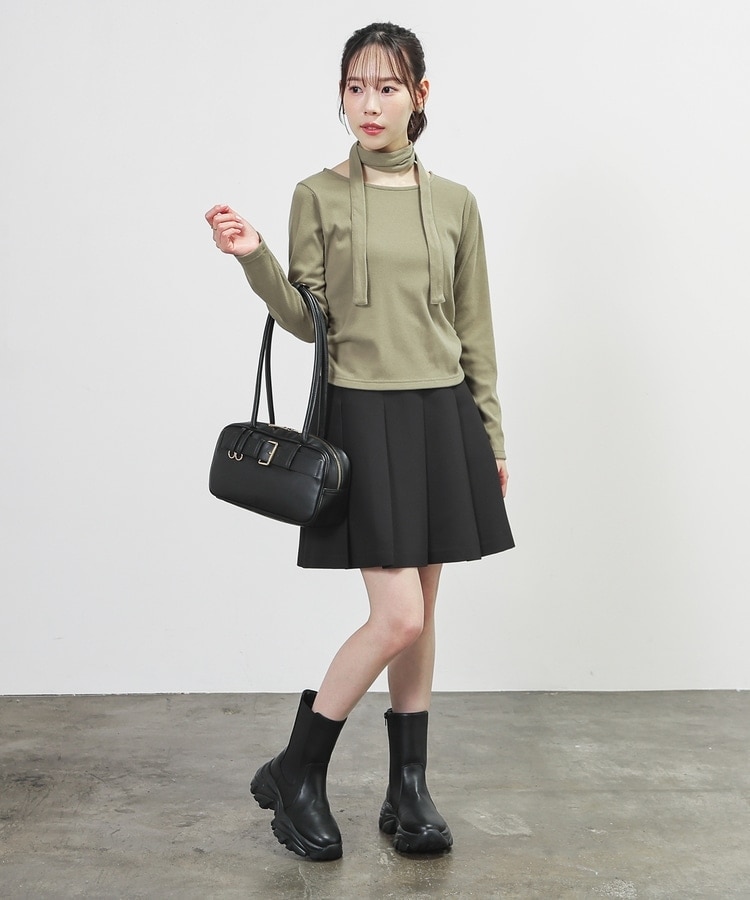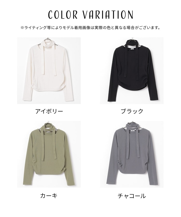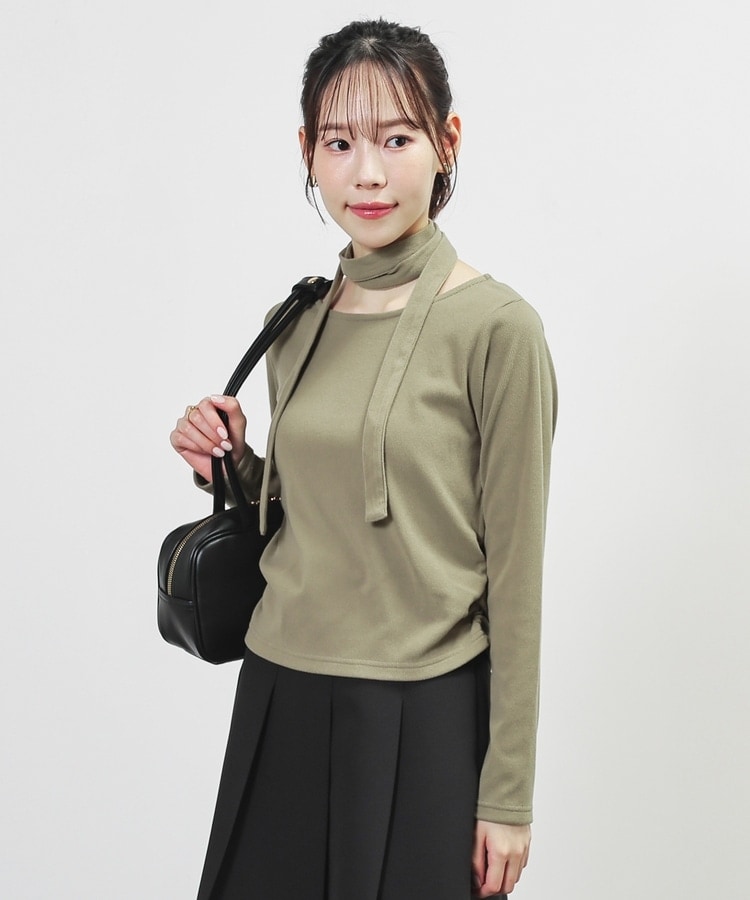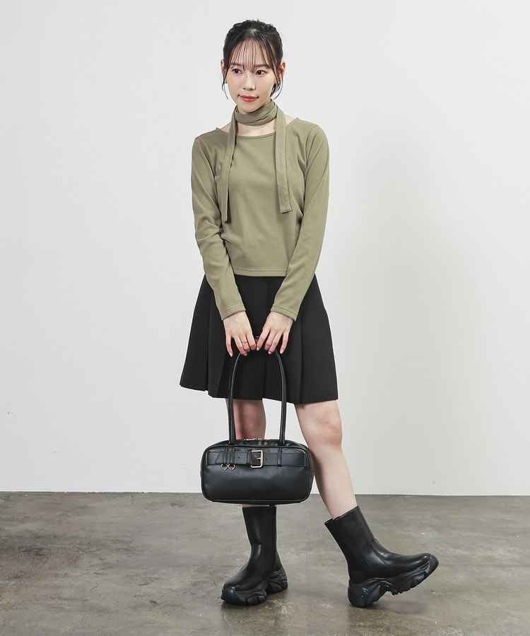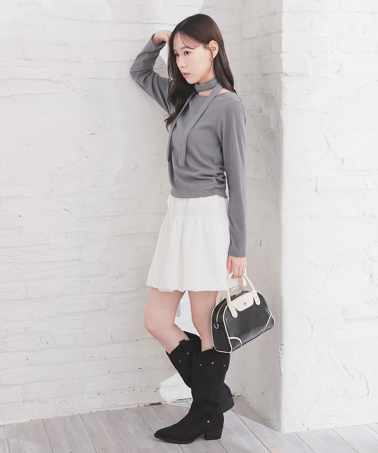 チョーカーなしでも、チョーカーをほかのトップスに合わせても使え、ミニスカート合わせの韓国アイドル風や、ロングパンツ合わせのスタイリッシュな着こなしなど、幅広く活躍。