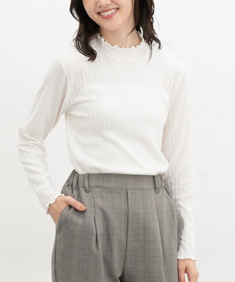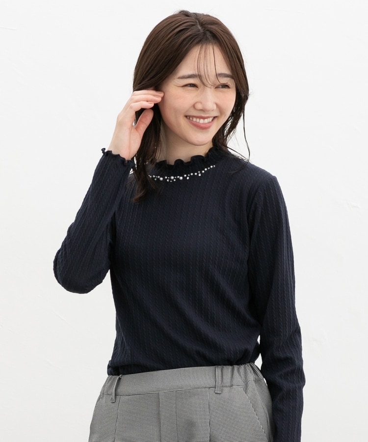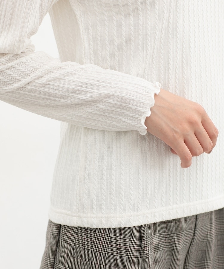 主張しすぎない細かめのケーブル柄で上品な印象に。