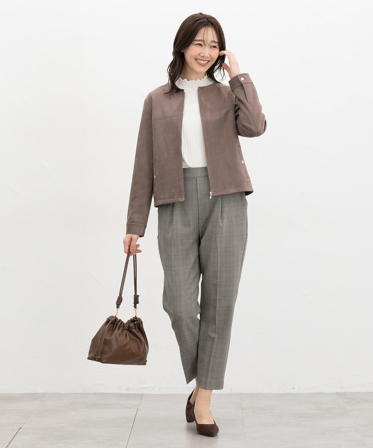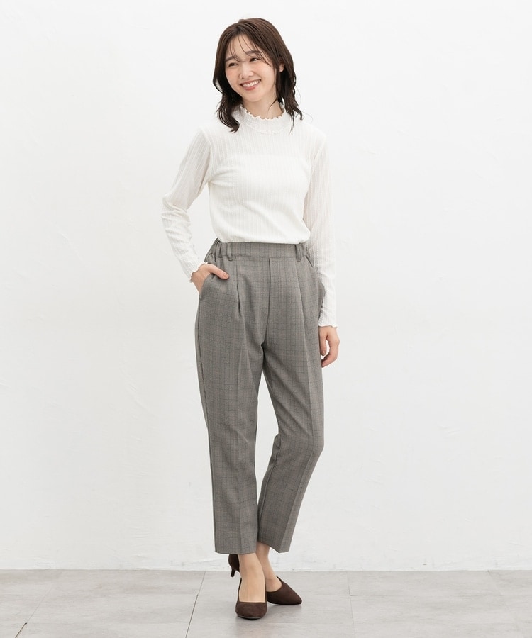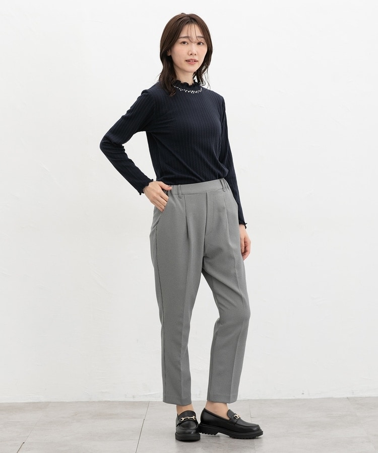 ジャケットにも合うサイズ感で、フレアスカートやテーパードパンツなどと合わせたきれいめスタイルに大活躍。