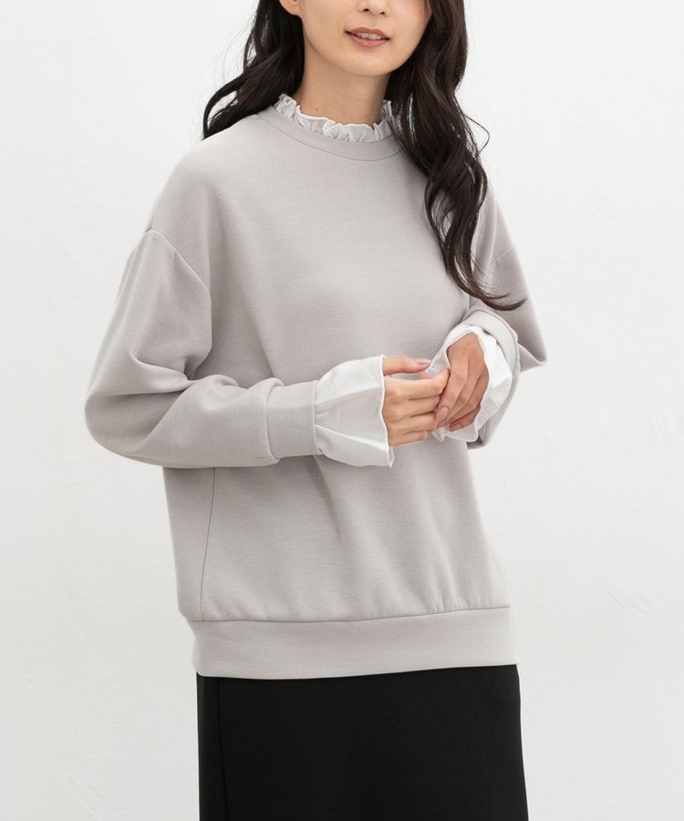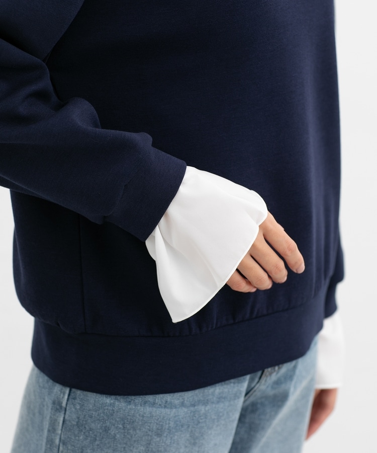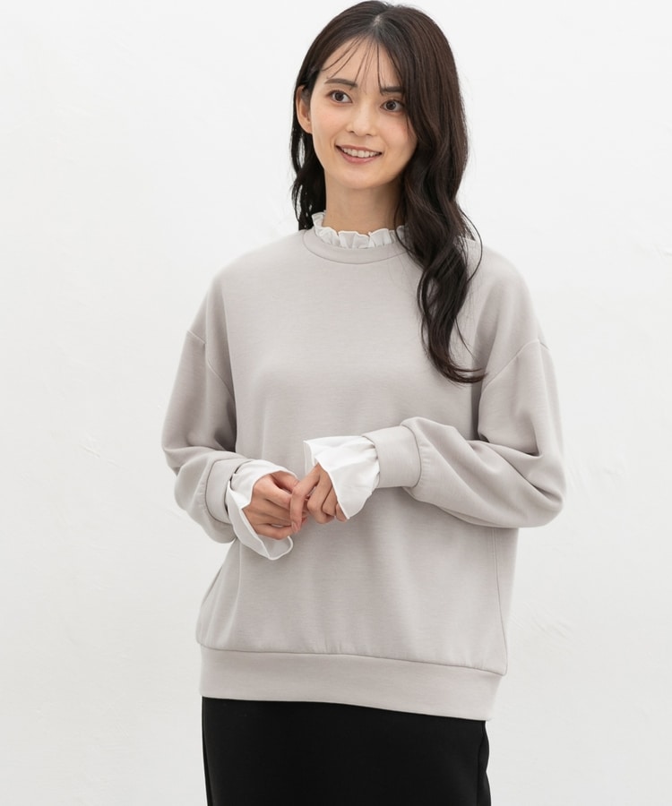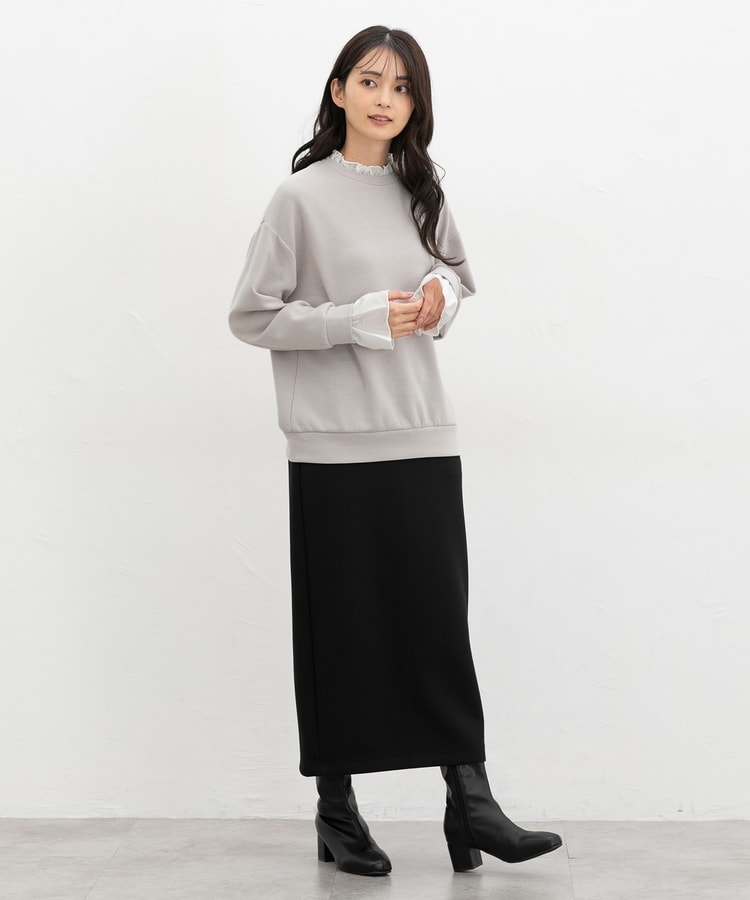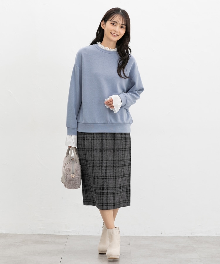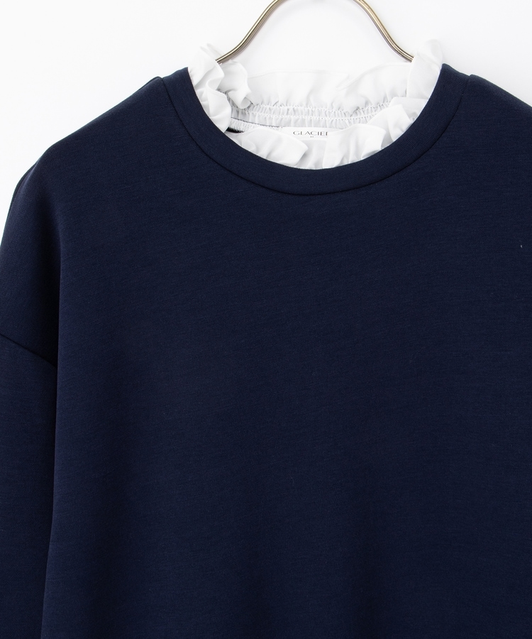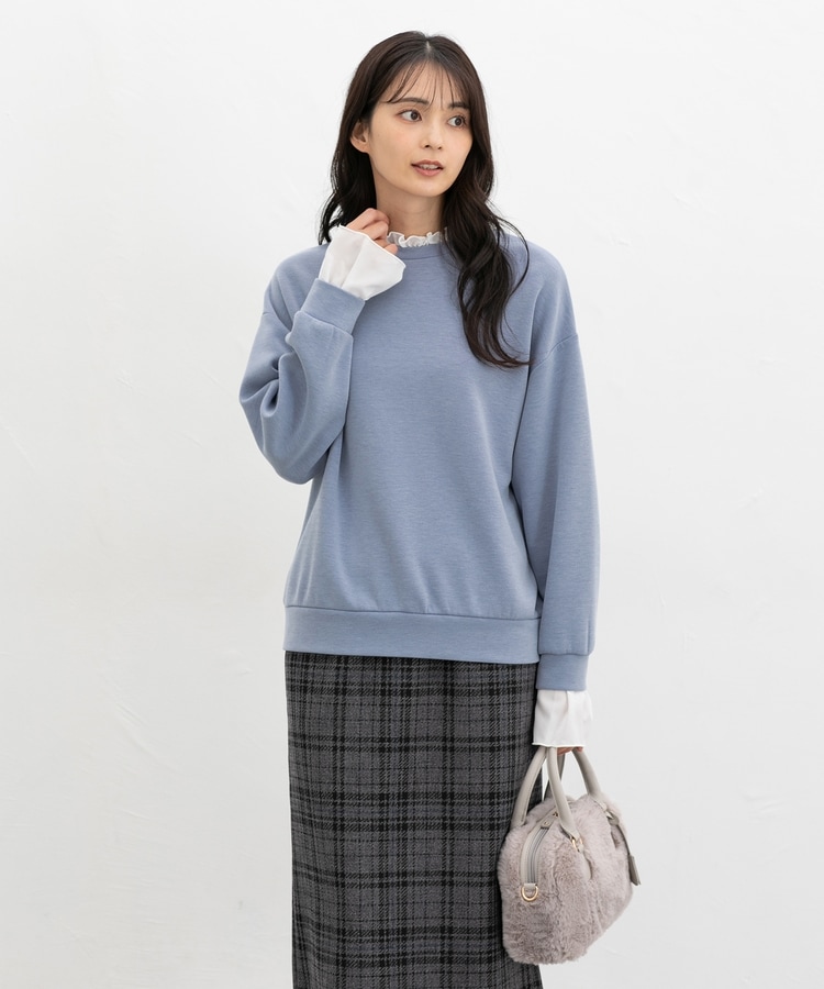 ブラウスをインに着ているような、1枚でコーデが決まるレイヤード風デザイン。