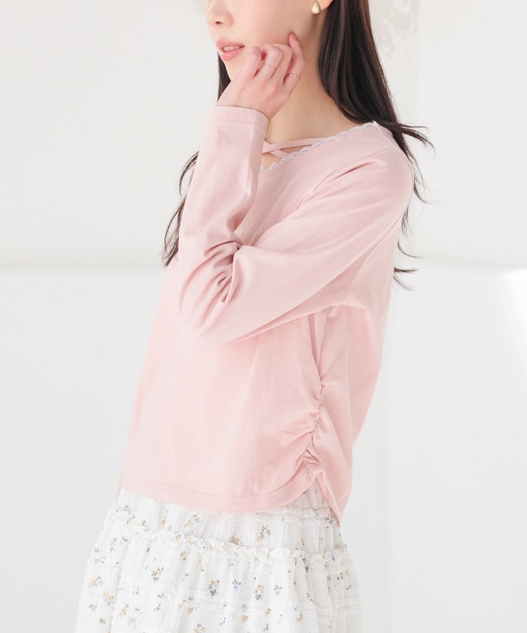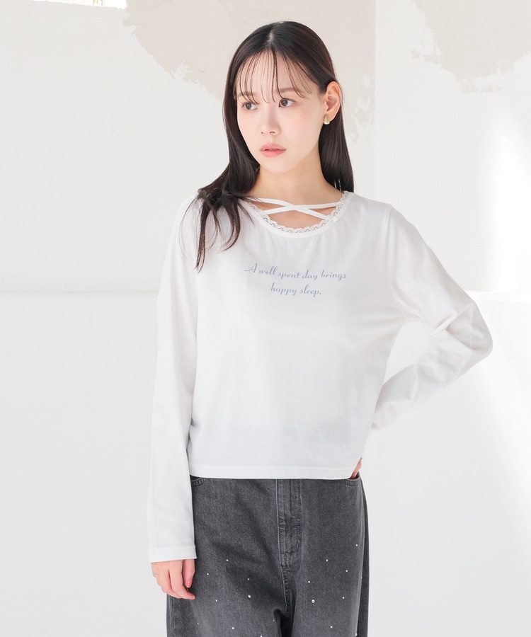 顔周りがすっきり華奢見えする胸元クロスデザイン。