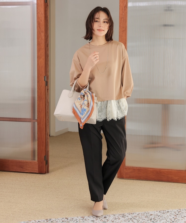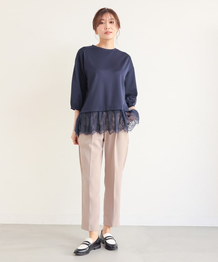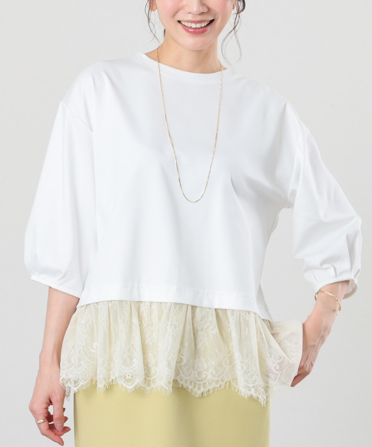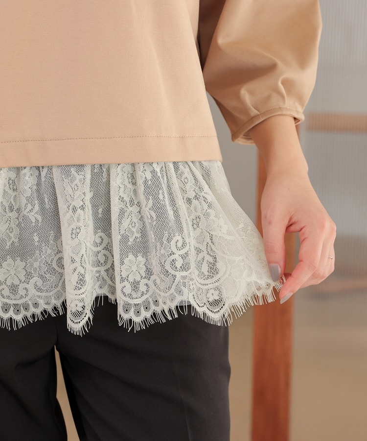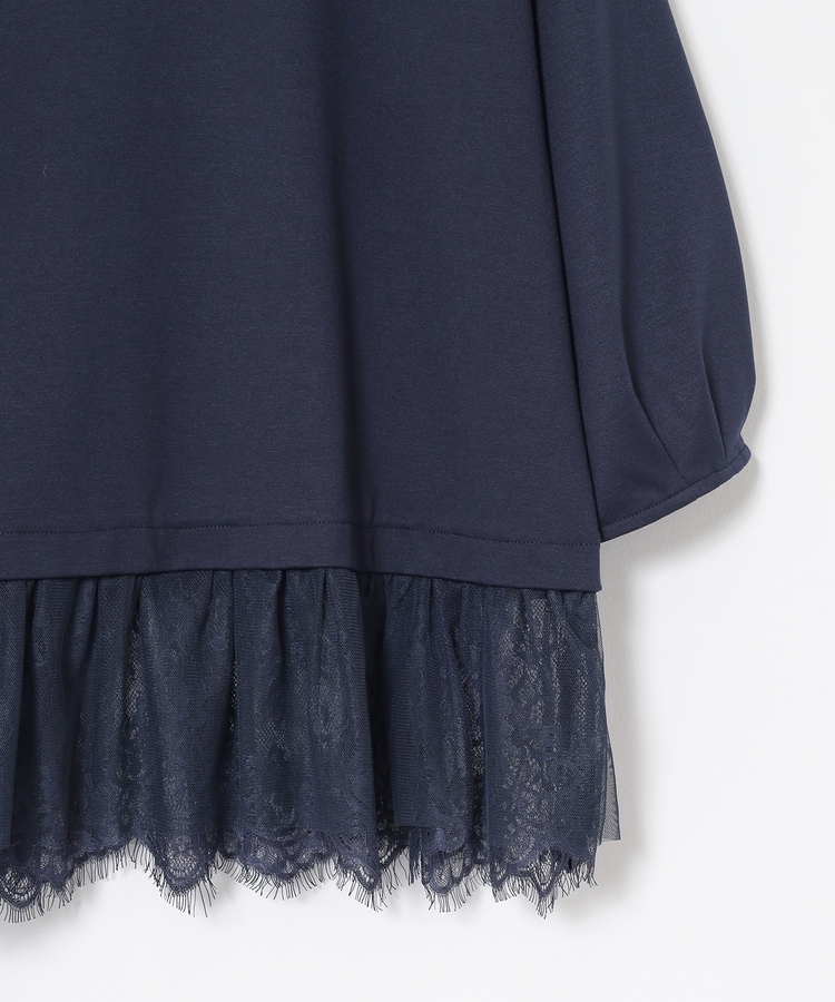裾から覗くレースがフェミニンで華やかなレイヤード風デザイン。